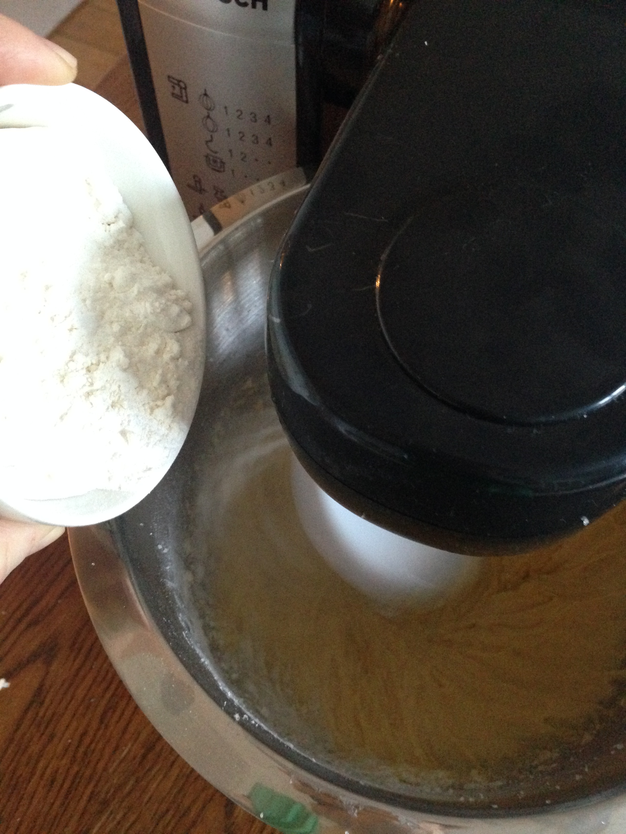 4. Mix flour and baking powder.