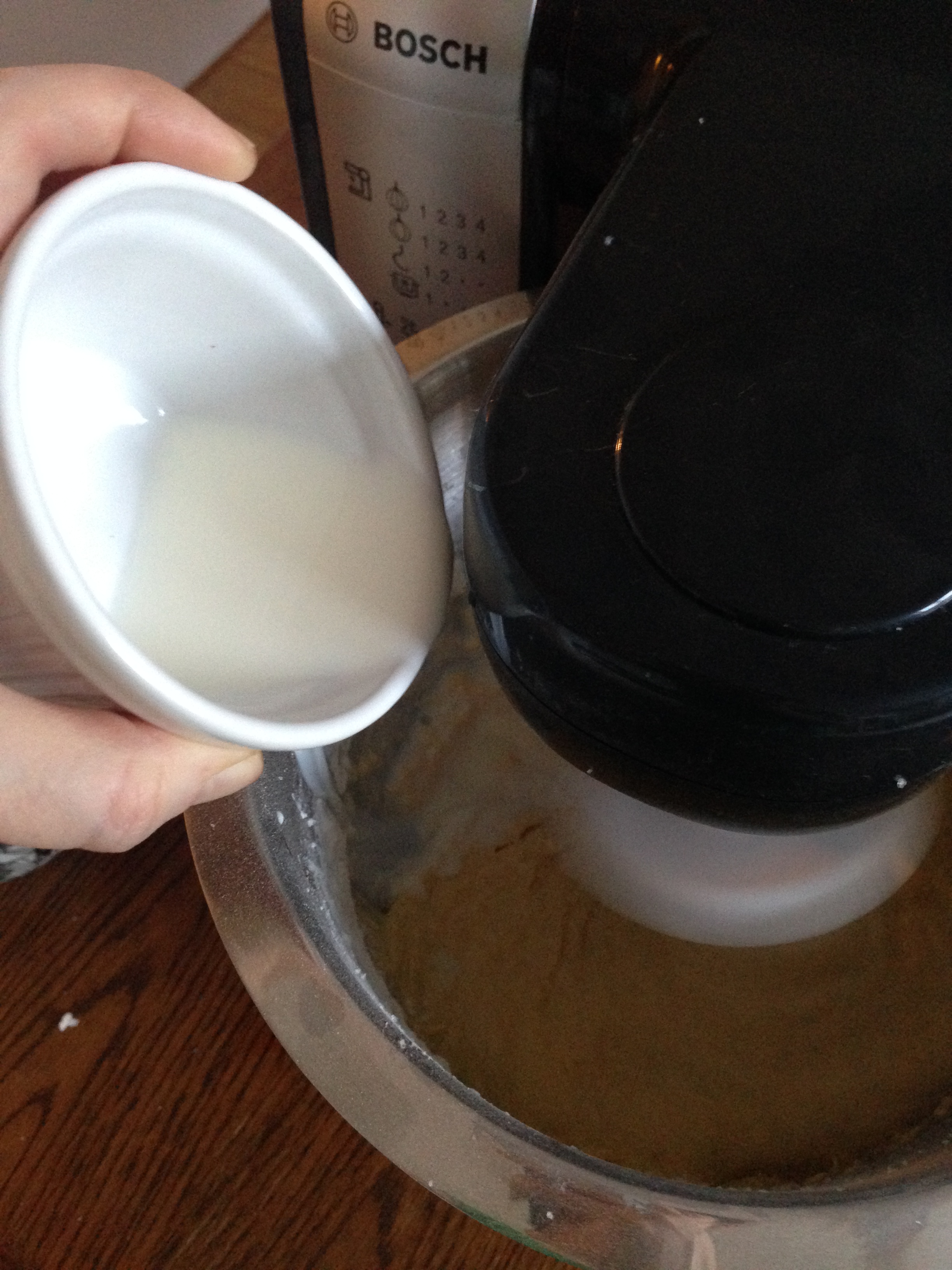 5. Add flour mixture and milk – while continuing beating, start with adding half of flour, then milk and then the rest of flour. Beat only until all is well mixed, do not over mix.