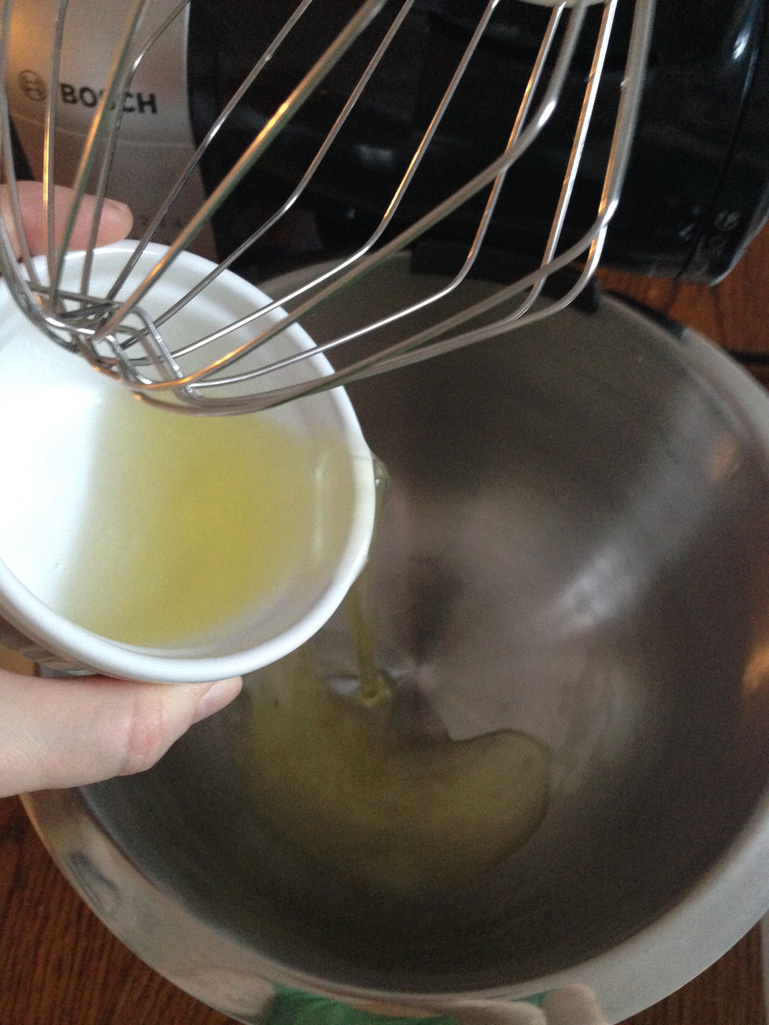2. Add egg yolks, one by one, fully incorporating in between.