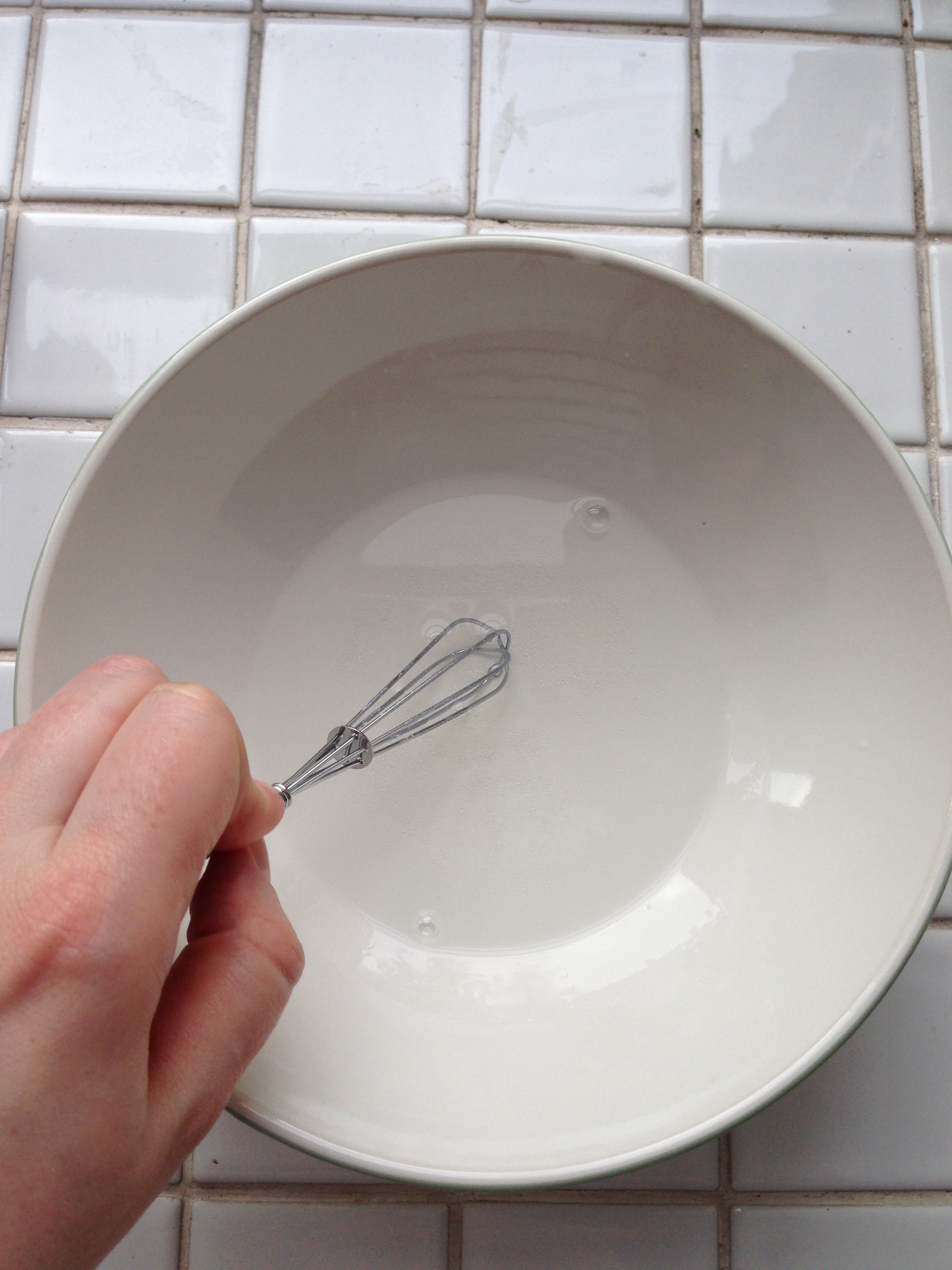 1. In a small bowl, put 1 tsp / 5 ml sugar and 1/2 cup / 1.2 dl warm water. Whisk until sugar is dissolved.