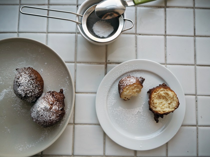 A few months ago, I was in the Netherlands for the first time in my life. Many friends have already been to the Netherlands and especially to Amsterdam, but I was late as usual. Anyway, I went to Eindhoven to stay with my dearest friend Caroline and her mother for four days and then went to Amsterdam for another two days. I cannot praise enough the magnificent Dutch bread and the simple sandwiches turned to a festivity thanks to the bread. Yet, this donut, named “Oliebollen” beat everything else because of the memories it brought back..