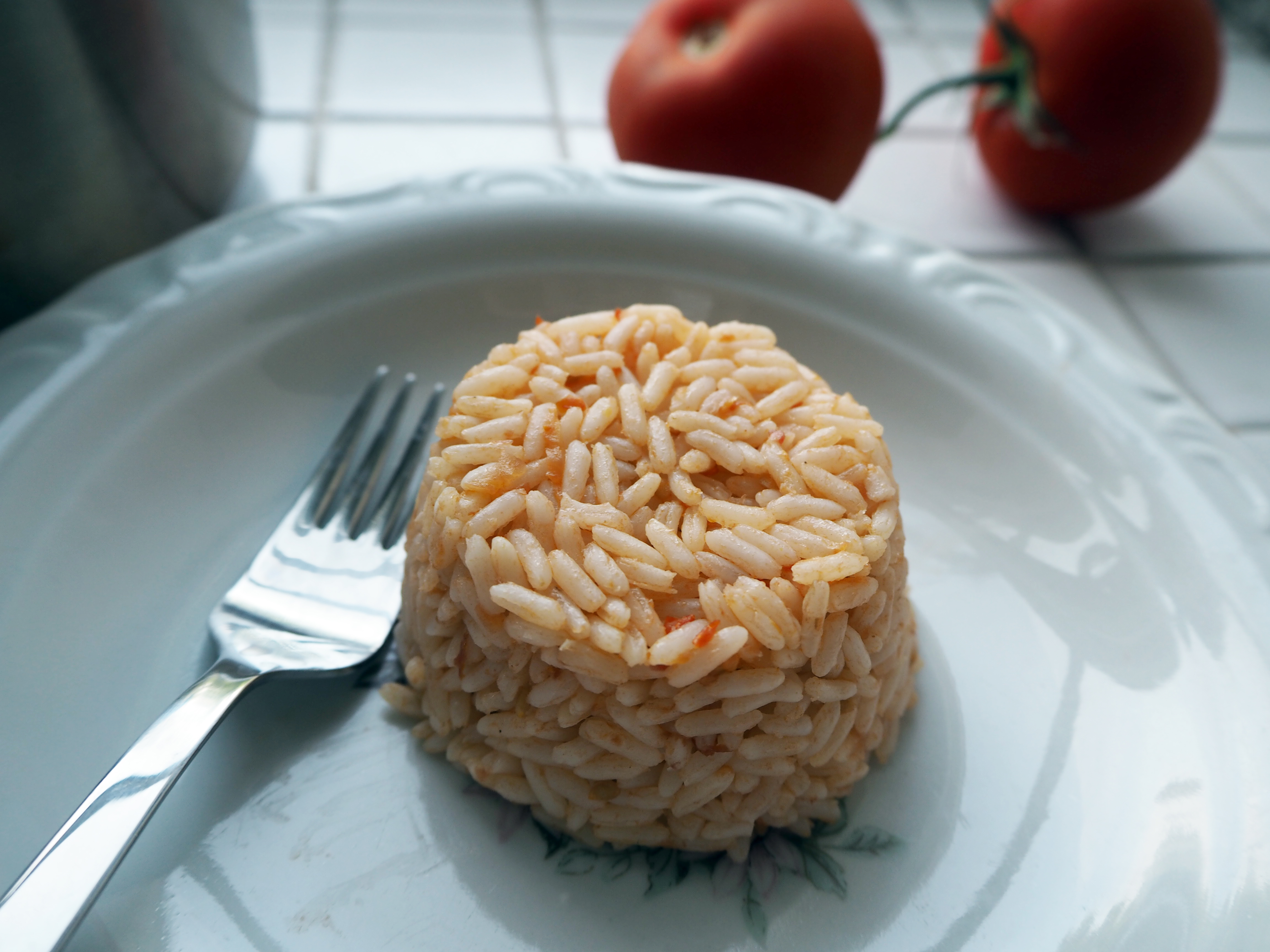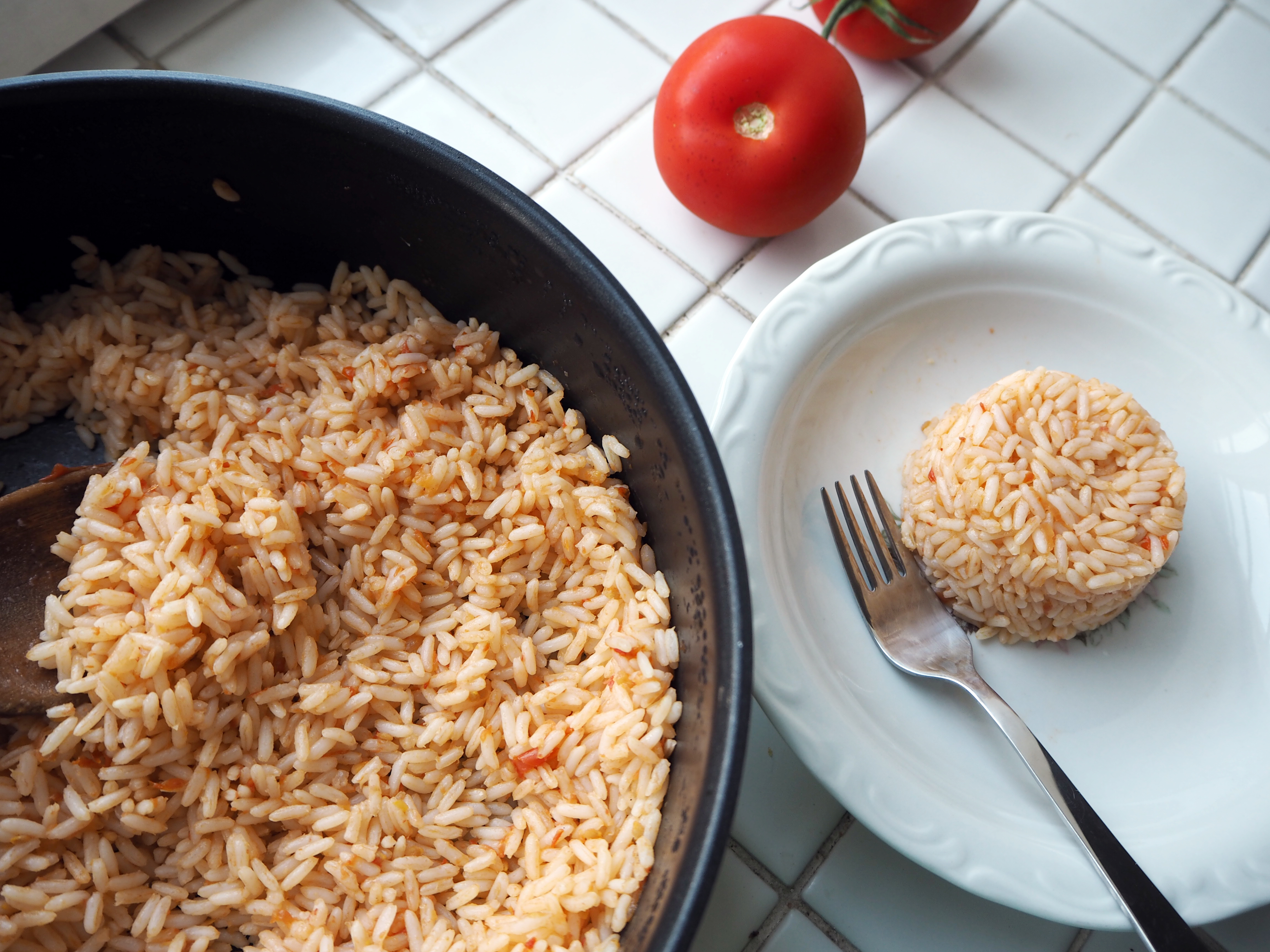 5. Put the lid on, decrease the heat to lowest and let the rice cook, until all water is absorbed by rice. It really depends on the rice so I won’t give you any exact time for that. Keep checking frequently. Once the water is absorbed, check that is cooked (take a mini fork of it). If it is not cooked yet, but there is no water left, then you can add up to half a cup / 1.2 dl hot water. I do this gradually if I need to. Once you are sure that rice is cooked, take it out of the heat, leave it covered with lid, for about 30 minutes, before you serve. Rice with tomato can be a side dish or a main dish in Turkish cuisine. Afiyet olsun! (meaning Bon Appetite in Turkish)