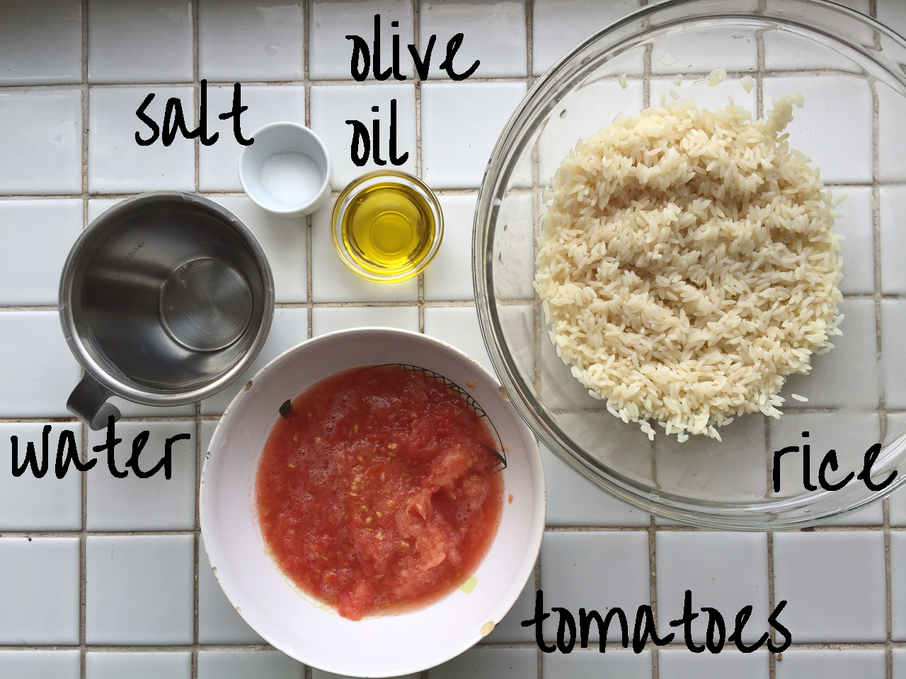 Anyway, here is one version of traditional way of cooking rice in Turkey: with tomatoes. I grated 3 tomatoes for 1 cup of rice, but since tomatoes are generally like plastics here, even 3 tomatoes were not enough, I think I could easily add 1 more. The thing is, the more tomatoes you add, the better it tastes, therefore you can be truly generous. Another thing: I used olive oil as I always do, but if you want to have an even richer taste, you can use butter or a combination of both. As for the type of rice, I use long rice but go for one you like most.