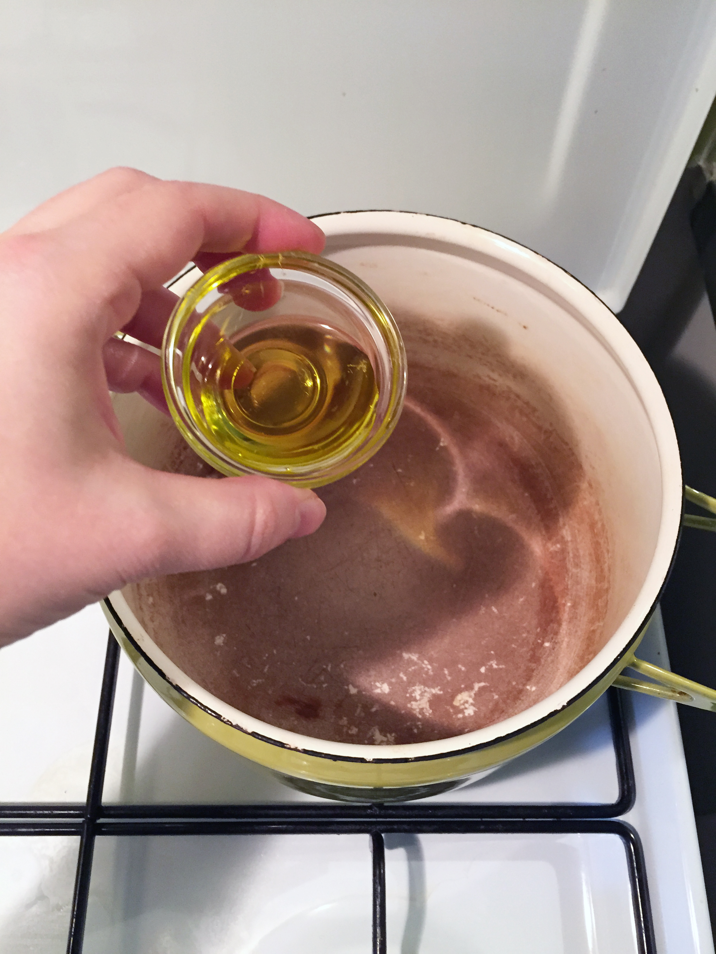 4. In a pan for the soup, heat 2 tsp / 10 ml. olive oil for a few minutes on medium heat, then add chopped onion and sauté the onion until it gets translucent.