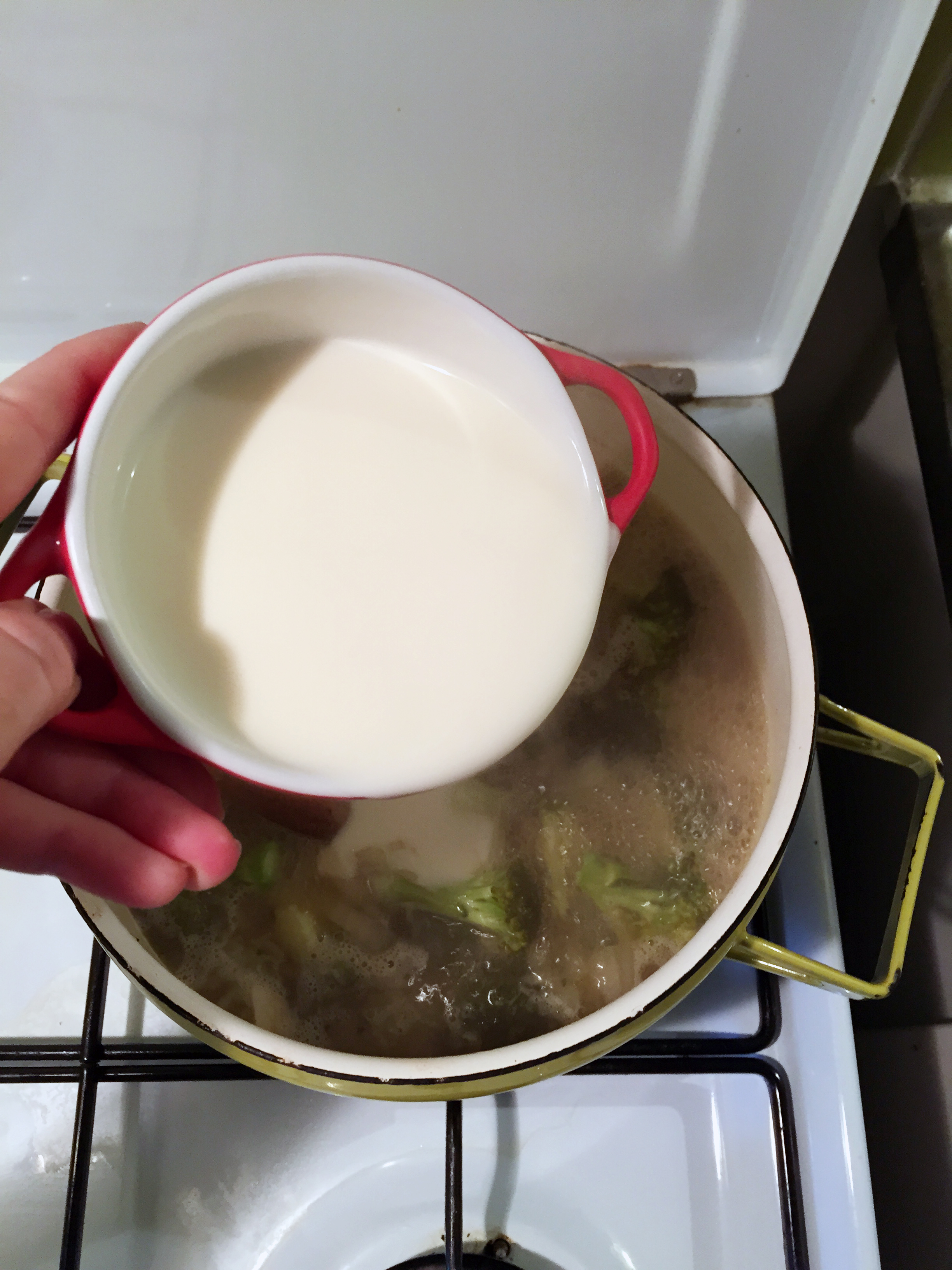 8. Transfer soup into a blender and process until it gets creamy. Transfer back to the pan and let it cool with cover on for a while, as you prepare scallops.