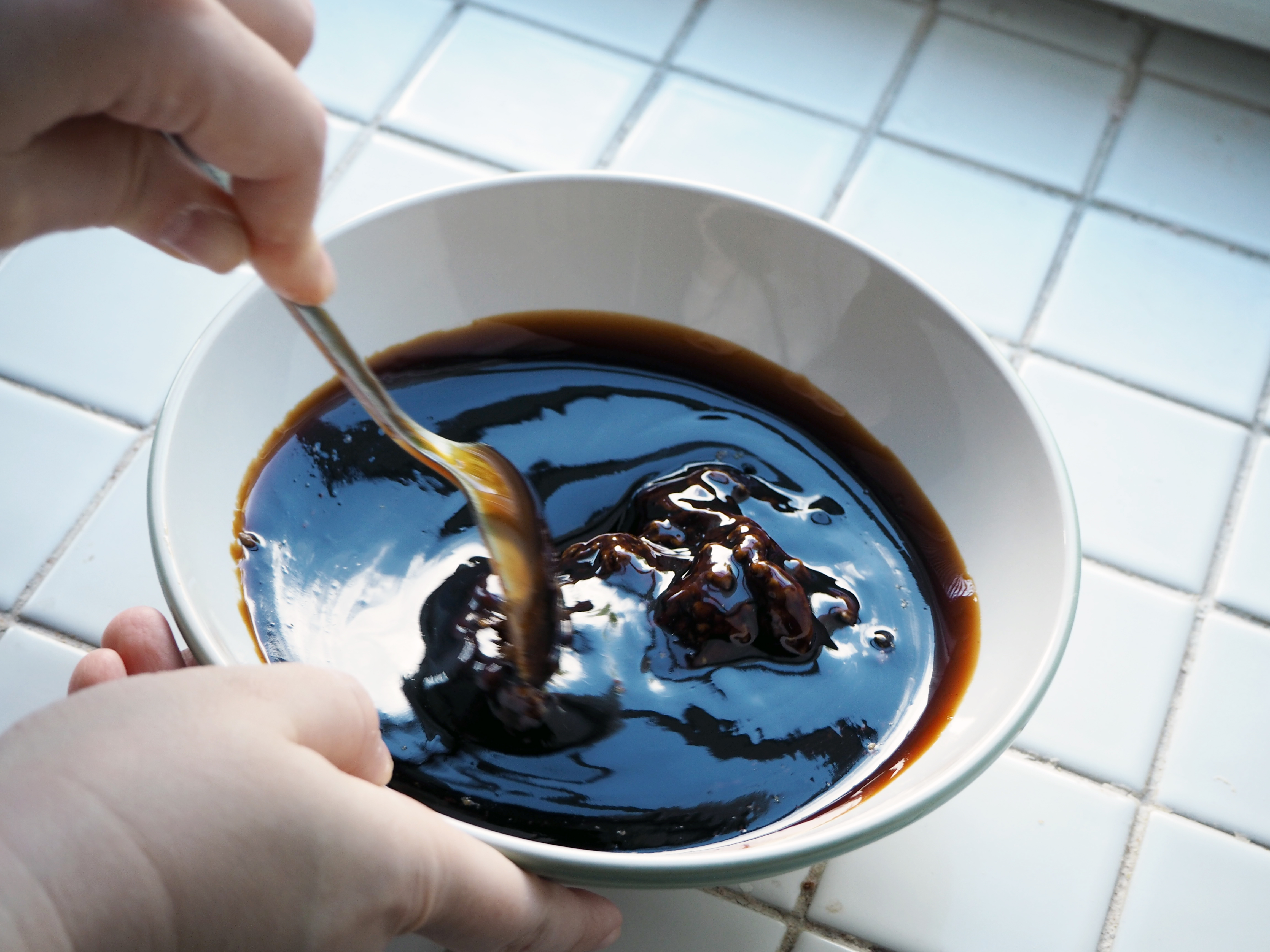 The measurements below are how we like the dessert in my family. There is no exact measurement for this dessert. By adding more molasses and thinning it up, adjust the taste and texture according to your wishes.