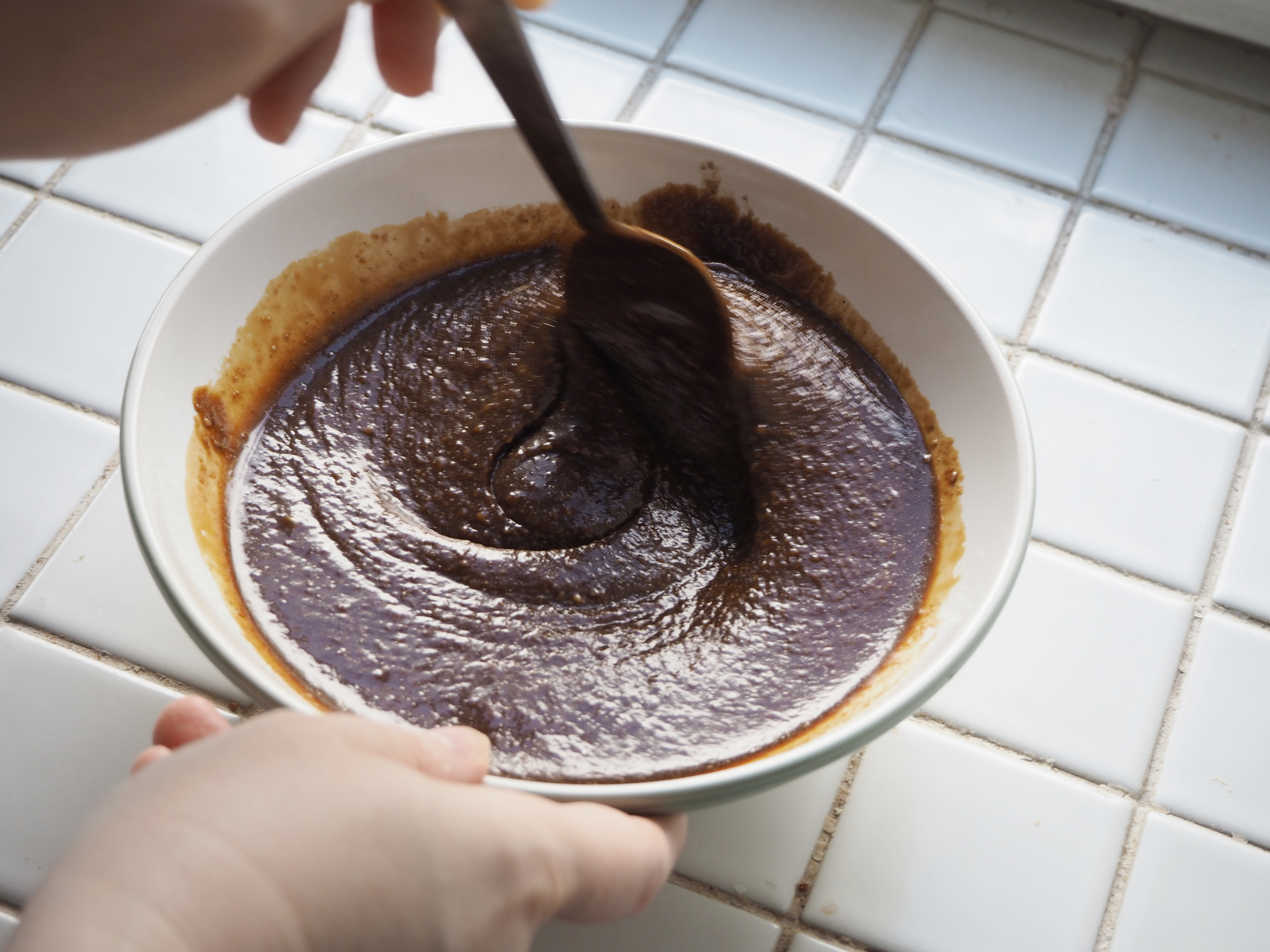 Just mix the ingredients with a spoon and that’s it! You can mix them well or you can make a swirling pattern.