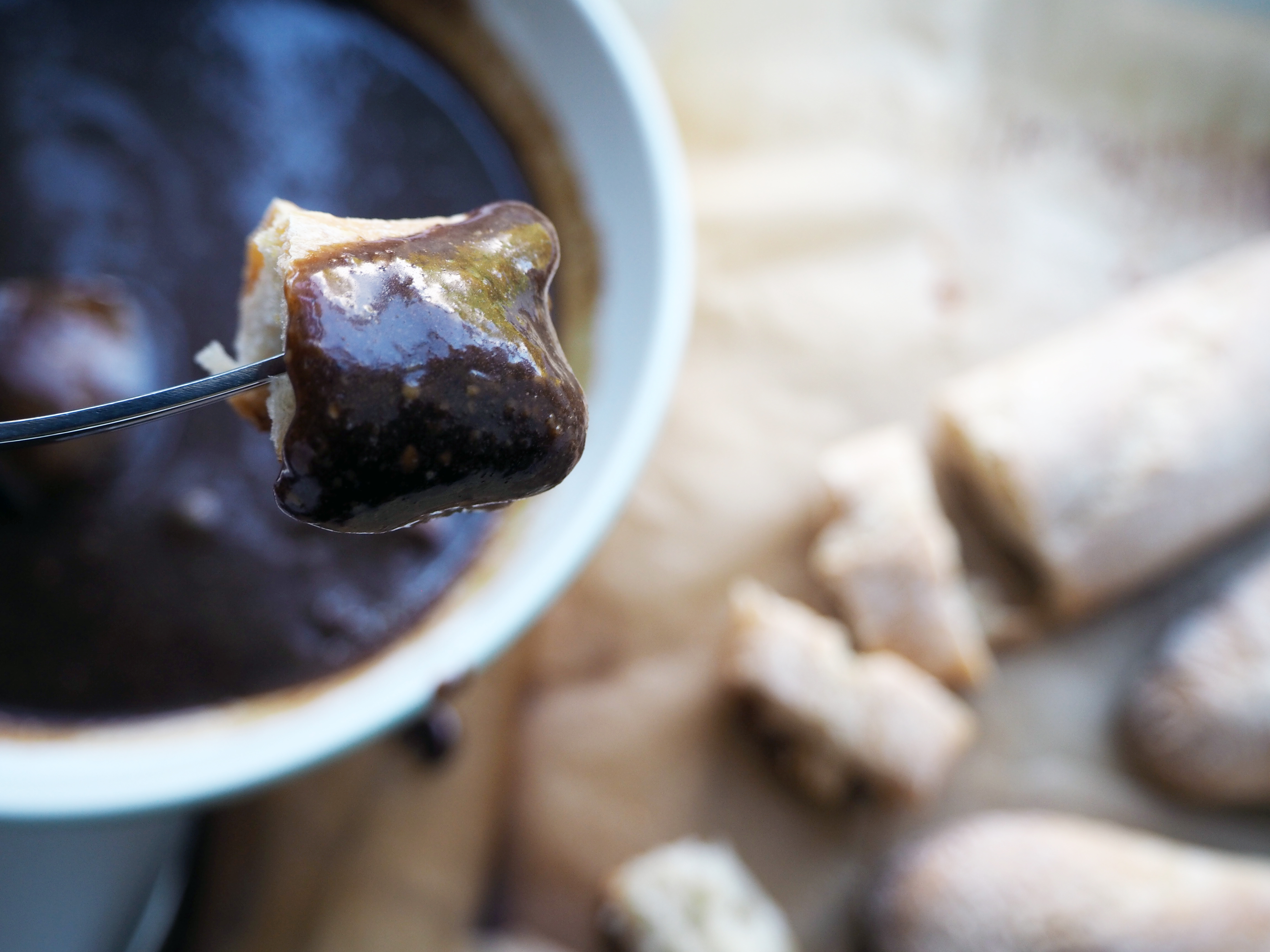For this dessert there is no cooking, no baking, there is only mixing, which takes about a few minutes and it is done. You can then eat it with just a spoon, which makes a dessert that is too heavily sweet for me; or you can eat by dipping fresh, maybe a little crunchy bread in it. I prefer the dipping method, bread tones down the sweetness. If you have a sweet tooth but not the sweetest tooth, then I recommend you eat with bread.