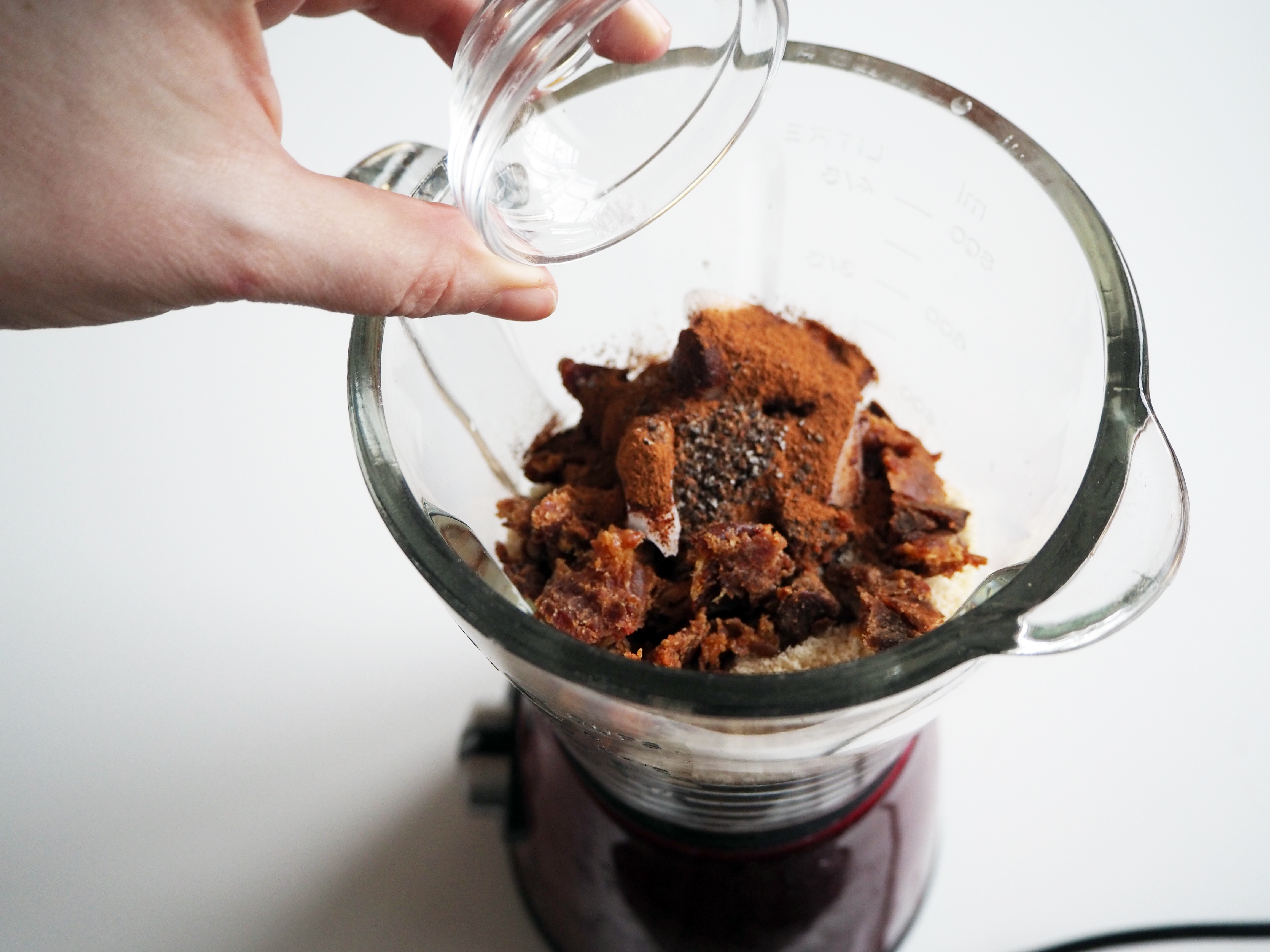1 1/2 cups / 3 dl + 4 tbsp pitted dates, roughly chopped