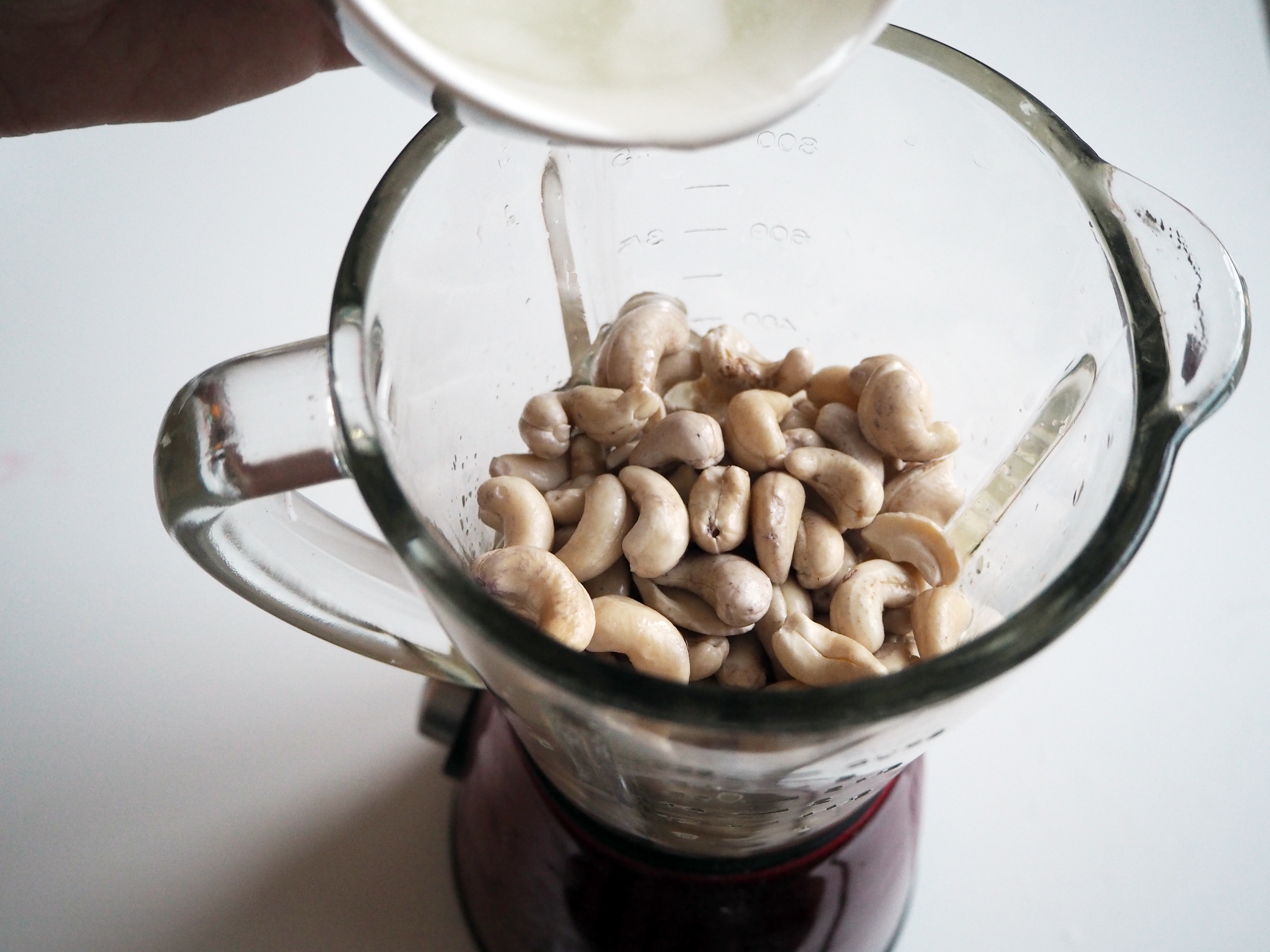 1 cup / 2 dl + 2 tbsp + 2 tsp cashew nuts, soaked in lukewarm water for at least 4 hours