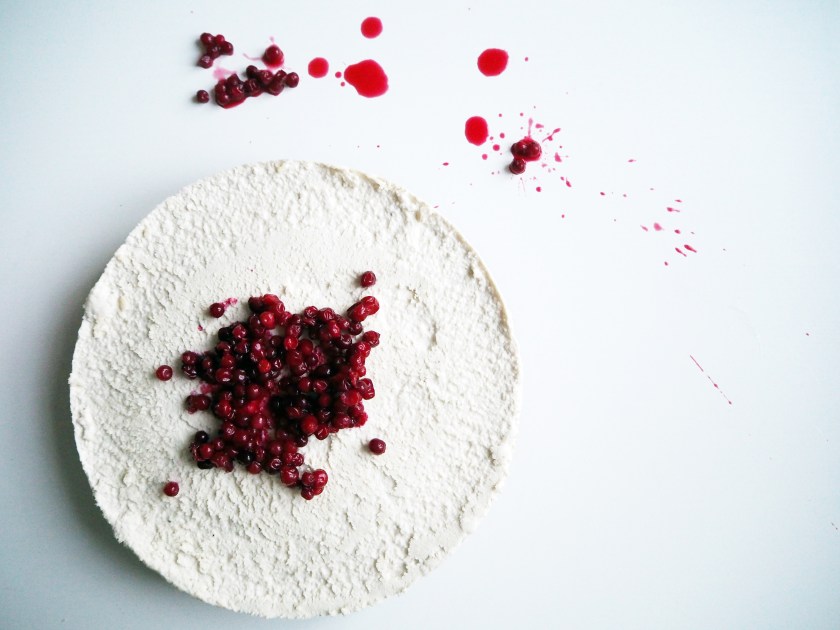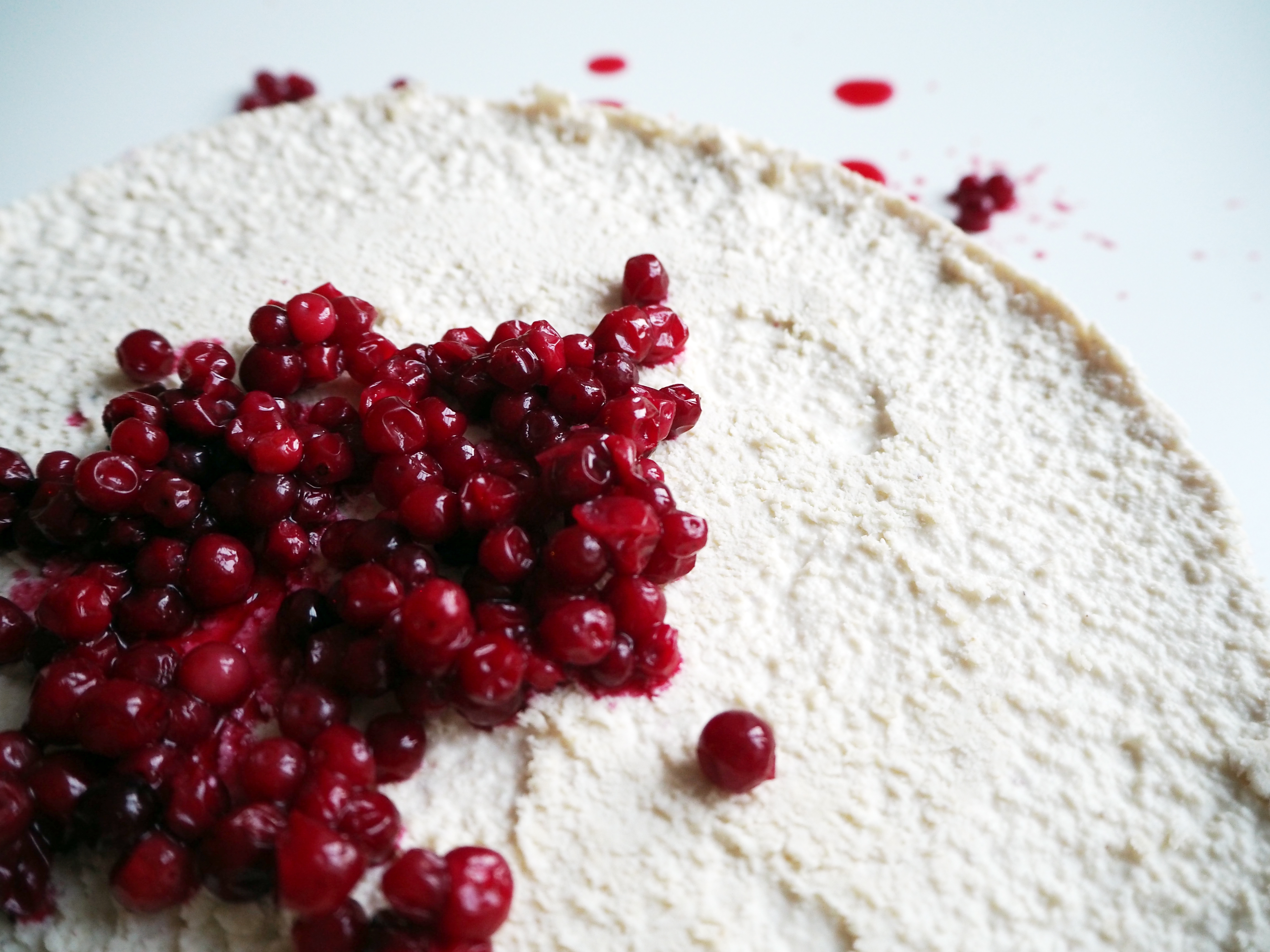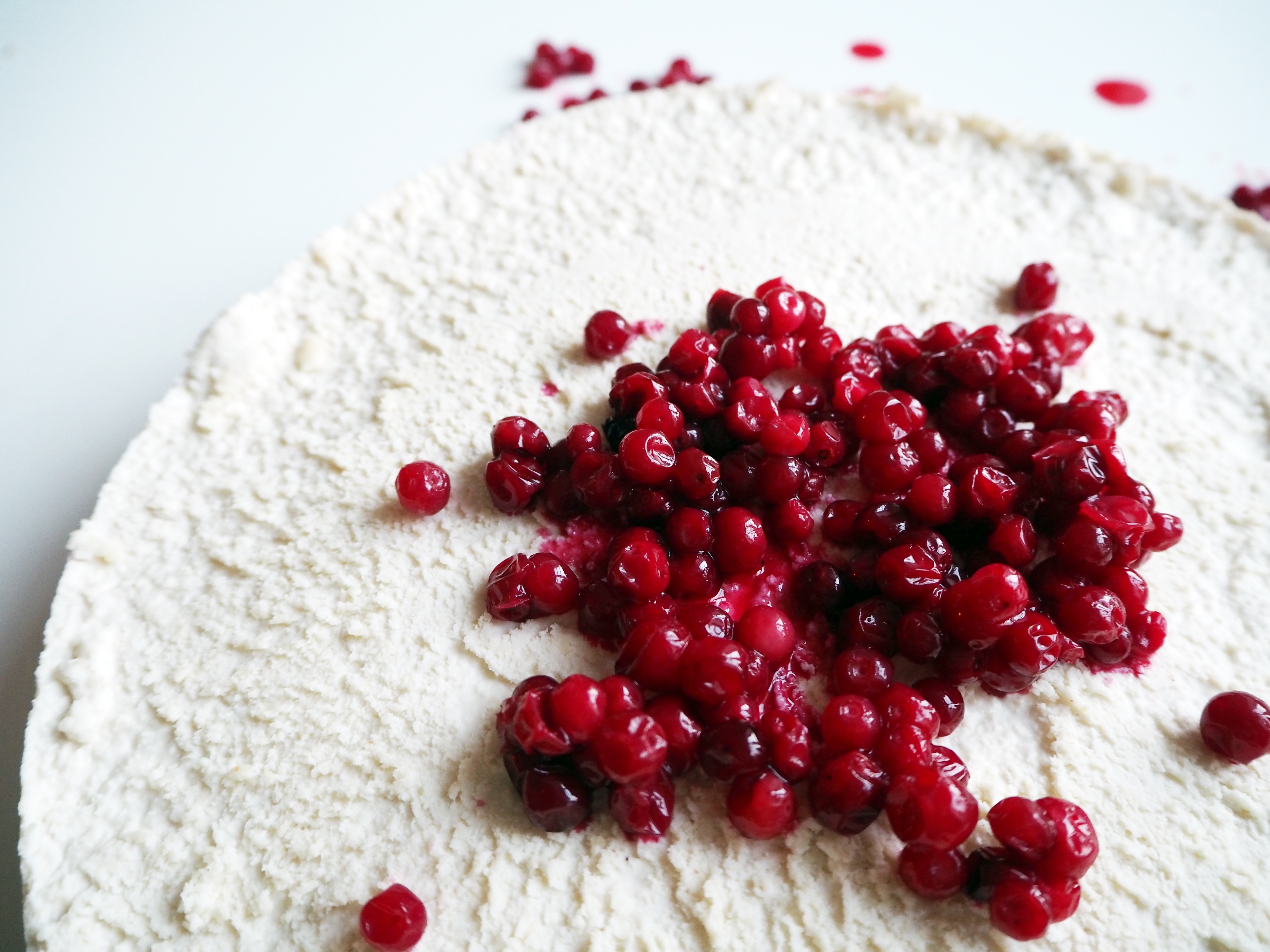 1 1/2 cups / 3 dl + 4 tbsp lingonberries (I used frozen), plus a little more later for decoration