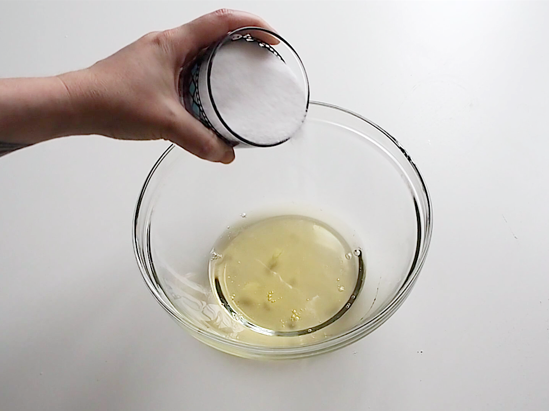 1. In a heatproof, medium size mixing bowl, put egg whites, sugar, salt and whisk a little.