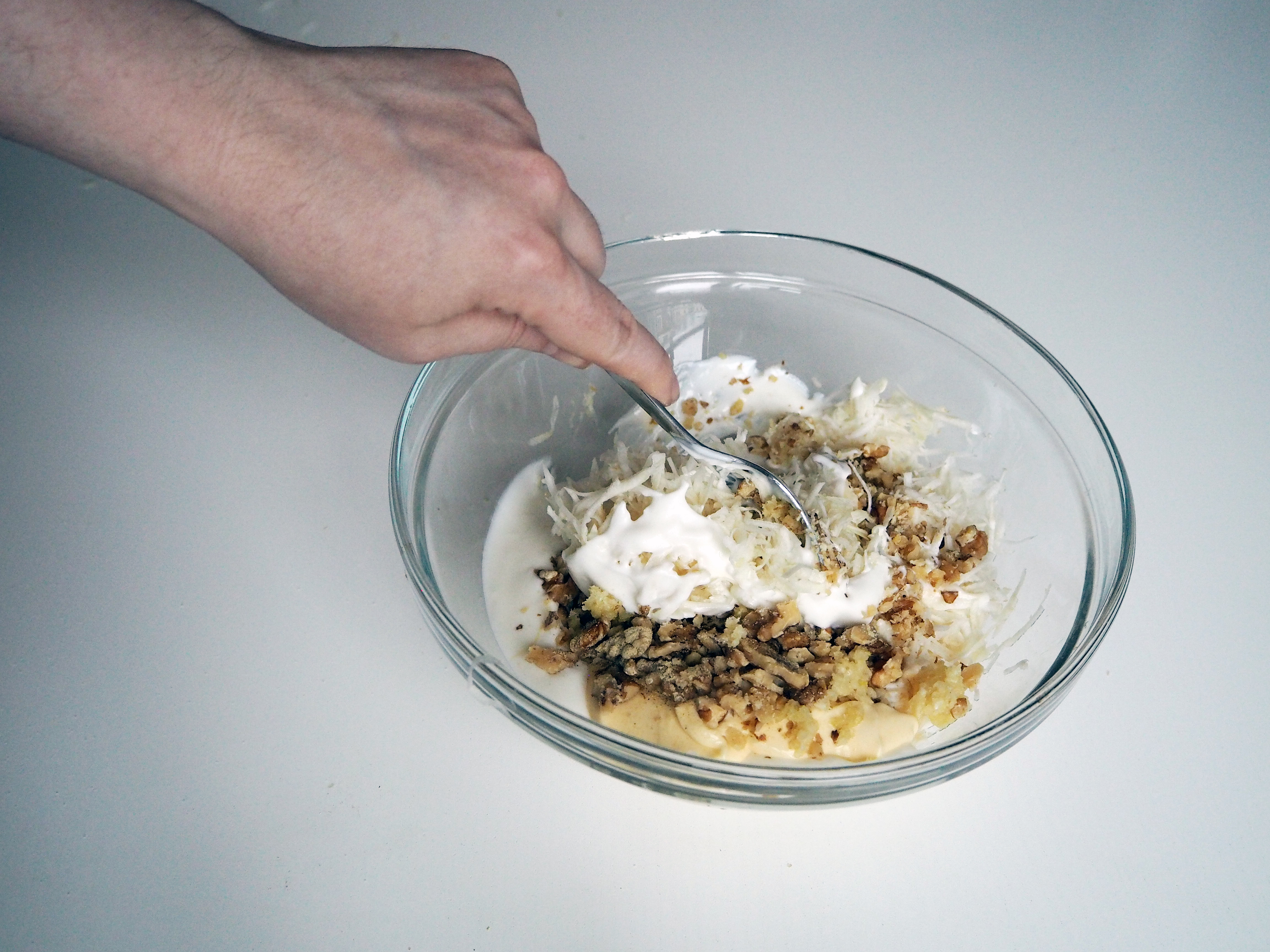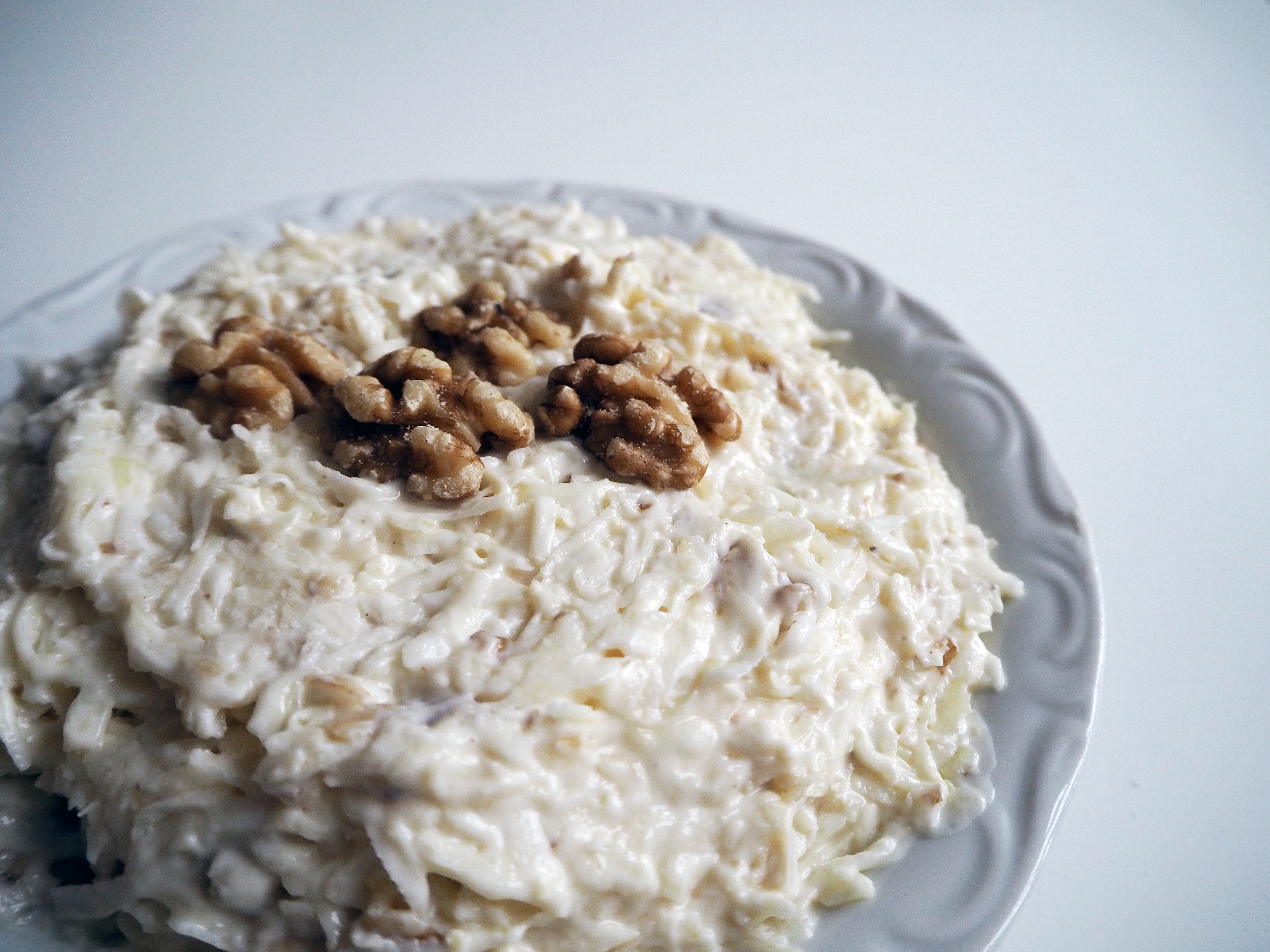 For the recipe you can use homemade or store bought mayonnaise – I was lazy so I just bought a small jar from the store. But of course, homemade is better! Apart from these ingredients listed here, you can put one grated apple in the salad – a famous TV chef in Turkey suggests this. I never tried this salad with apple so I cannot really say anything much, but let me know if you add!