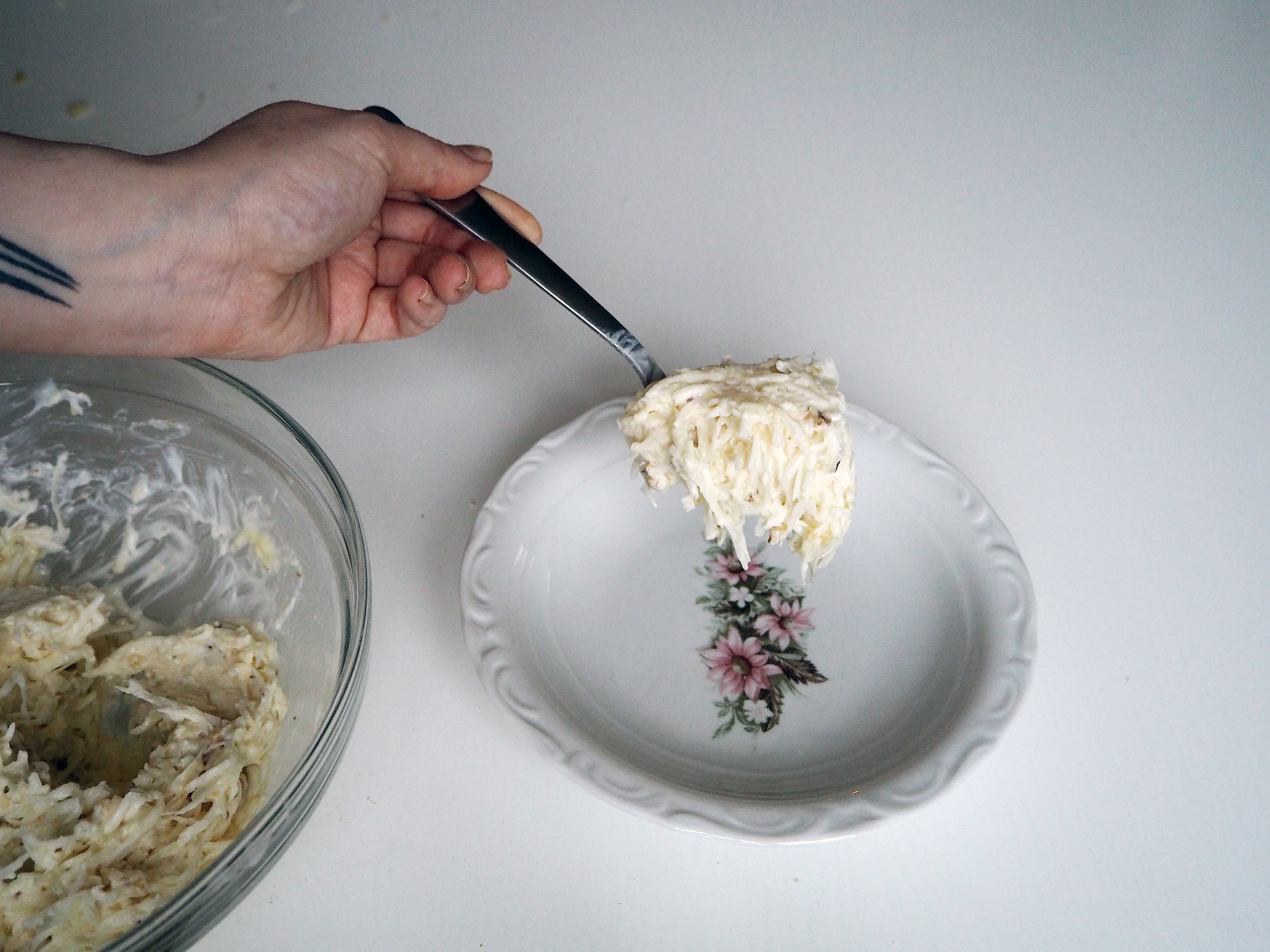 1. Grate celeriac (you can use food processor if you have, or you can just use a grater). IMPORTANT: Don’t leave peeled celeriac too long by itself, its colour darkens.