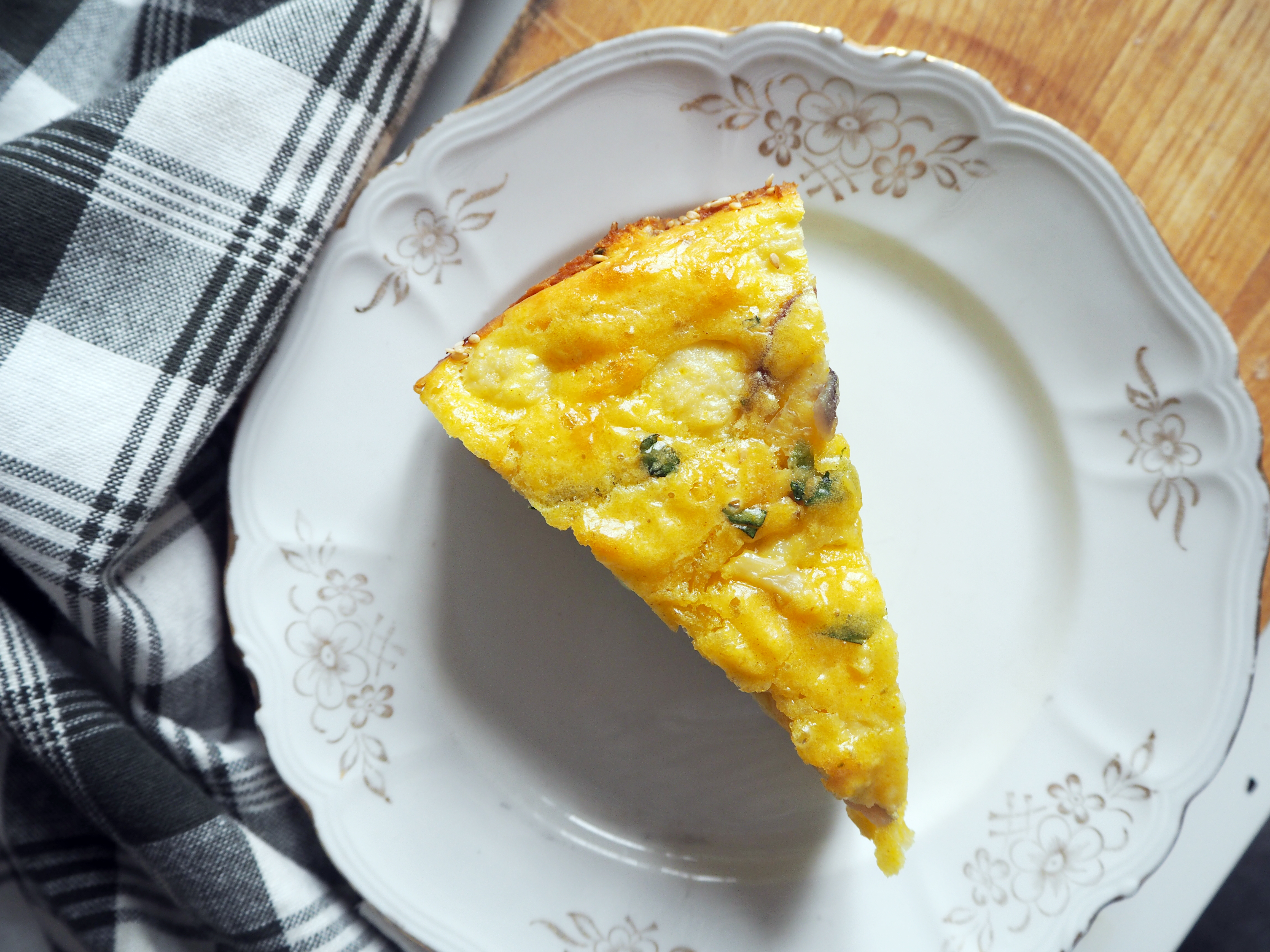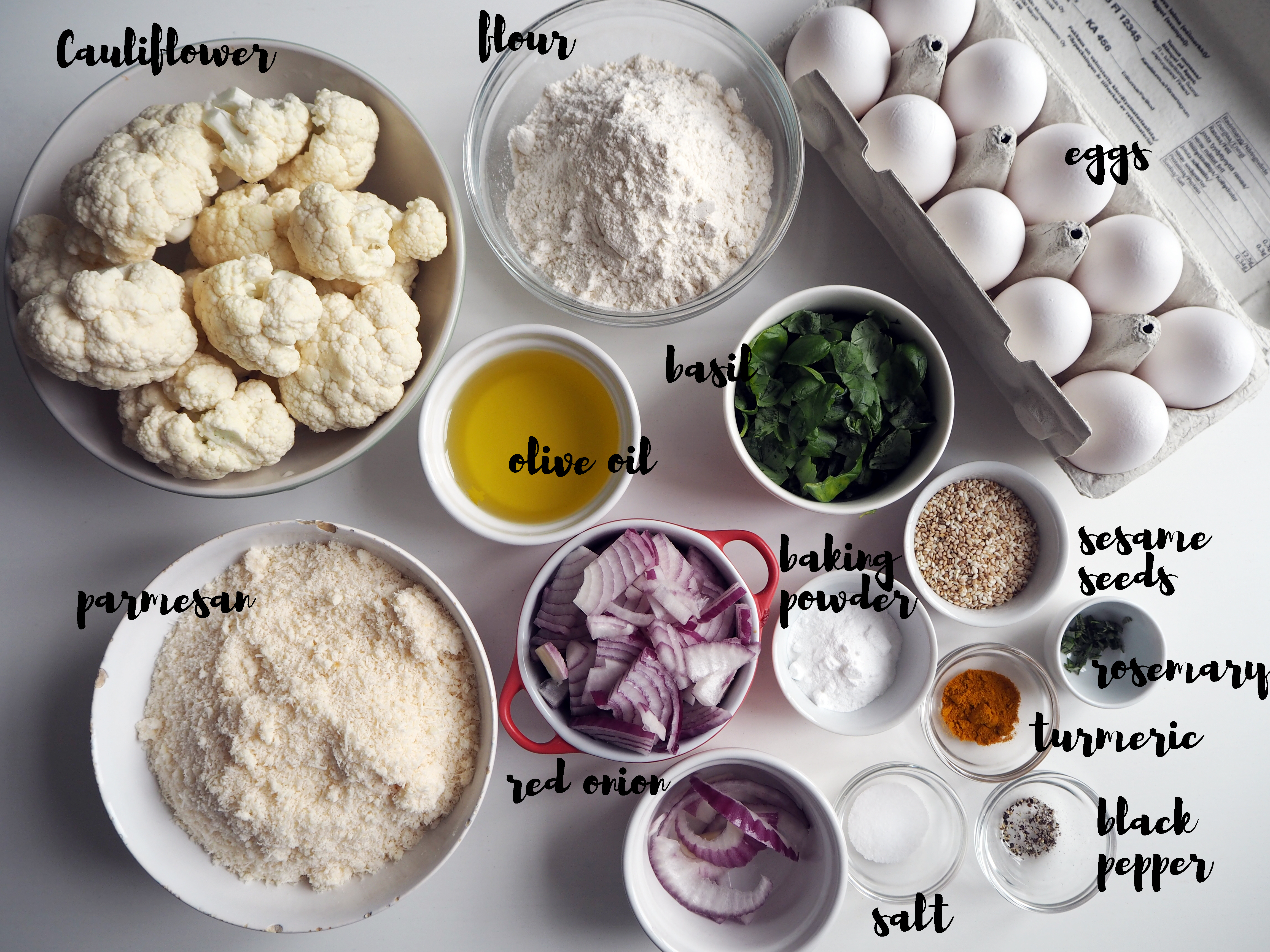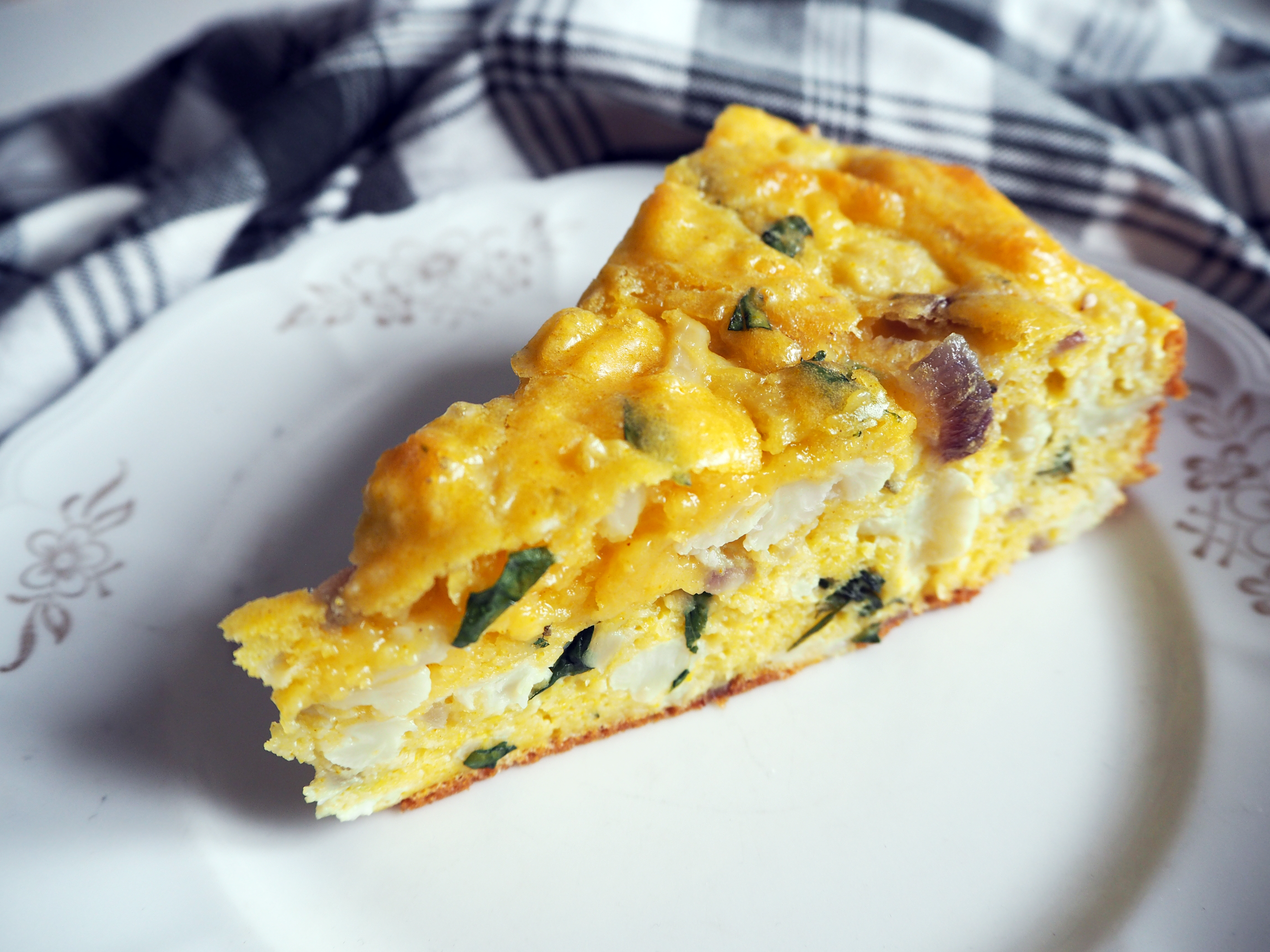 This is a recipe by Israeli / British chef Yotam Ottolenghi, and I saw it in The Guardian. It is a bold mixture of many fresh ingredients; apart from cauliflower, which is the star of this recipe, there are fresh herbs, ground turmeric, onion etc.. The result is a puffy, fluffy, big cake and even one slice of it makes you full enough.