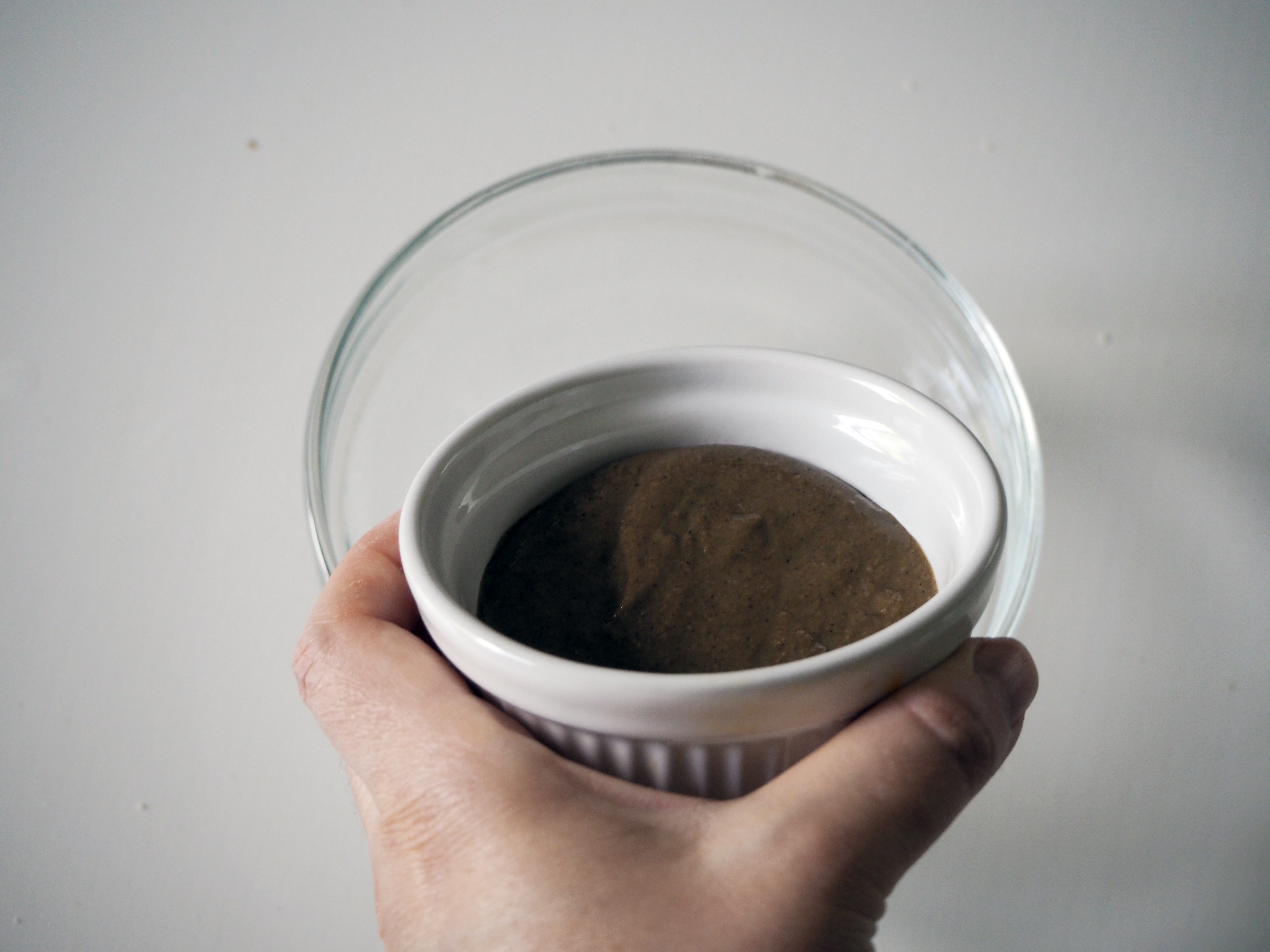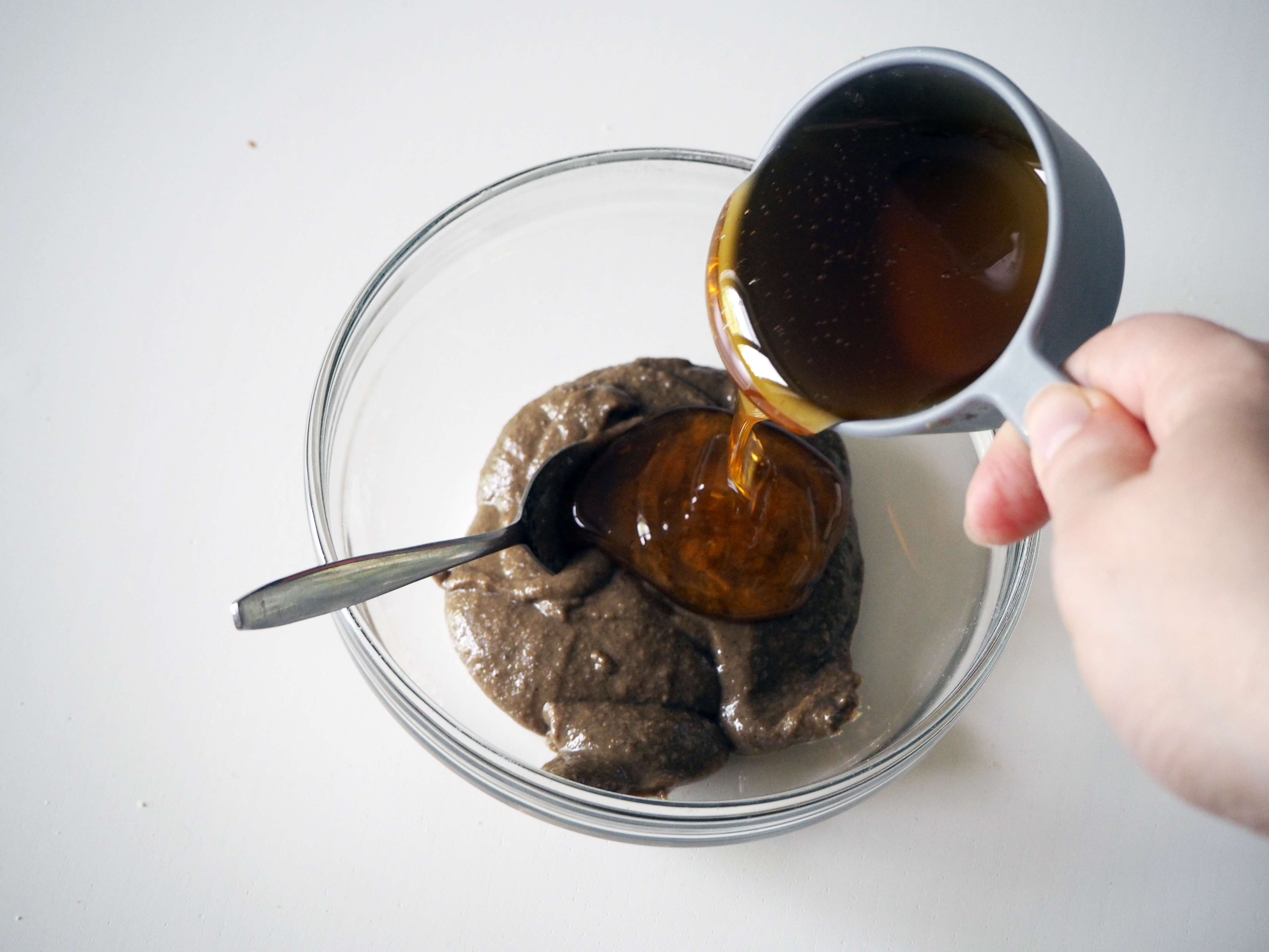 3. Add tahini mixture to dry ingredients and fold until the dry/wet ingredients mixture is smooth.