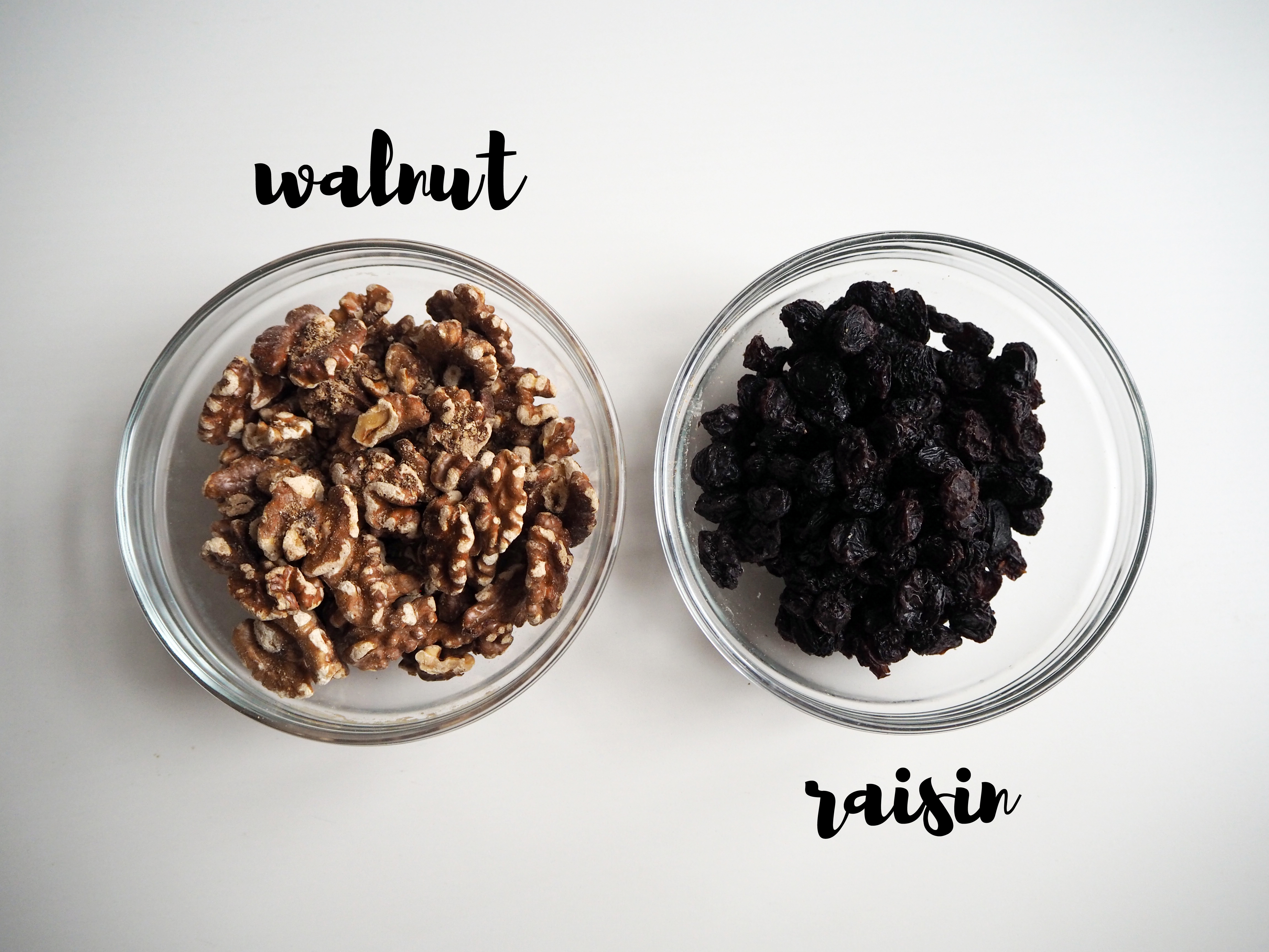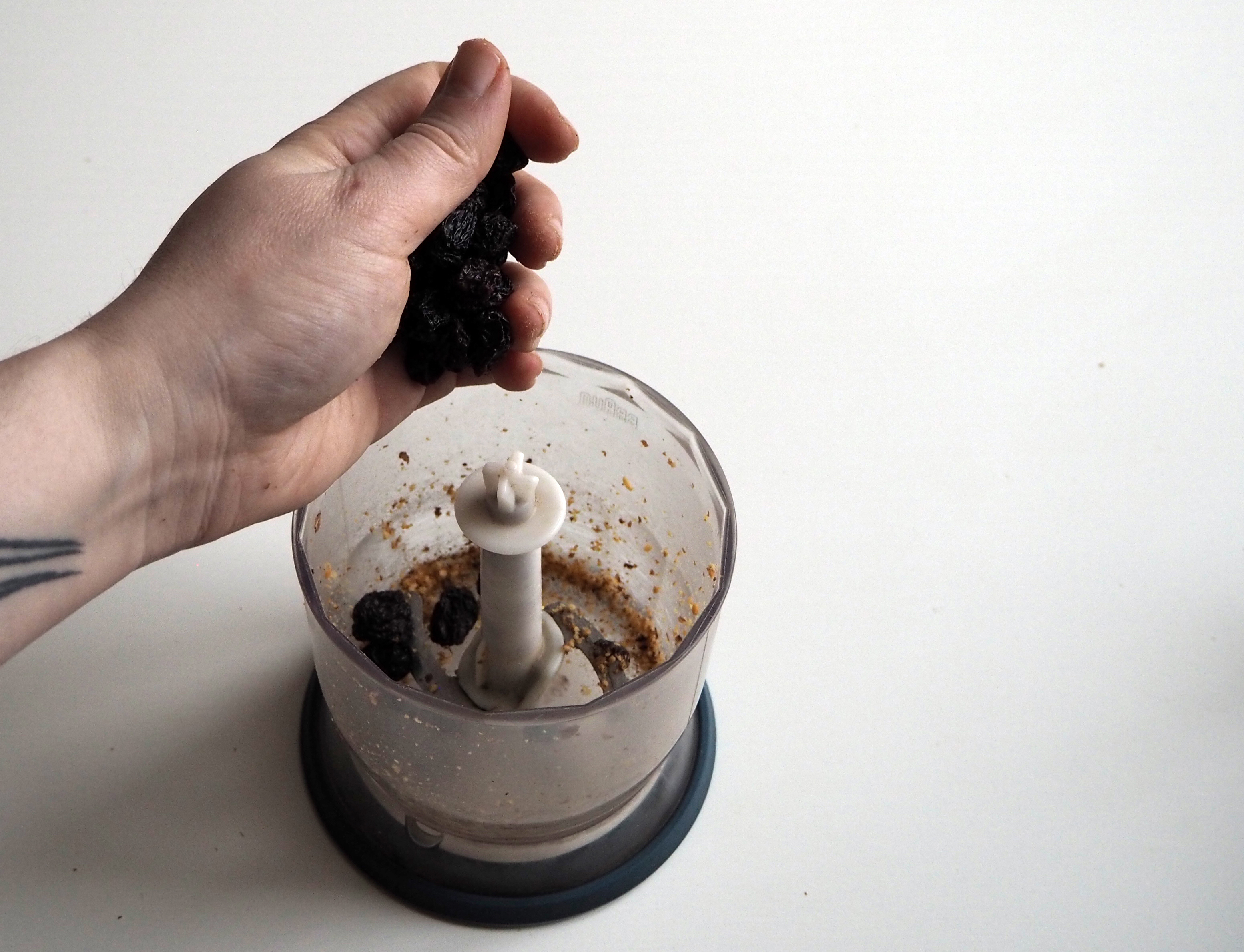 It has the simplest base – walnuts and raisins, mashed up in a food processor. I am actually not the biggest fan of walnuts and certainly not a fan of raisins, gotta admit. Walnuts feels generally too heavy for me and I like them more with salty dishes, like salads or in sauces. But these two ingredients together somehow did not create a heavy base but they blend rather smoothly.