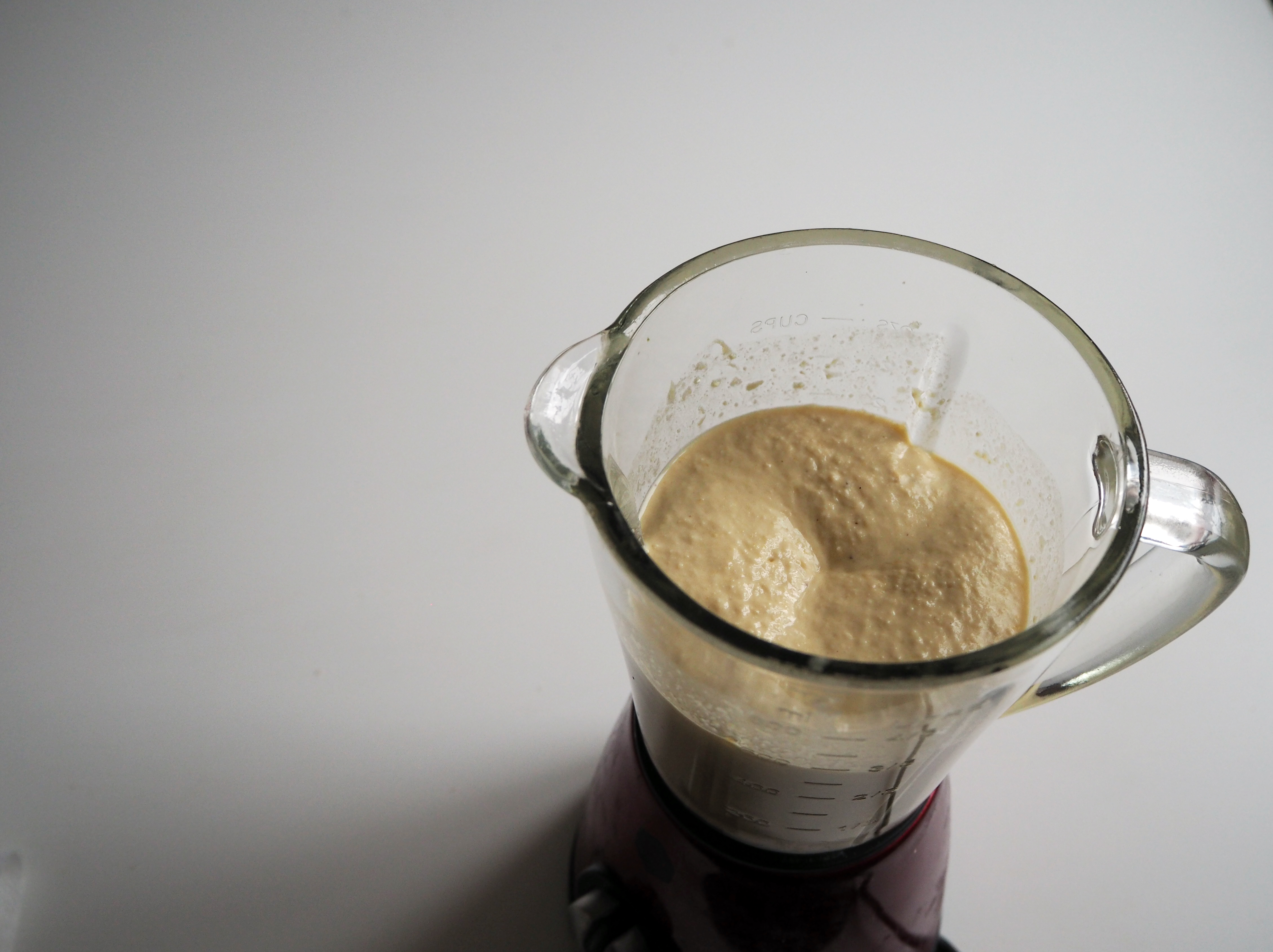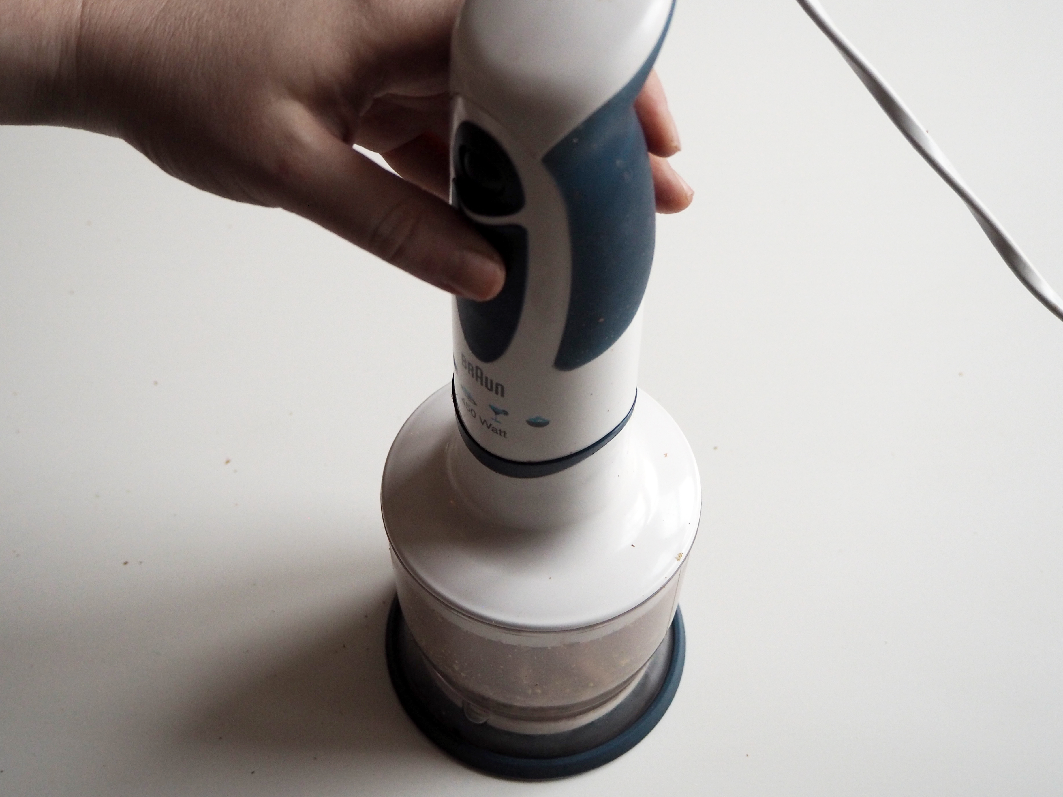 3. In a food processor (or a blender, because my food processor was too small in the end for this one), put all the ingredients for the second layer, except for pomegranate seeds. Process them until it is a smooth cream.