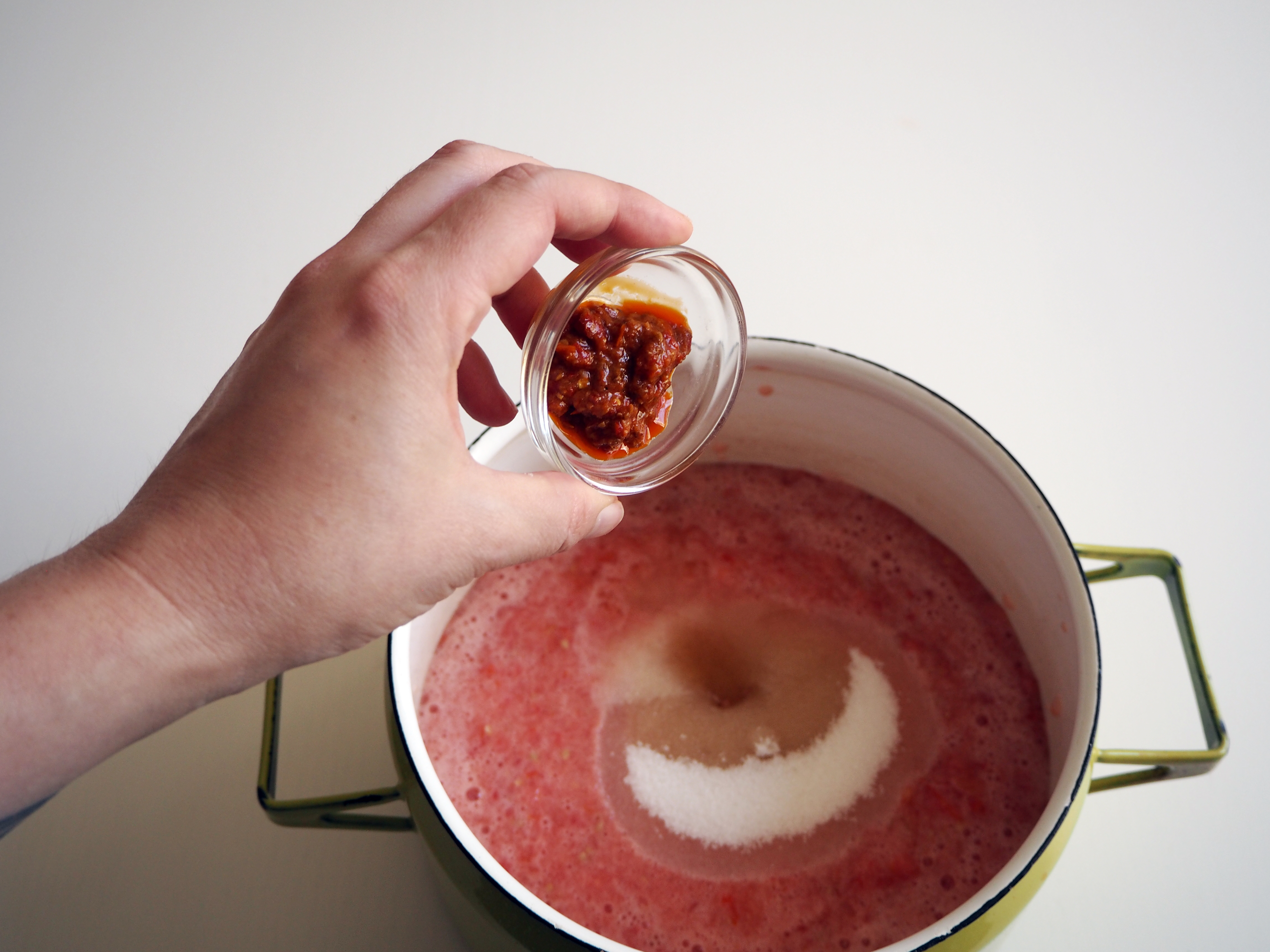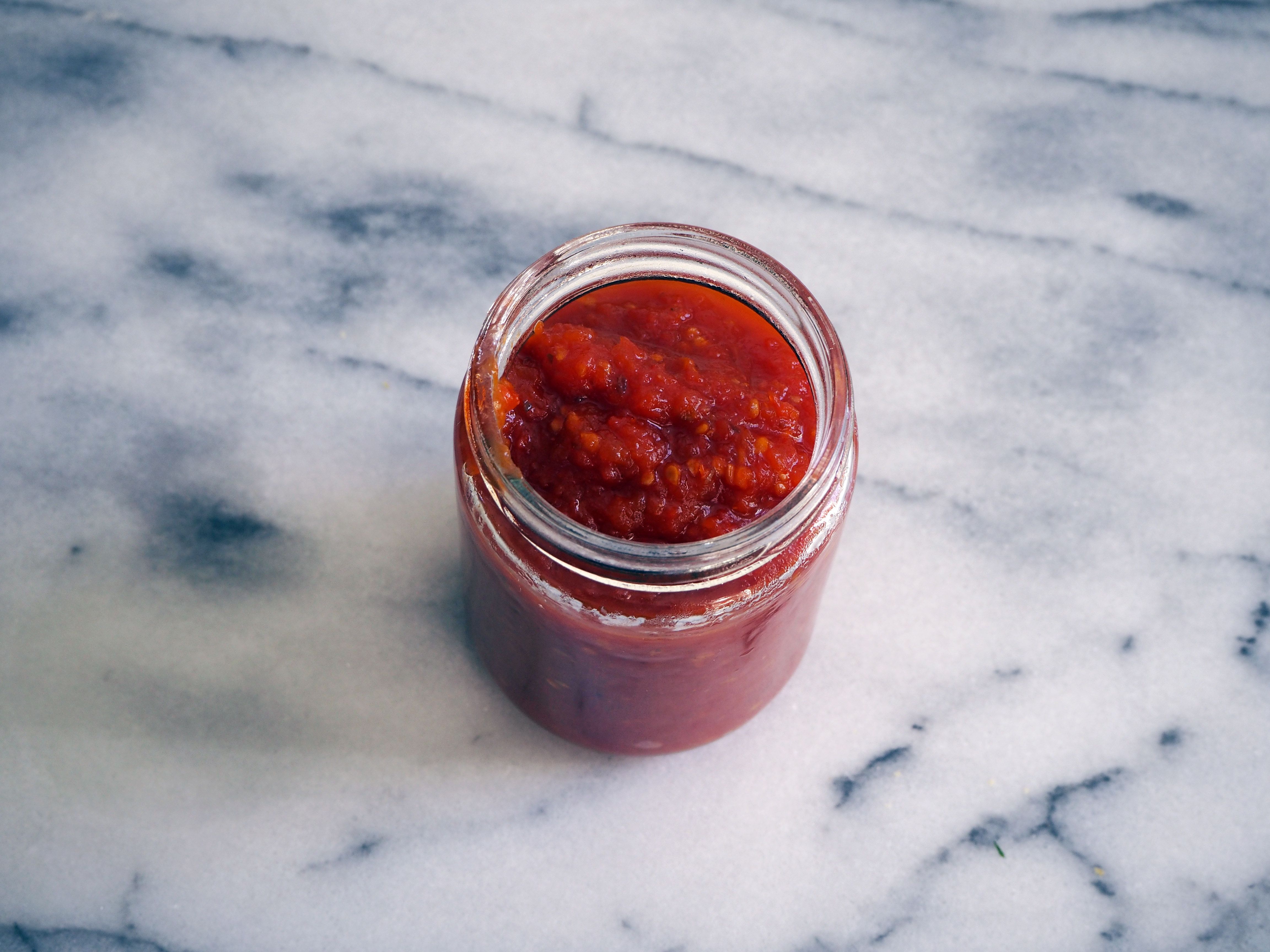 “We’re jamming” – every time Bob Marley says that, I hear “pyjamas”. Luckily a quick google search showed me that I am not the only one. But hey, this was not what I was planning to say.. Ok, I made jam!! And it’s from my most beloved fruit, tomatoes! Yes, I call tomato a fruit because I’d like to support the scientific thinking. A tomato is technically a fruit, but the use of it in mostly savoury dishes makes it a vegetable in practice. This jam, though, is not the regular jam as you know it – this one has a very, and I mean very, spicy sauce in it called “harissa”, coming from Maghreb cuisine.
