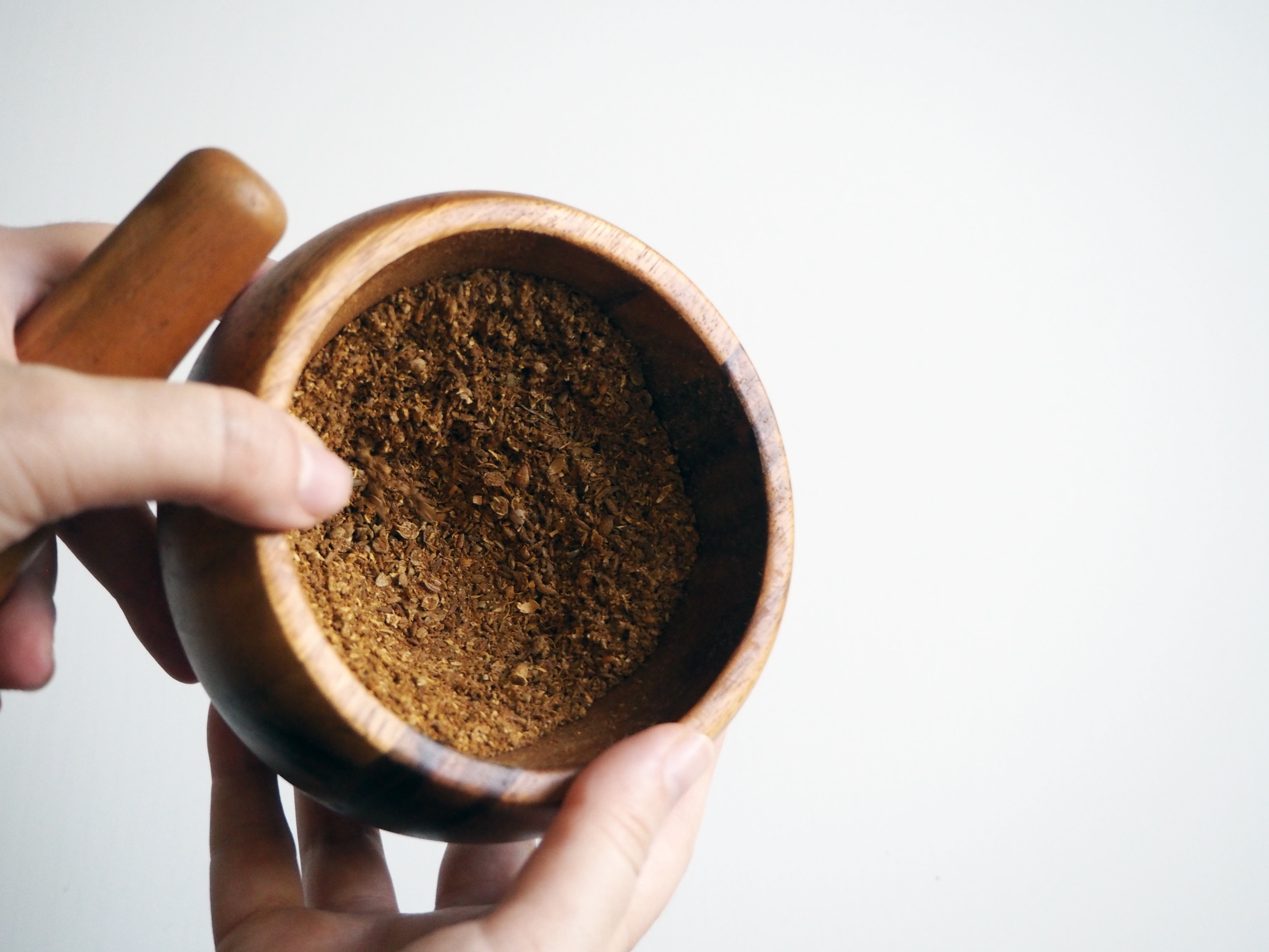3. Using a mortar and pestle, grind roasted seeds to a powder.