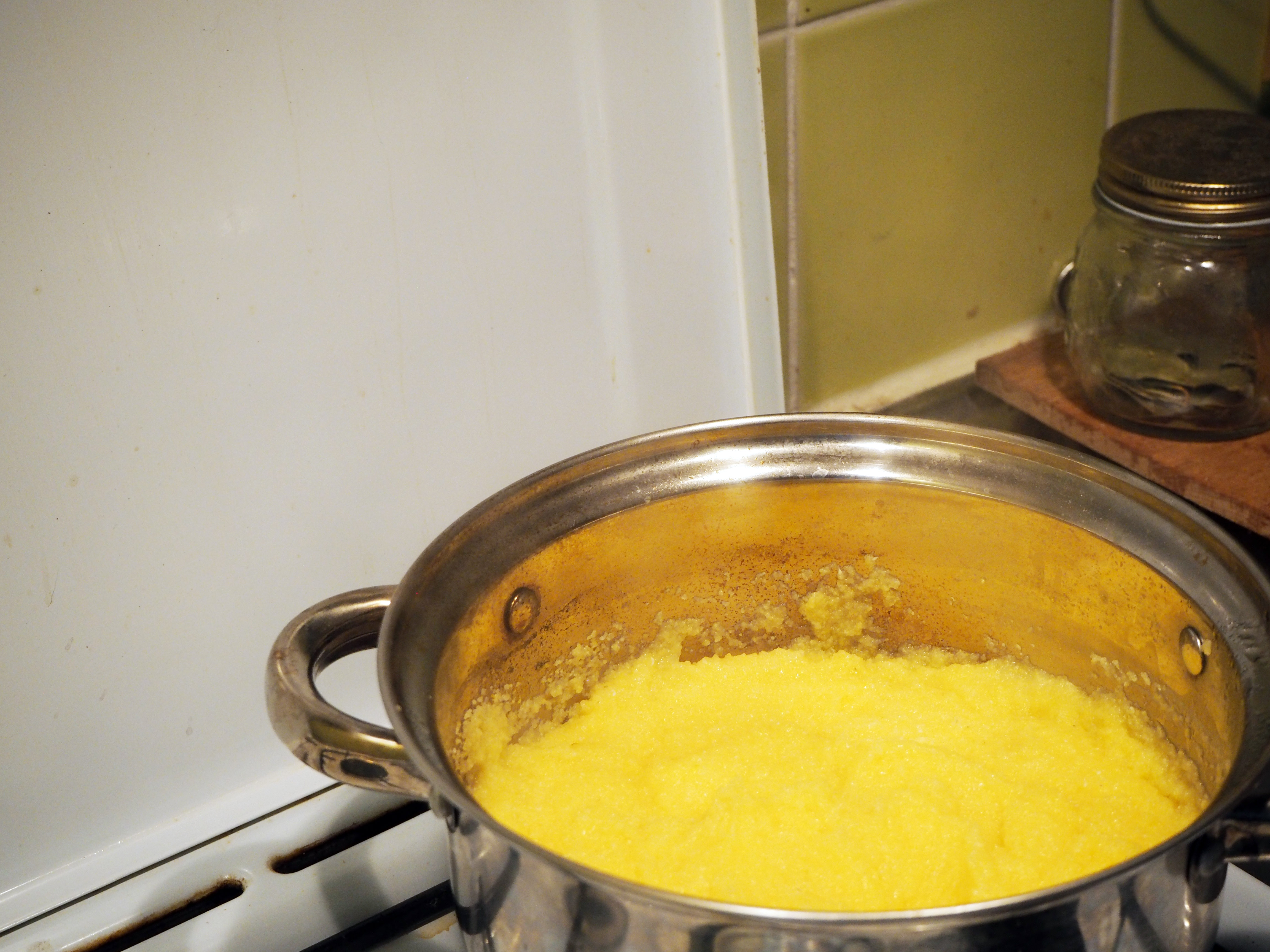 1 cup / 2.4 dl polenta (For instance you can find it in Ruohonjuuri or Ekolo in Hakaniemi)
