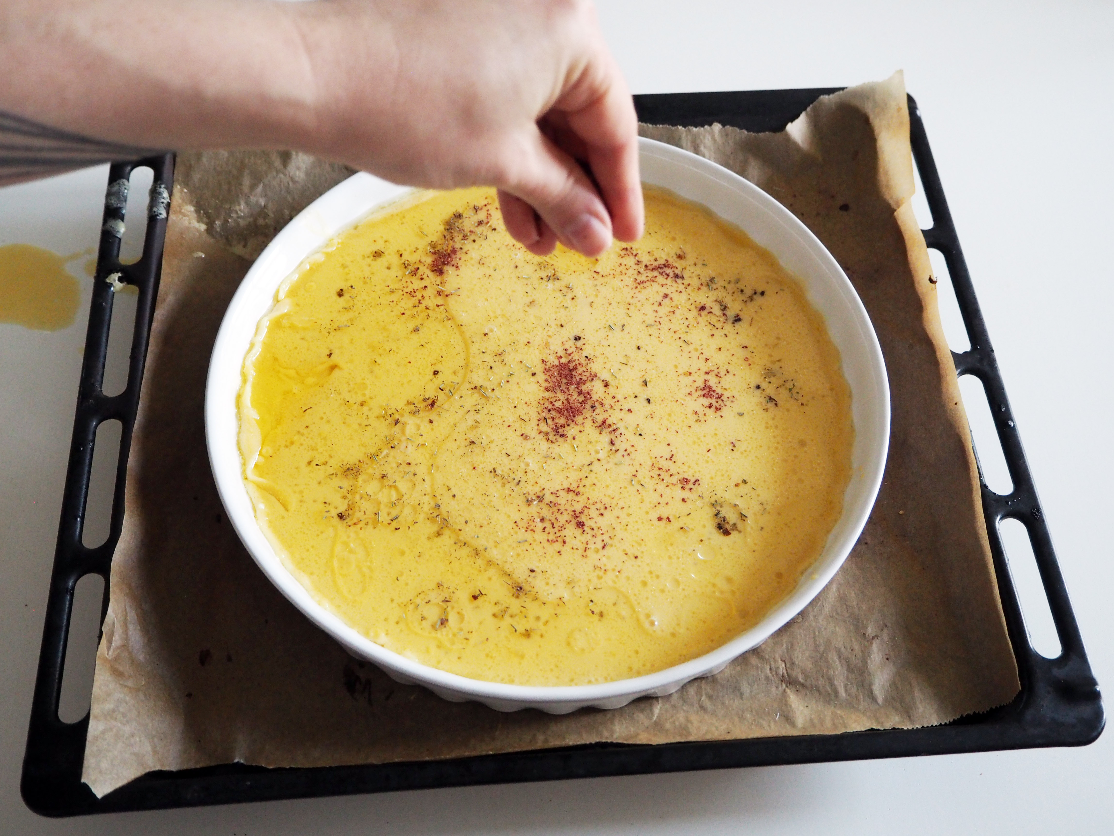 In the original blog post that I got the inspiration from, Chef John does this heating thing in a different way. First of all, he uses a cast iron frying pan. He pours olive oil on the pan and heats it well on the stove. In the meantime, he heats the oven. When the olive oil in the pan is hot enough (but not “frying”, it’s kind of right before frying, let’s say), he pours the batter on the pan, then without shaking the batter too much, he moves the pan inside the oven. Now, I do not have a cast iron frying pan, and even I did (I checked to buy one for this occasion), my oven is too small to fit a good sized frying pan. So instead I used regular oven moulds (be it ceramic, be it aluminium), and heated the mould together with olive oil inside the oven from scratch. It worked fine for me and I am happy with the results!