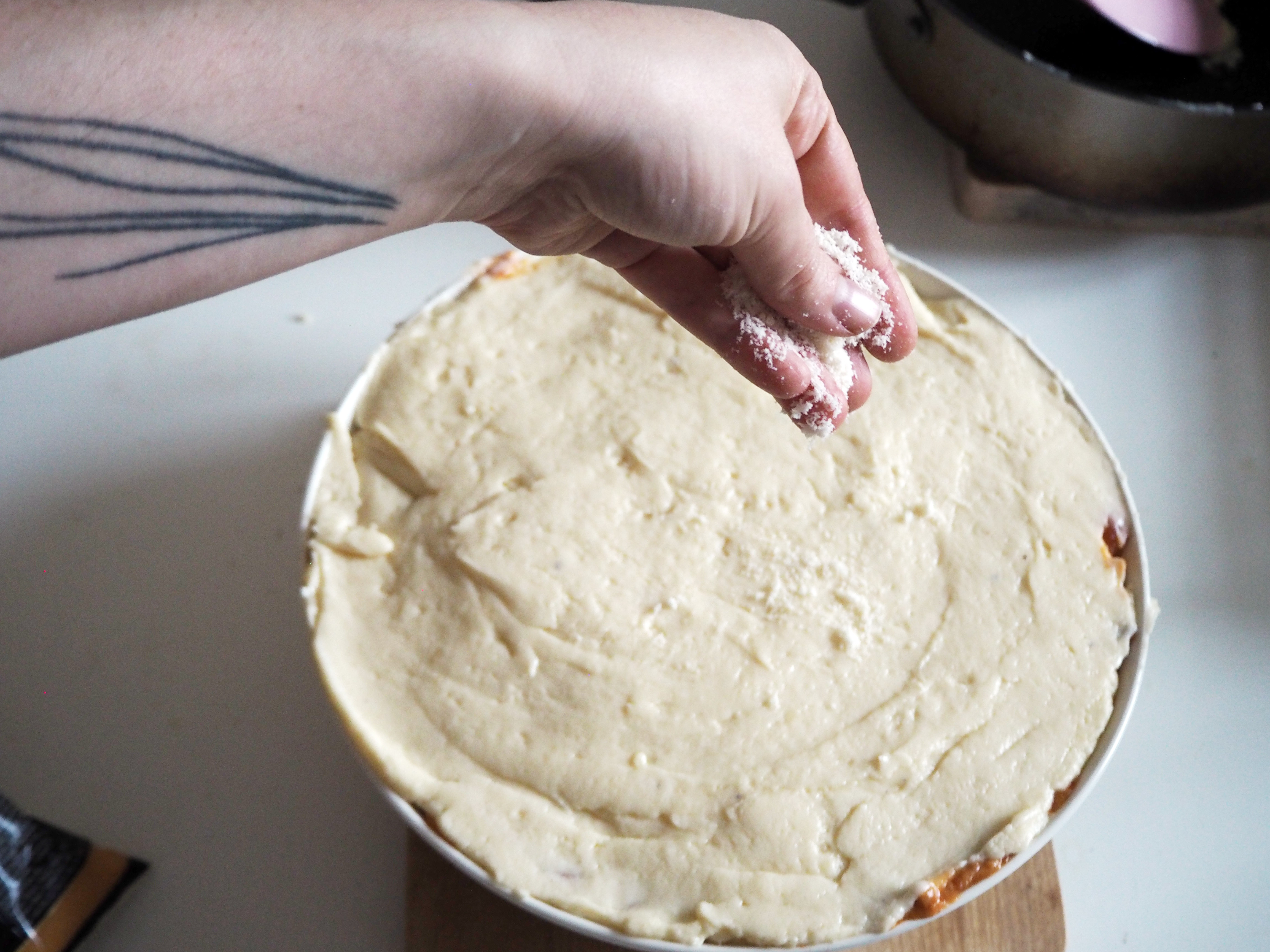 (Recipe is suitable for a deep oven pan, 26cm in diameter. You can use a rectangular dish, I would, but none of the ones I had was deep enough.)