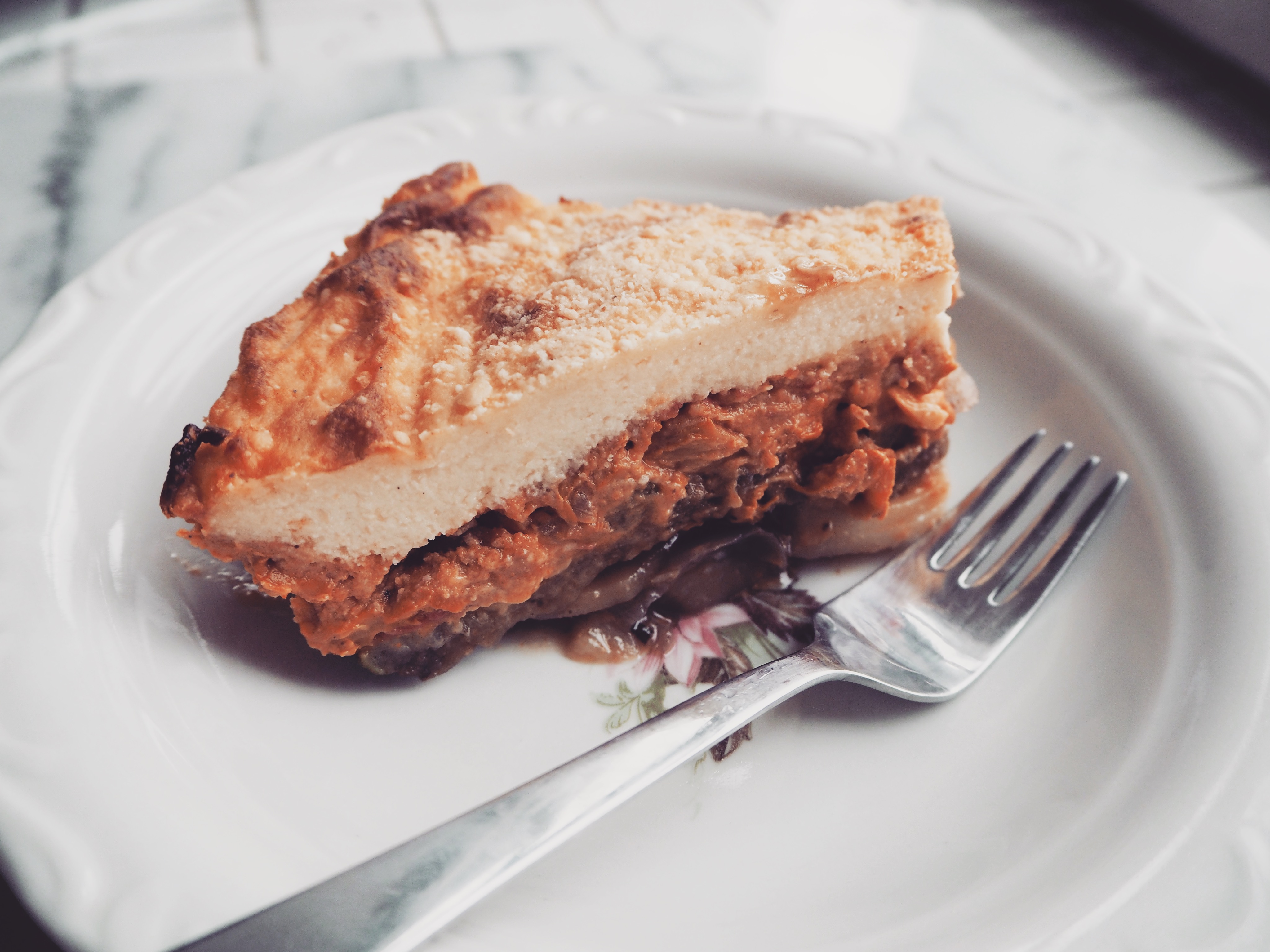 Yet, this moussaka is closer to Greek version. I do not eat meat too much anymore, so a while ago I started thinking what I could use to replace meat with, without turning this too much into a ratatouille. I saw versions with different kinds of vegetables, with lentils, with many other things, and in the end I decided to try cooking with mushrooms because Finland and mushrooms are almost identical in my head. So I bought a bunch of chanterelle (oh how beautiful you are, sweet chanterelle) aaaand here we are..
