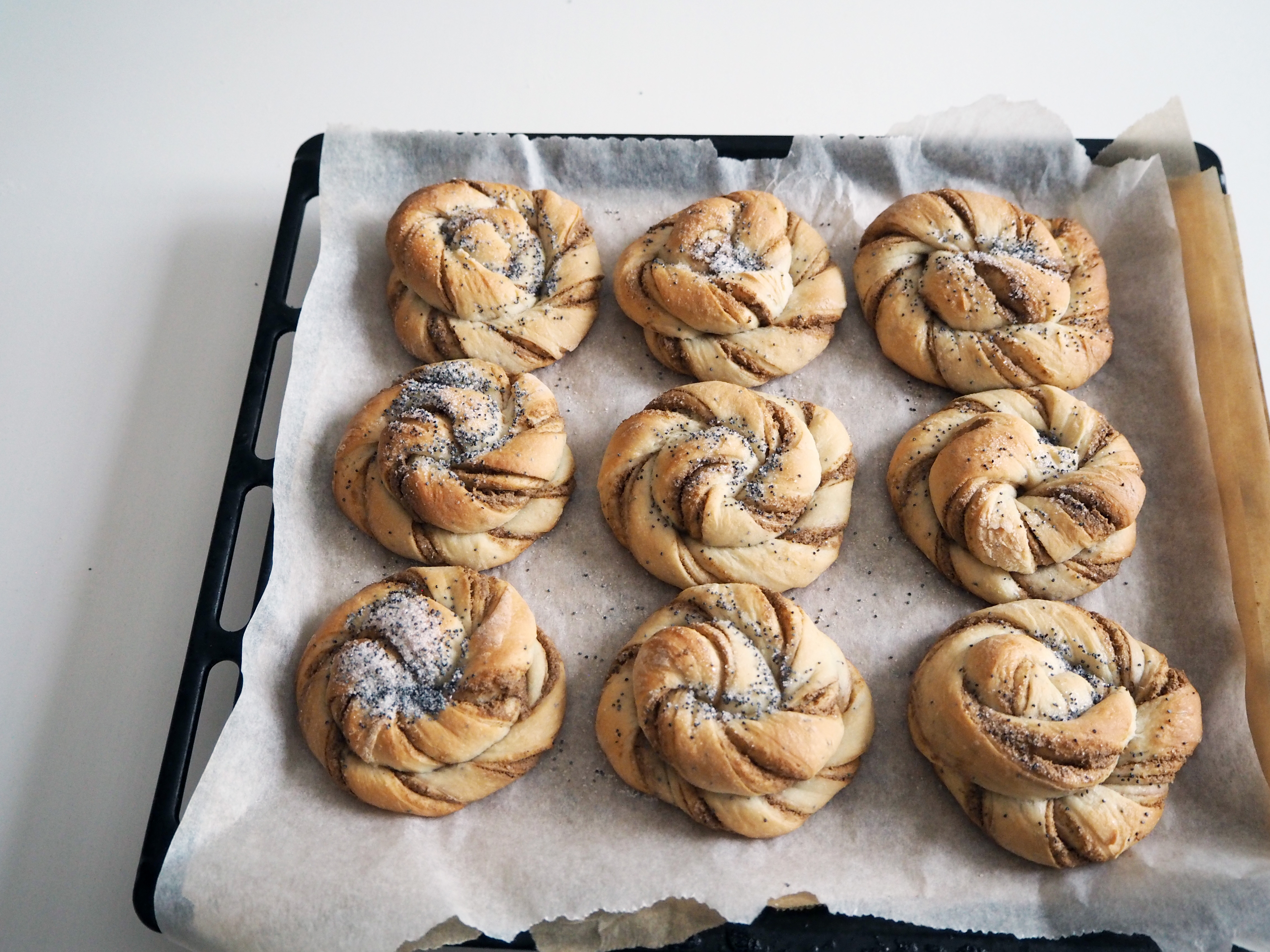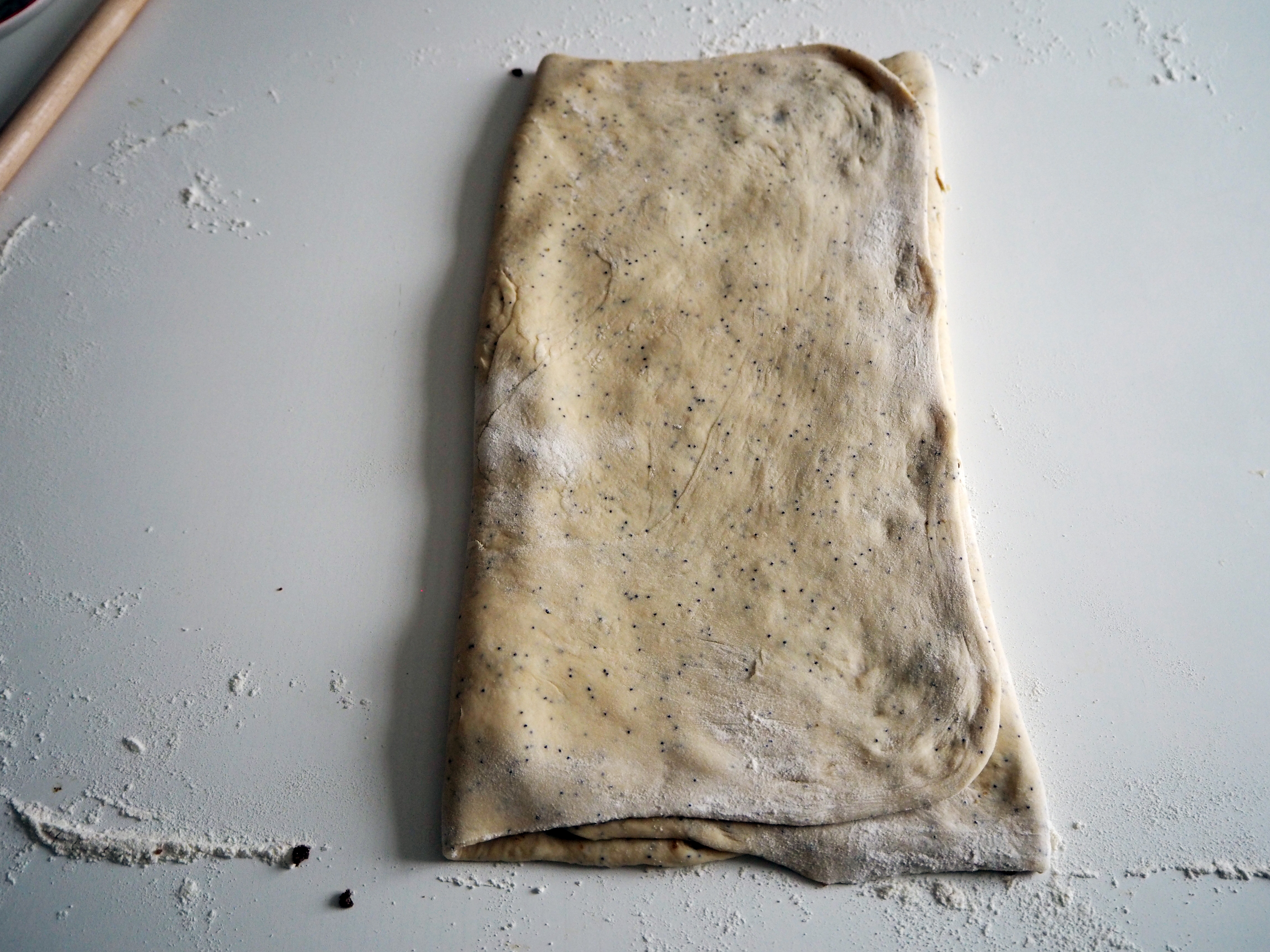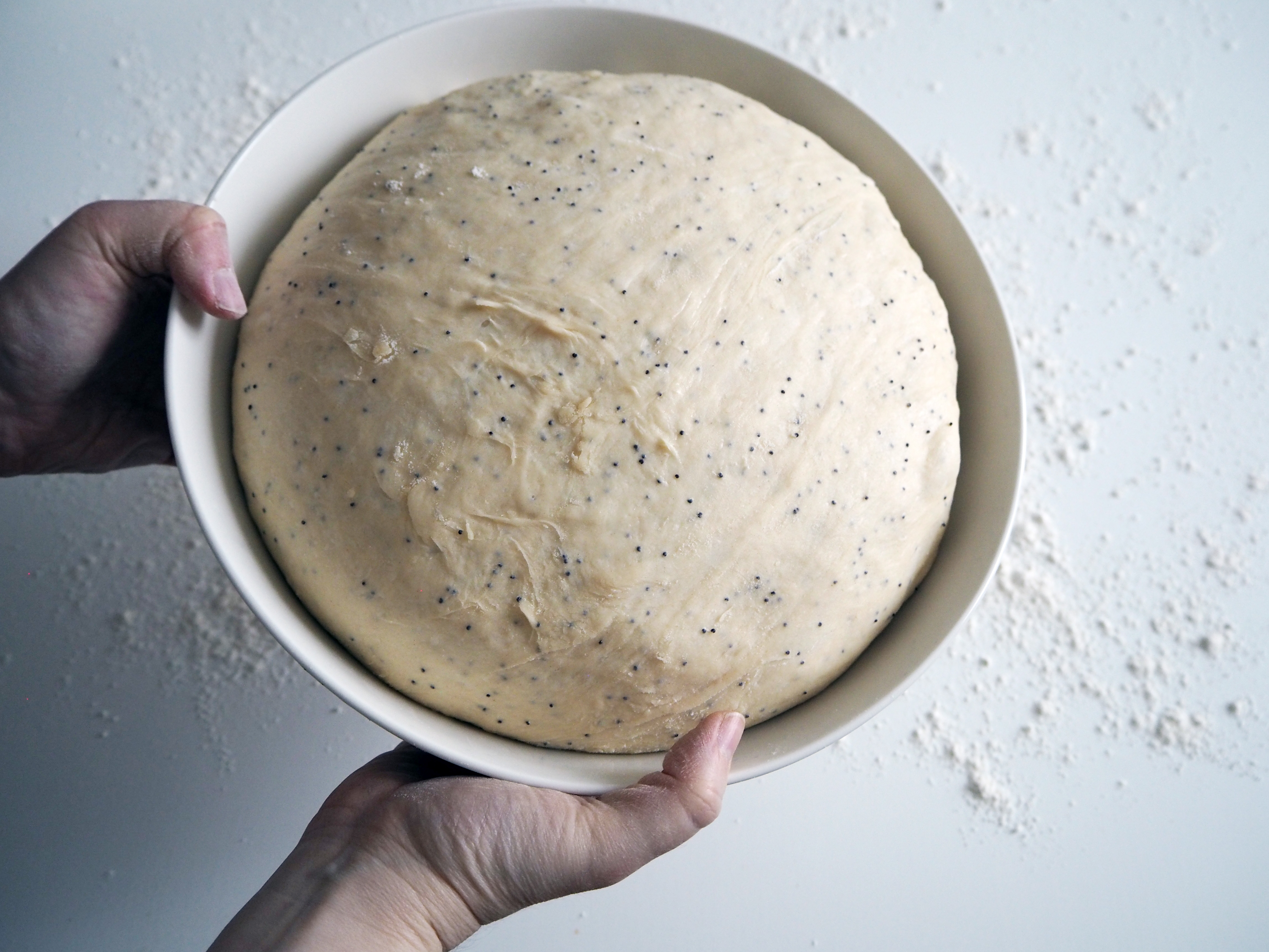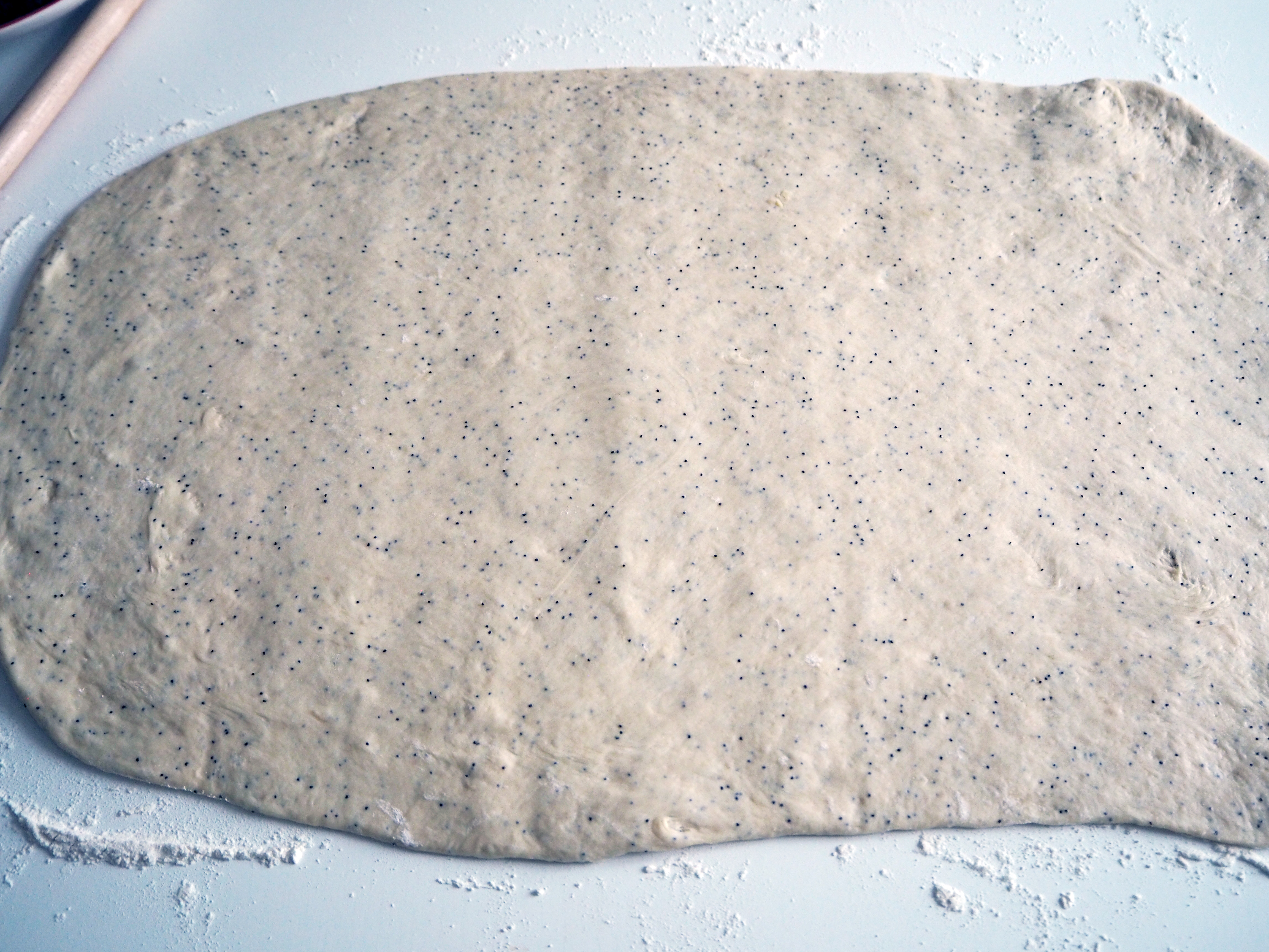 Since I got the first jar of poppy paste, I’ve worked on the recipe a few times. Finally I made one version that works great by adapting a Swedish cardamom bun recipe. I changed the cardamoms to poppy seeds and worked on the best measurements for the ingredients of filling.