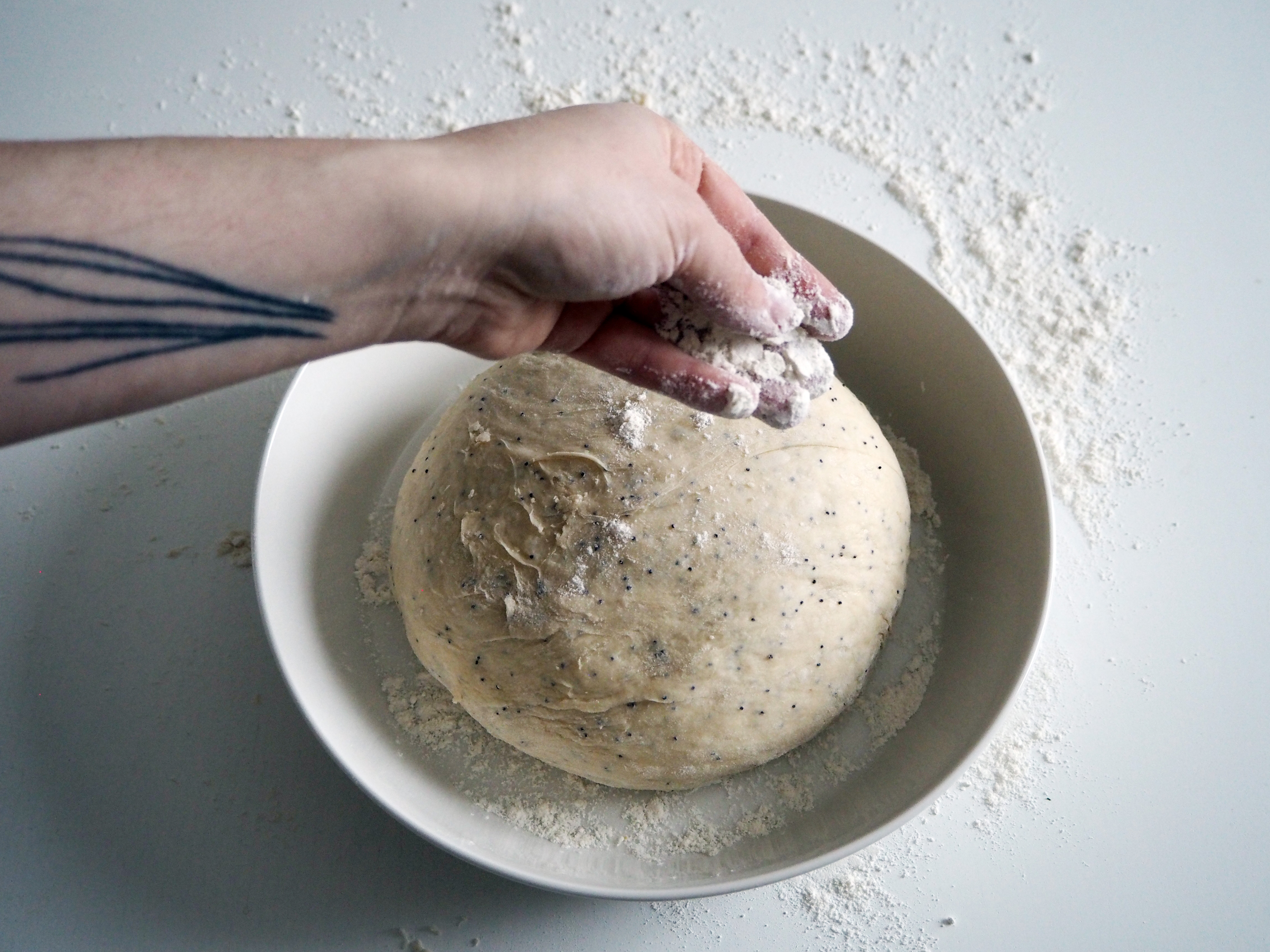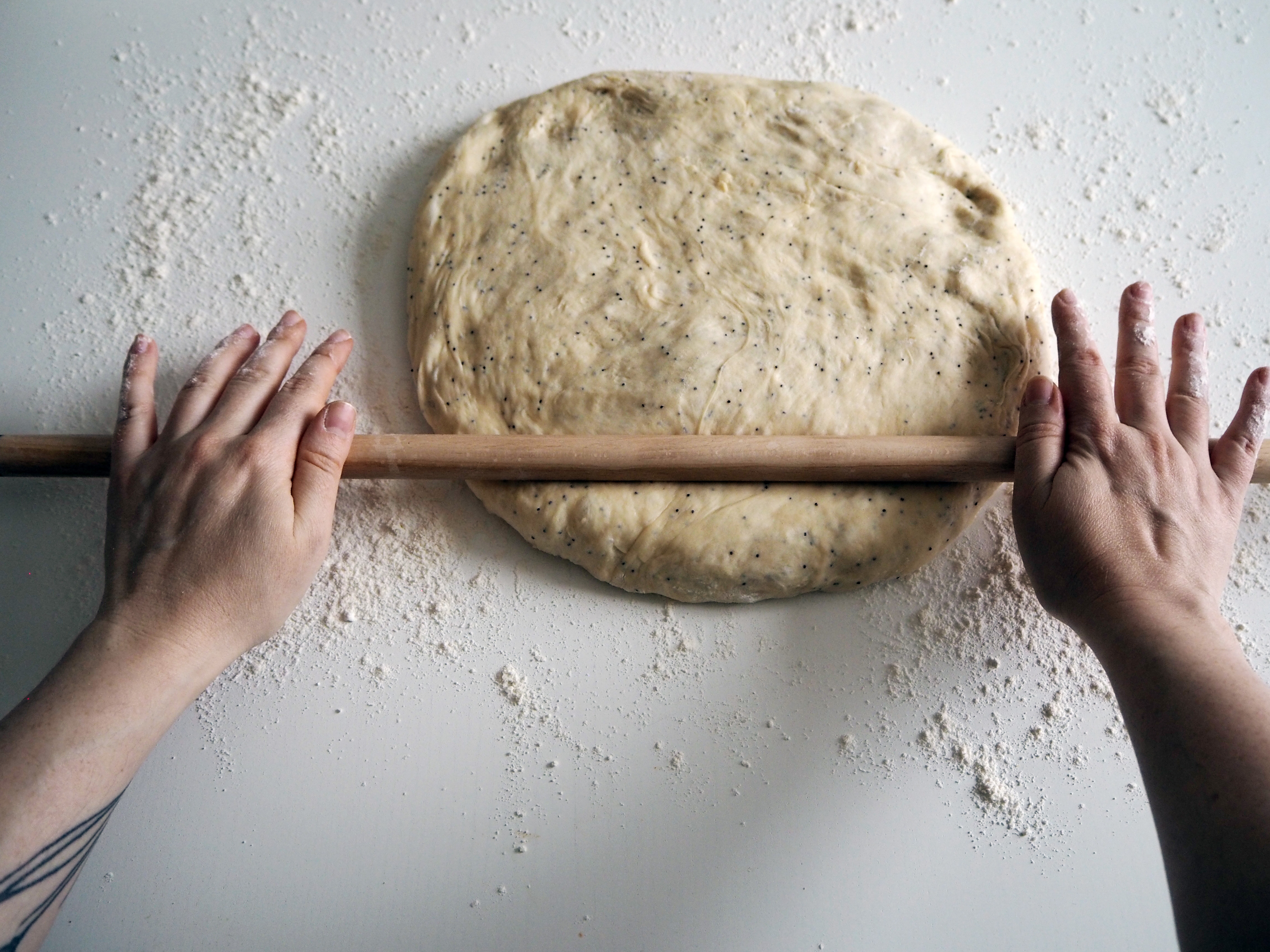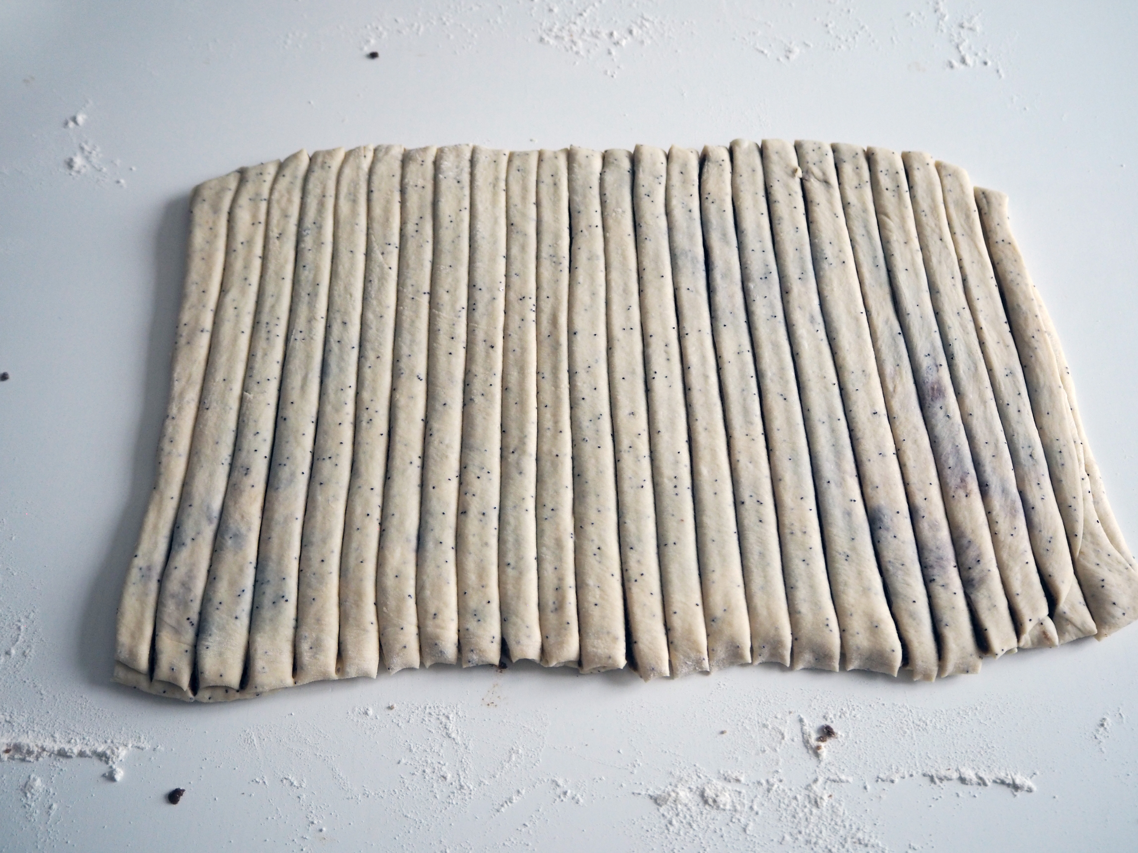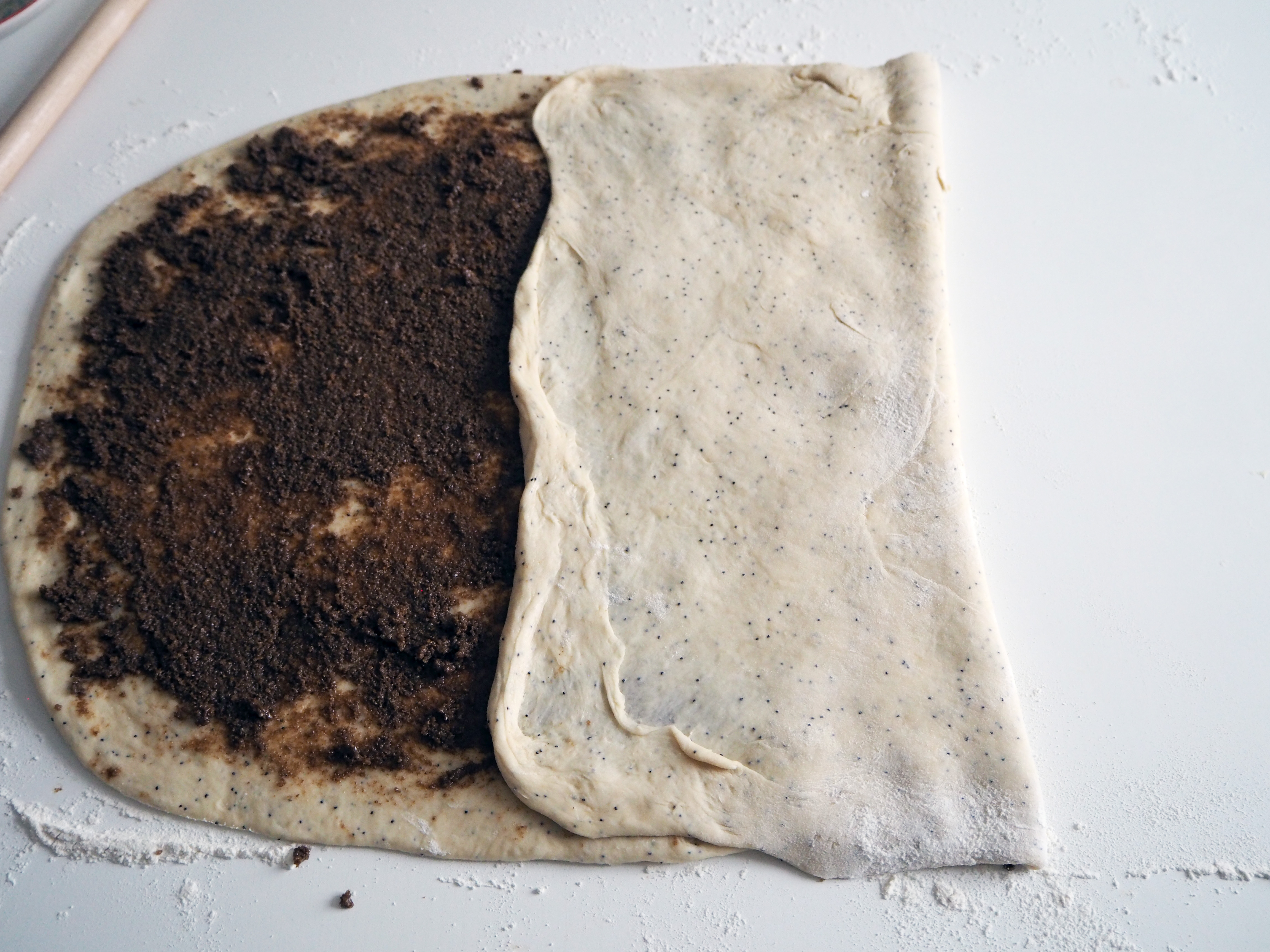 Since I got the first jar of poppy paste, I’ve worked on the recipe a few times. Finally I made one version that works great by adapting a Swedish cardamom bun recipe. I changed the cardamoms to poppy seeds and worked on the best measurements for the ingredients of filling.
