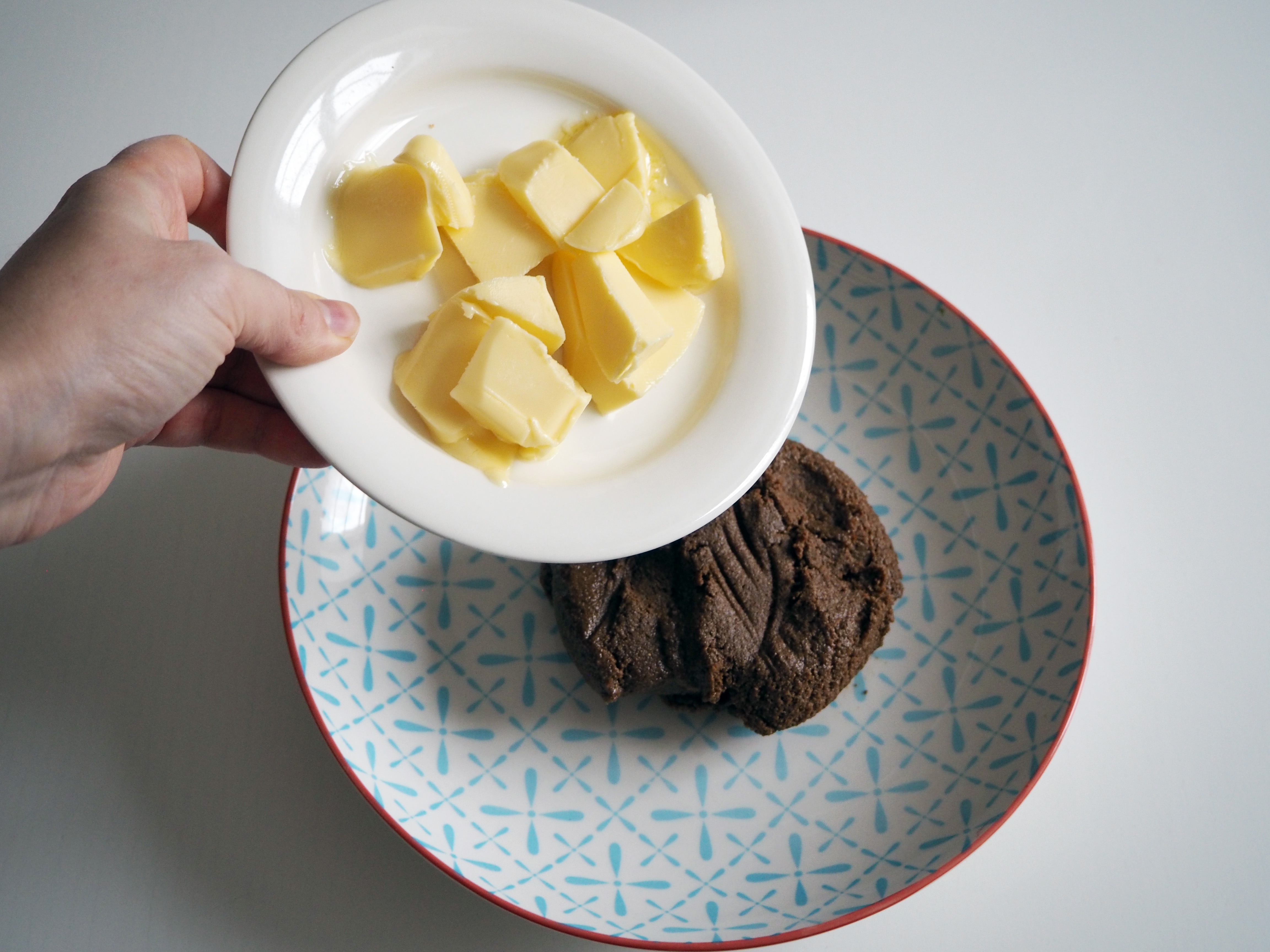 6. While your dough is rising, prepare the filling. Put all filling ingredients in a bowl / plate and using a fork (or a whisk if you like), make a paste to spread.