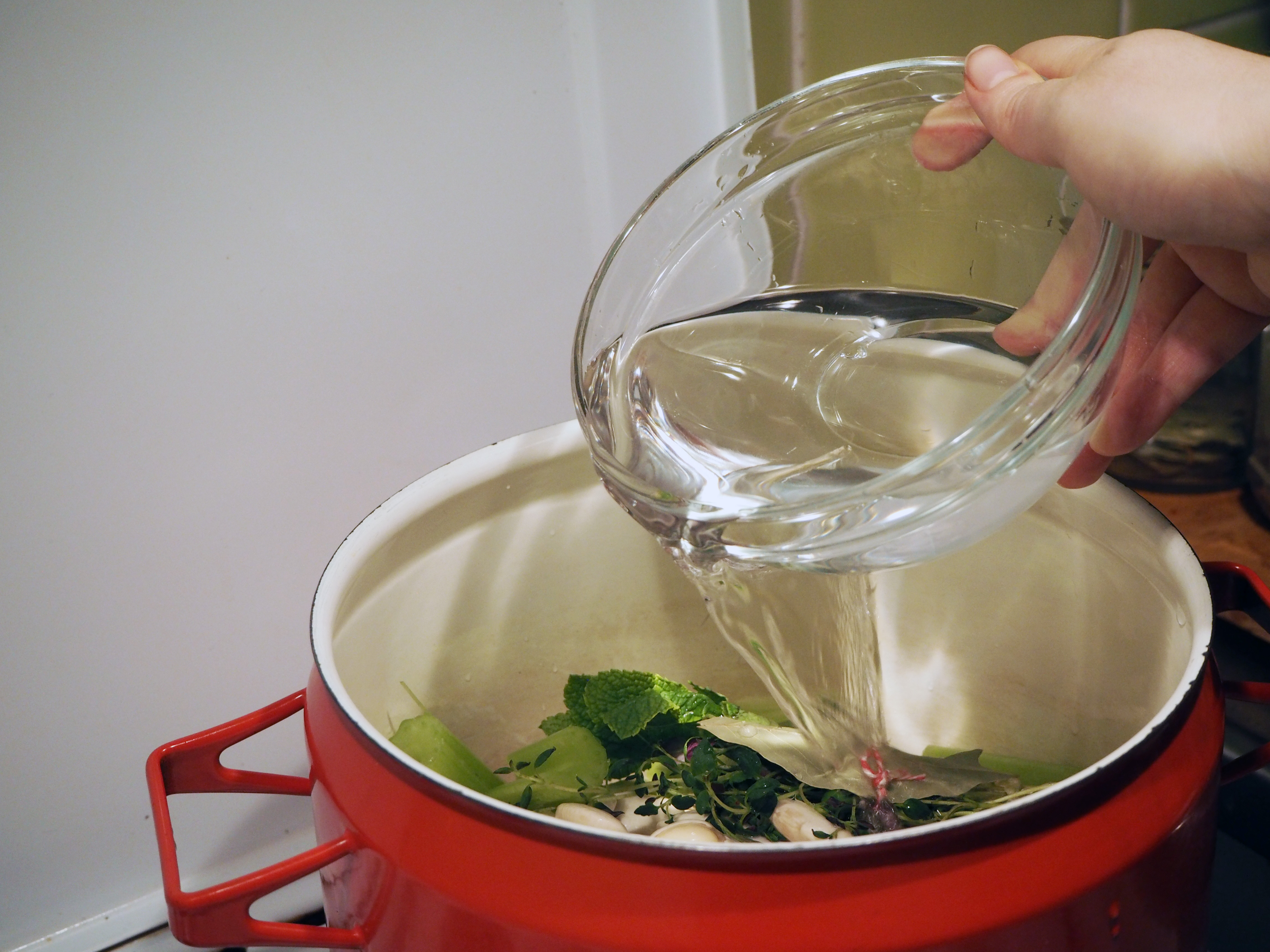a handful of fresh thyme, mint and one bay leaf, wrapped into a bundle