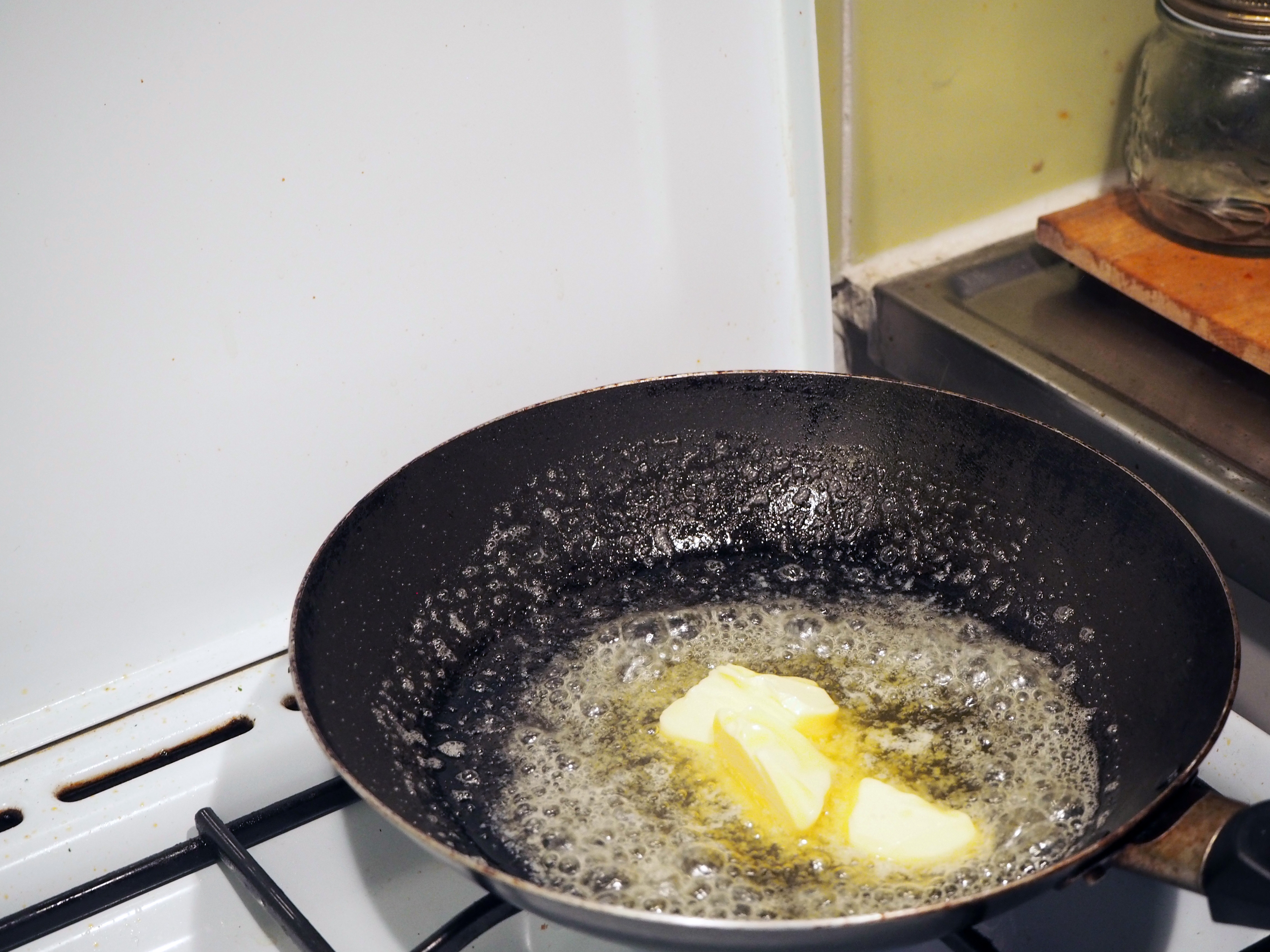 8. While the beans are baking, prepare the finishing touch. In a medium pan, put butter on medium heat. When the butter partially melts, add breadcrumbs and keep stirring, until the crumbs get golden brown colour.