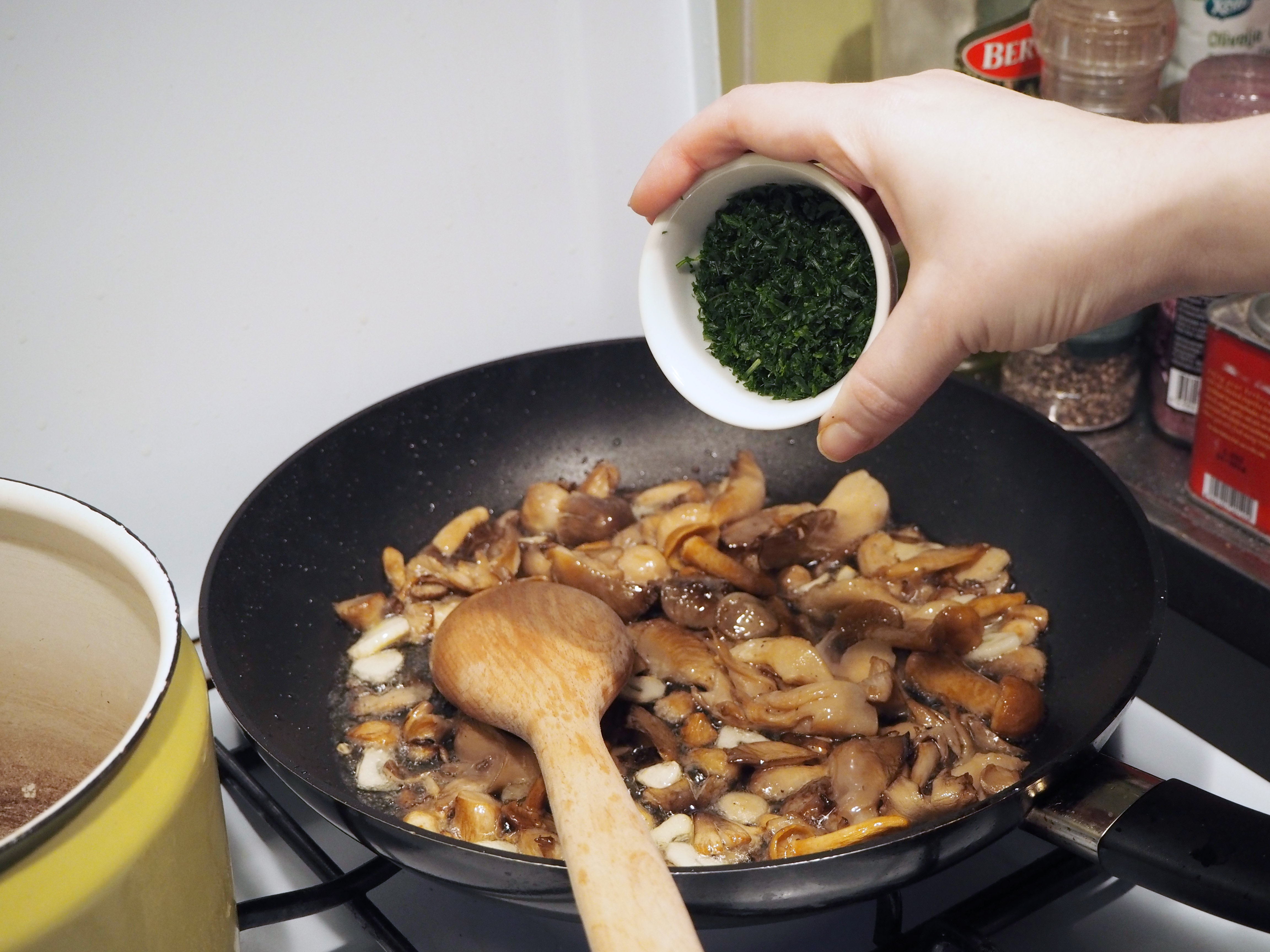 250 gr. mushrooms (could be a collection of different kinds like I did, or porcini mushrooms if you can find)