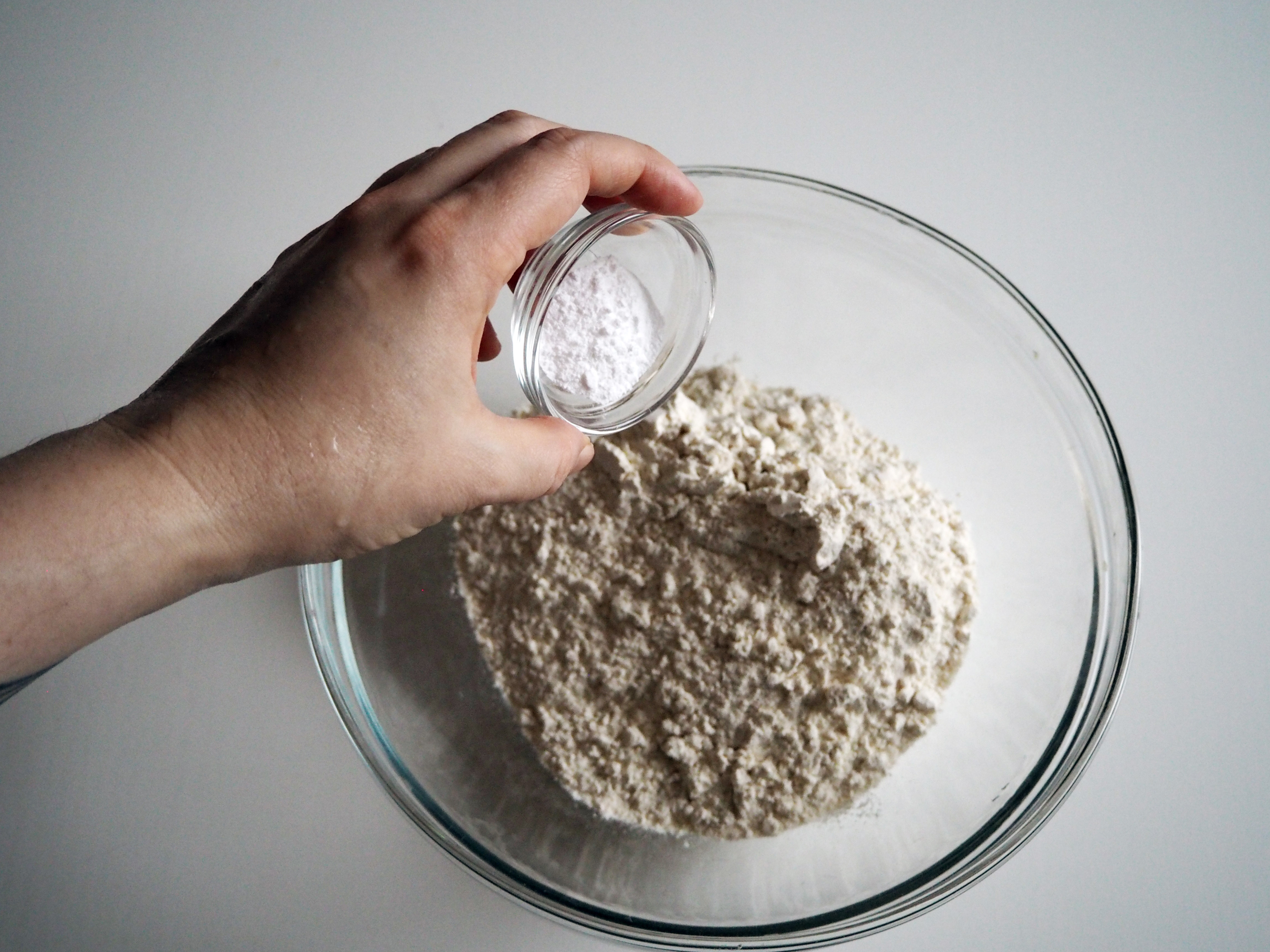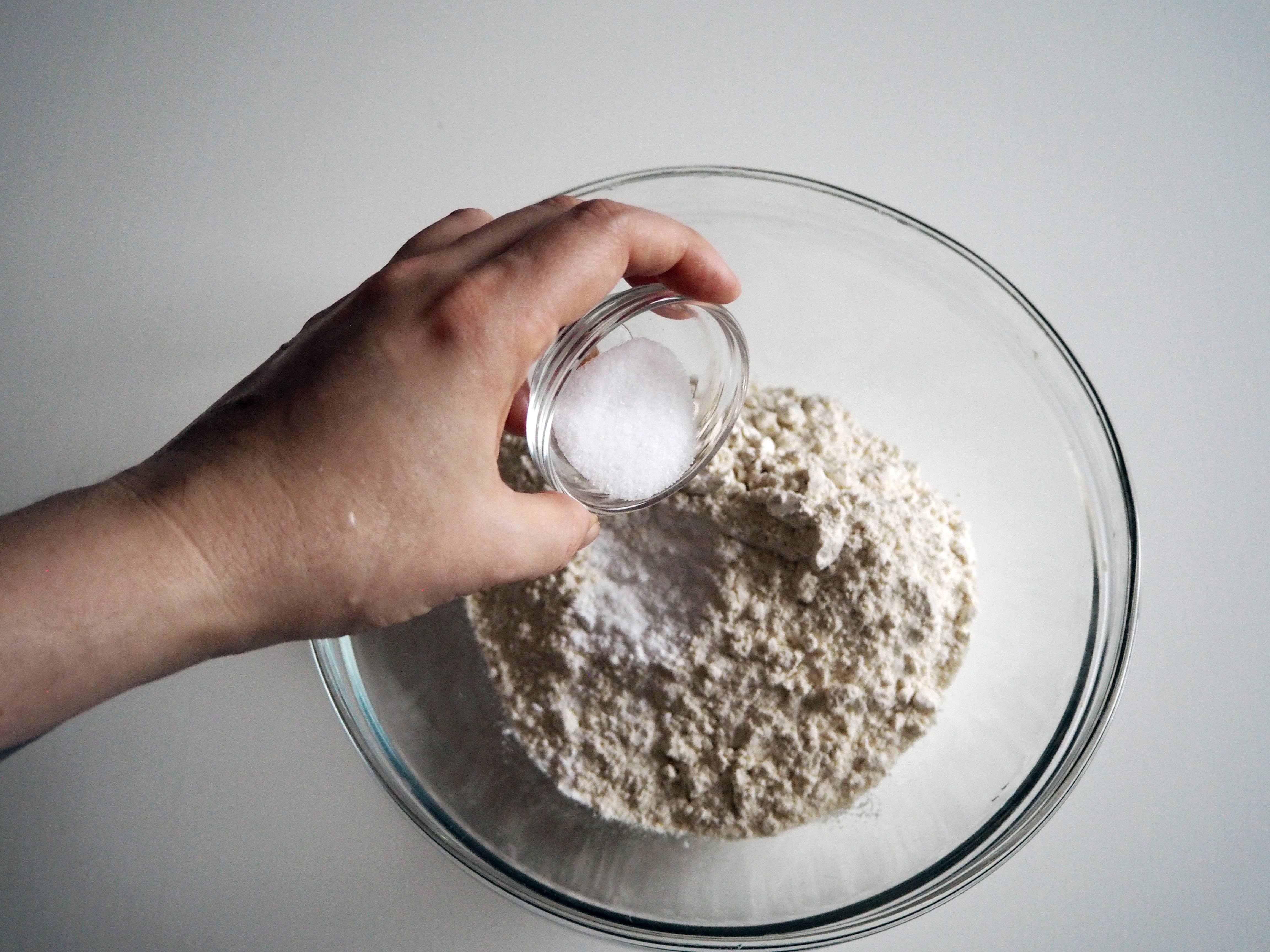 2. In a medium bowl, put flour, baking powder and salt and whisk / mix.