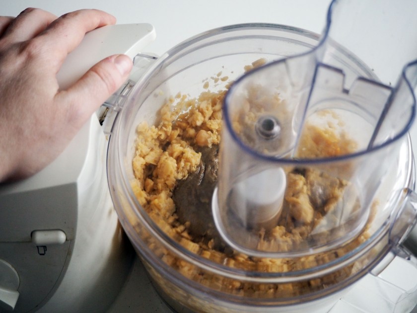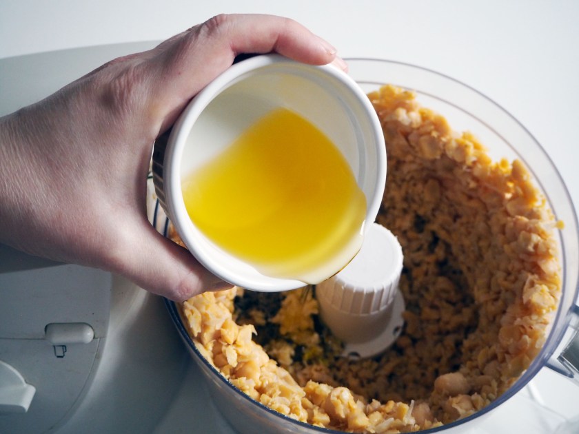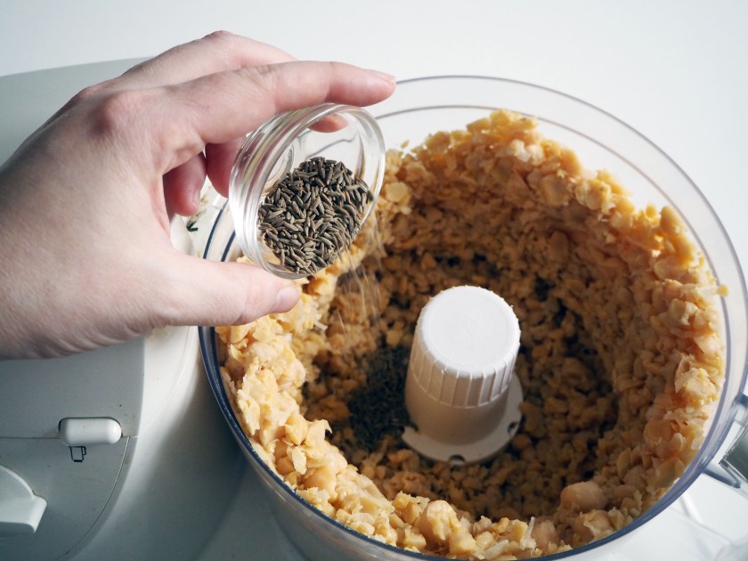 3. Add cumin seeds, crushed garlic, olive oil and lemon juice and process more.