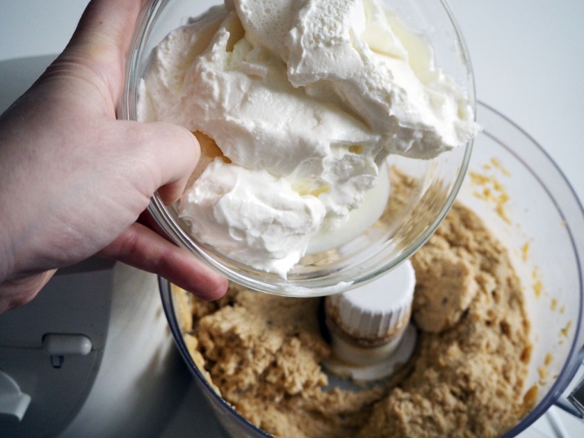 5. Add yogurt (or soy/coconut yogurt if you’re doing vegan version), salt and pepper and process until it becomes a smooth, creamy mixture.