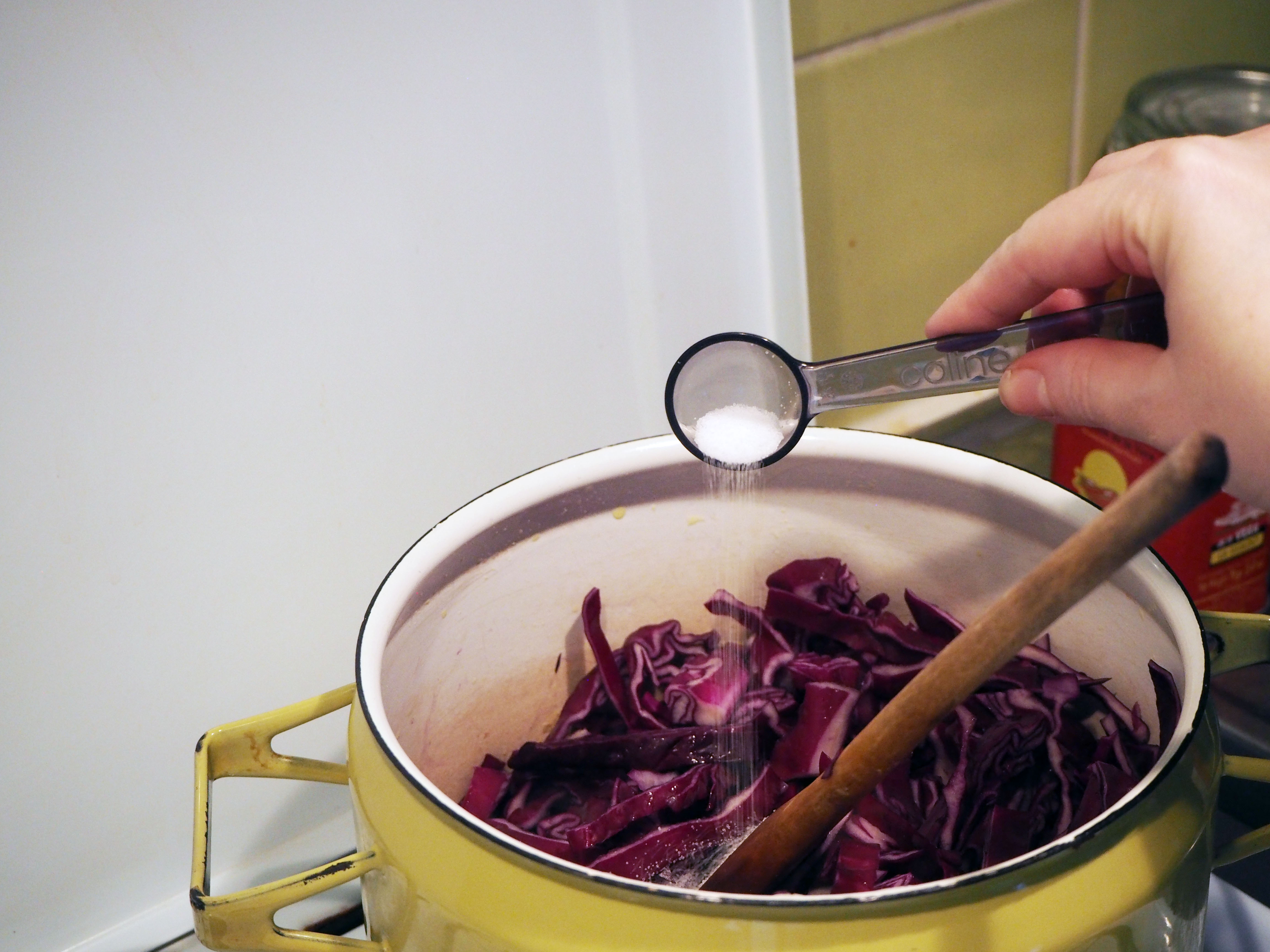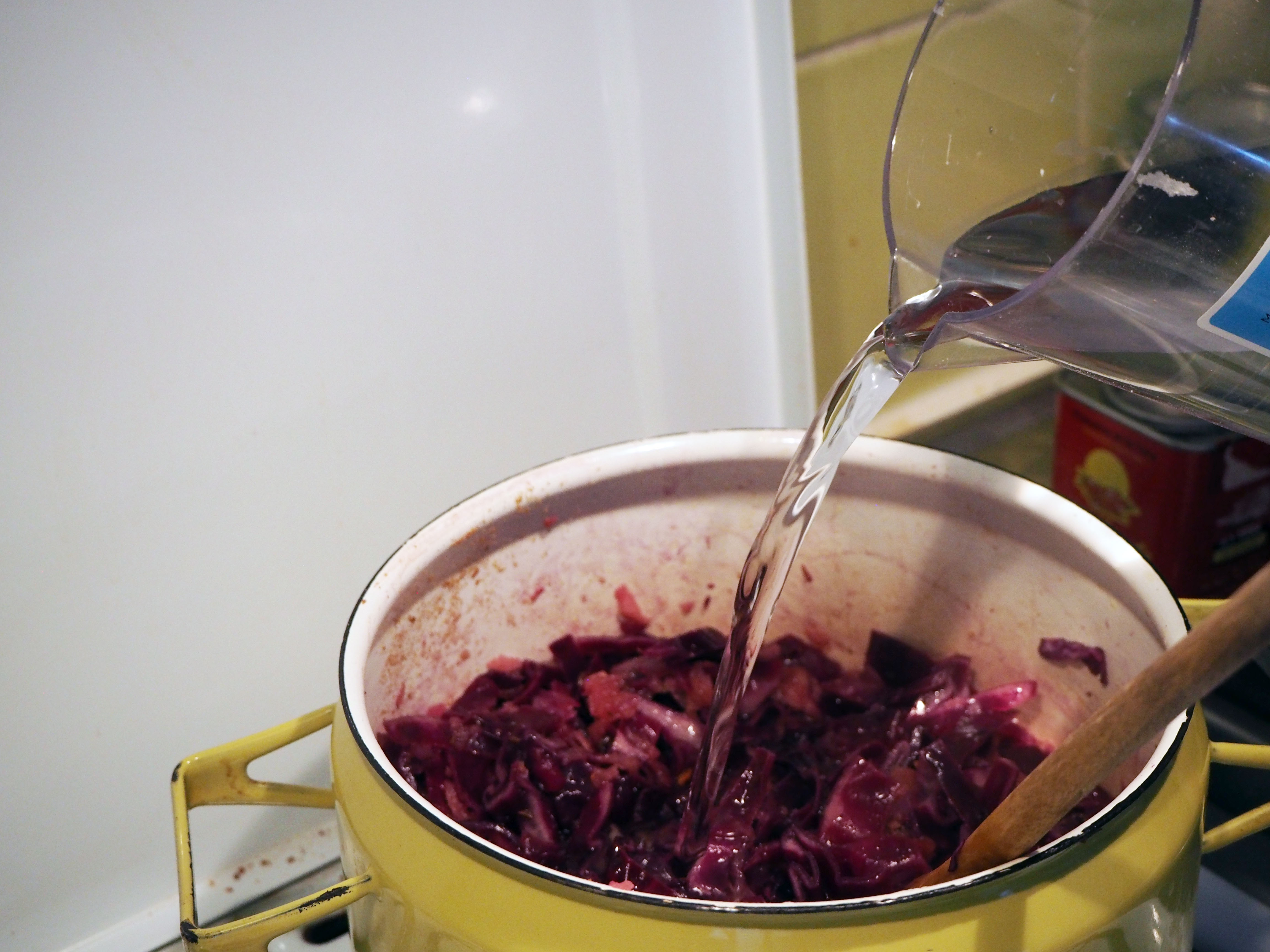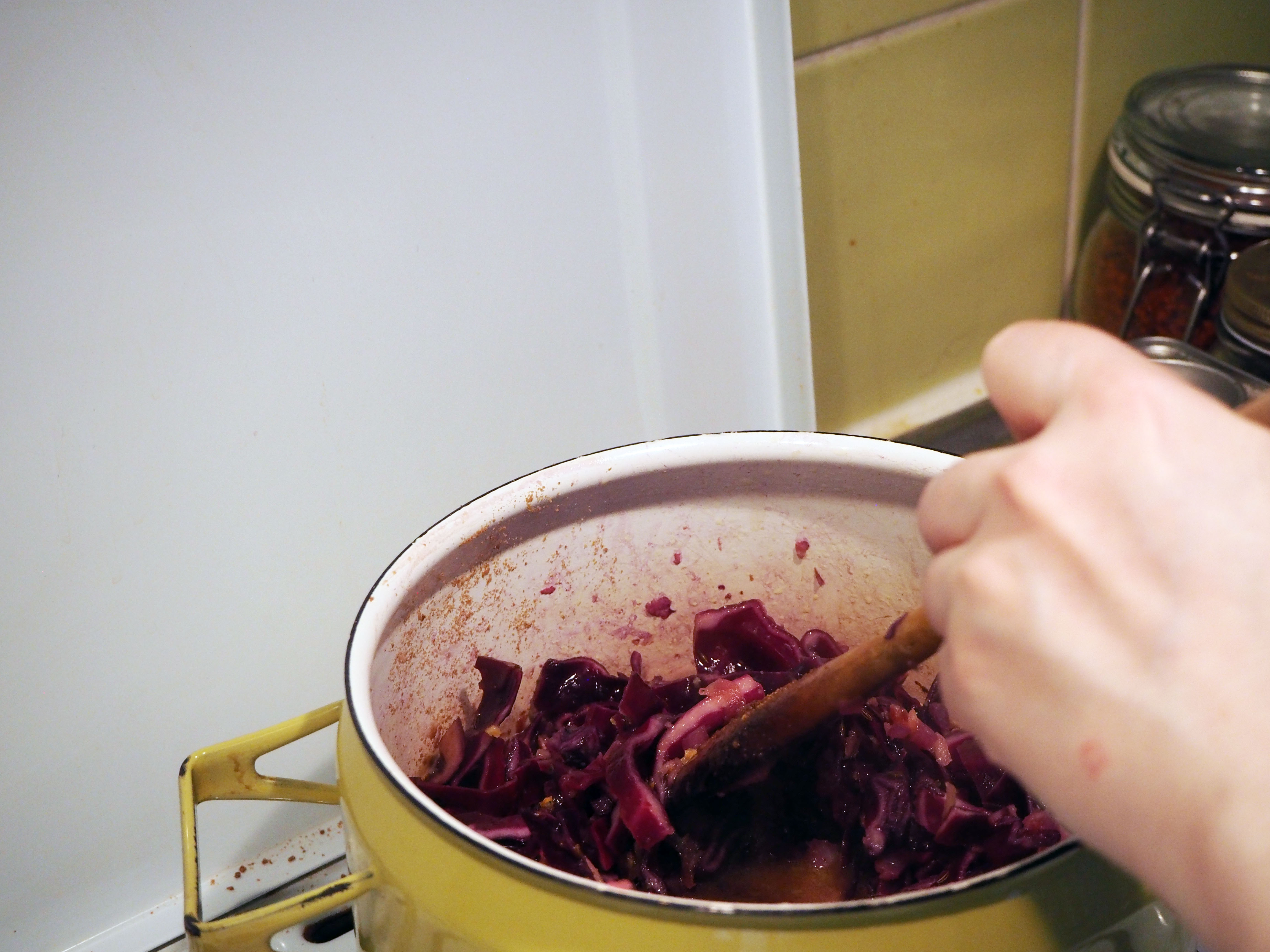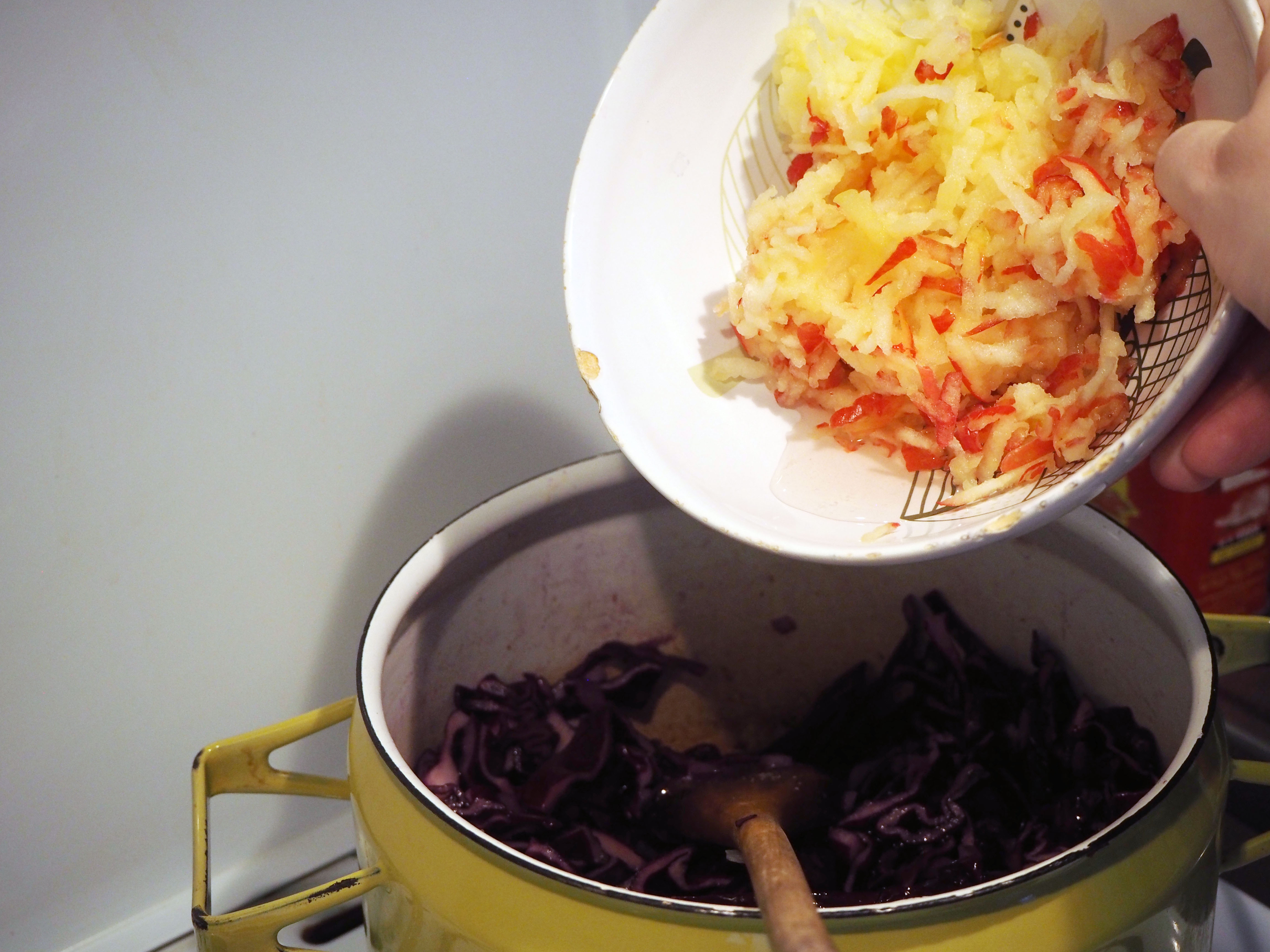 450 gr. red cabbage, first quartered then sliced thinly (or grated)