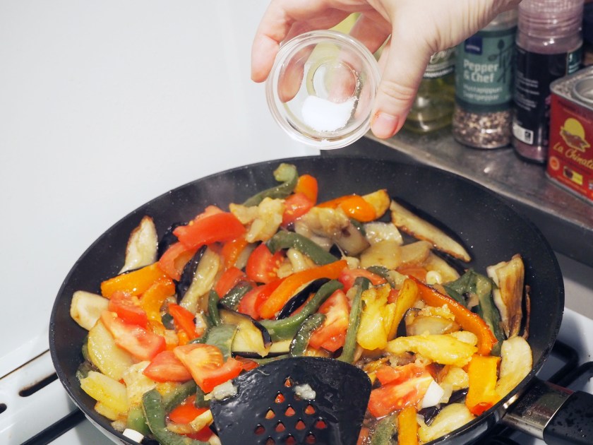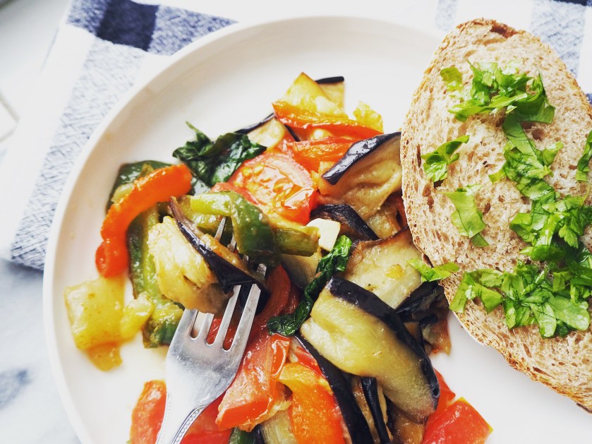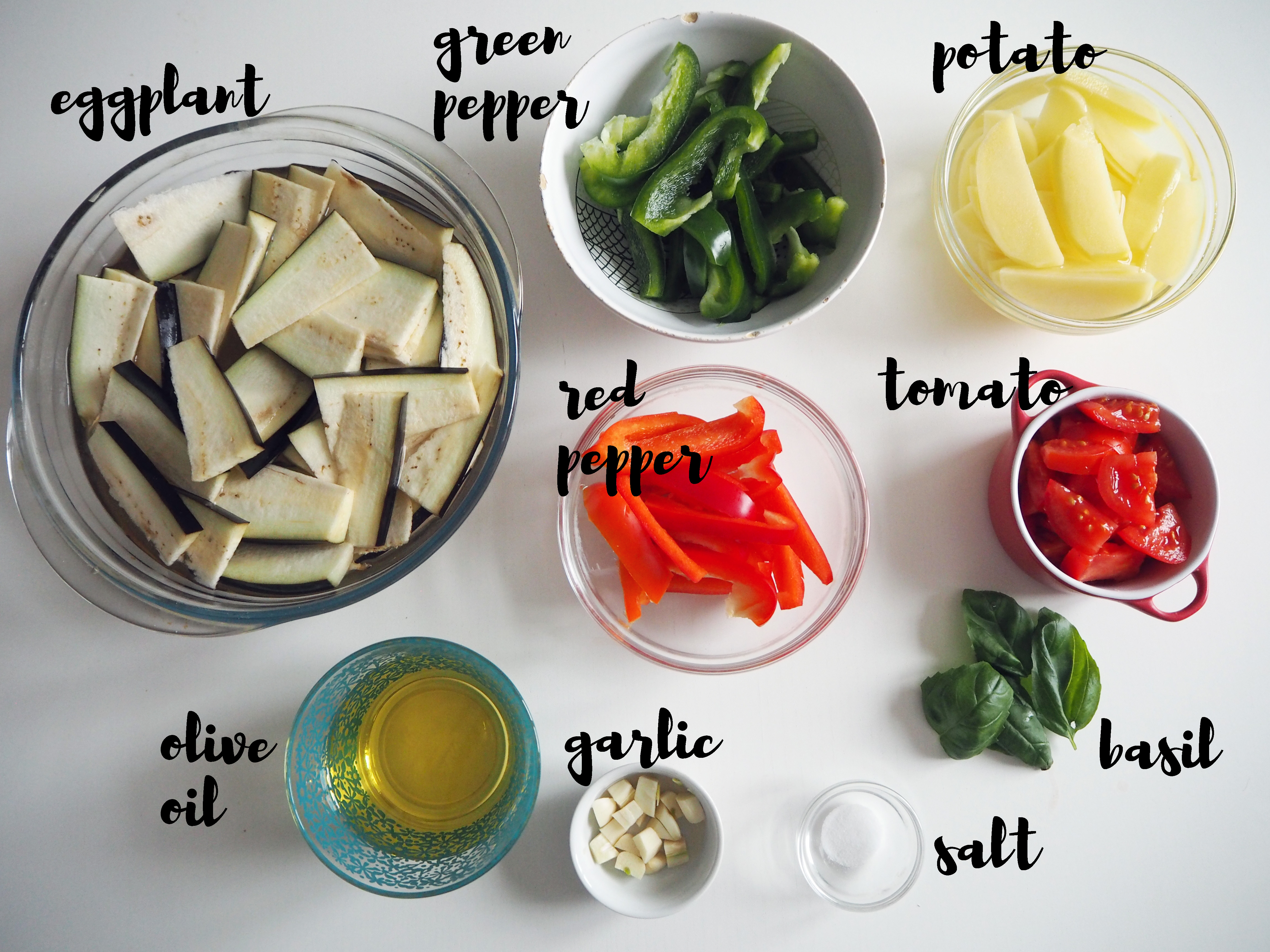 For this recipe I used eggplant, potato and peppers, however you can certainly make your own little twists, like adding another vegetable in the mixture or replacing one with another. The options are many and it just depends on your taste and your favourite veggie combo.