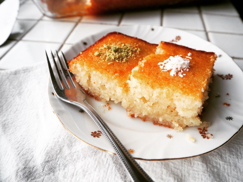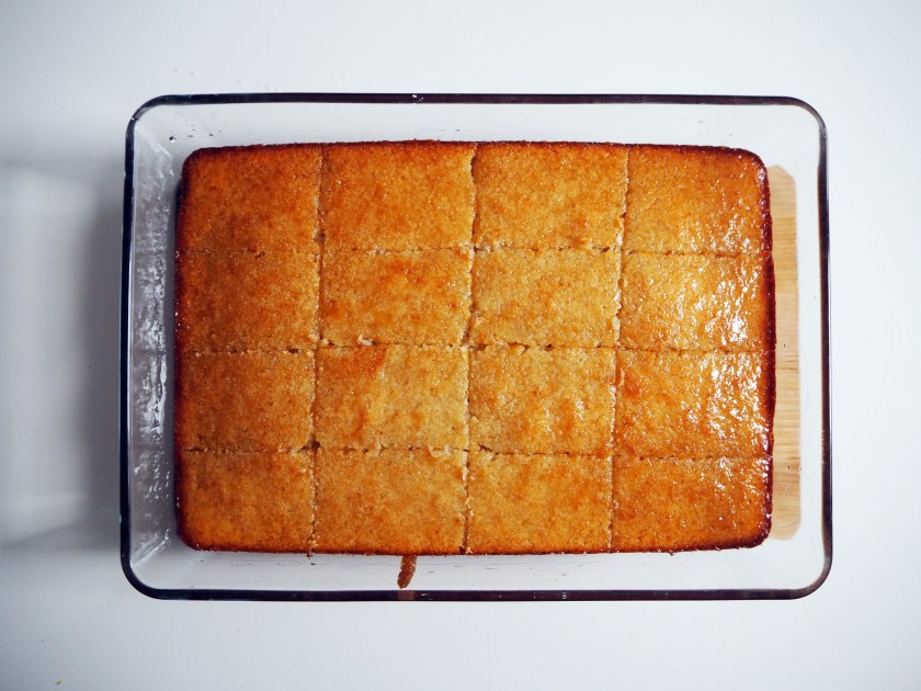 I have been planning to make this dessert for a looo…ng time. Every time I decided to work on it, something happened and I had to postpone. Finally last weekend I had the time and energy to work on it and it turned out to be an amazing sweet experience. And then I also realised that this dessert is originally from Egypt with the name “Basbousa”!