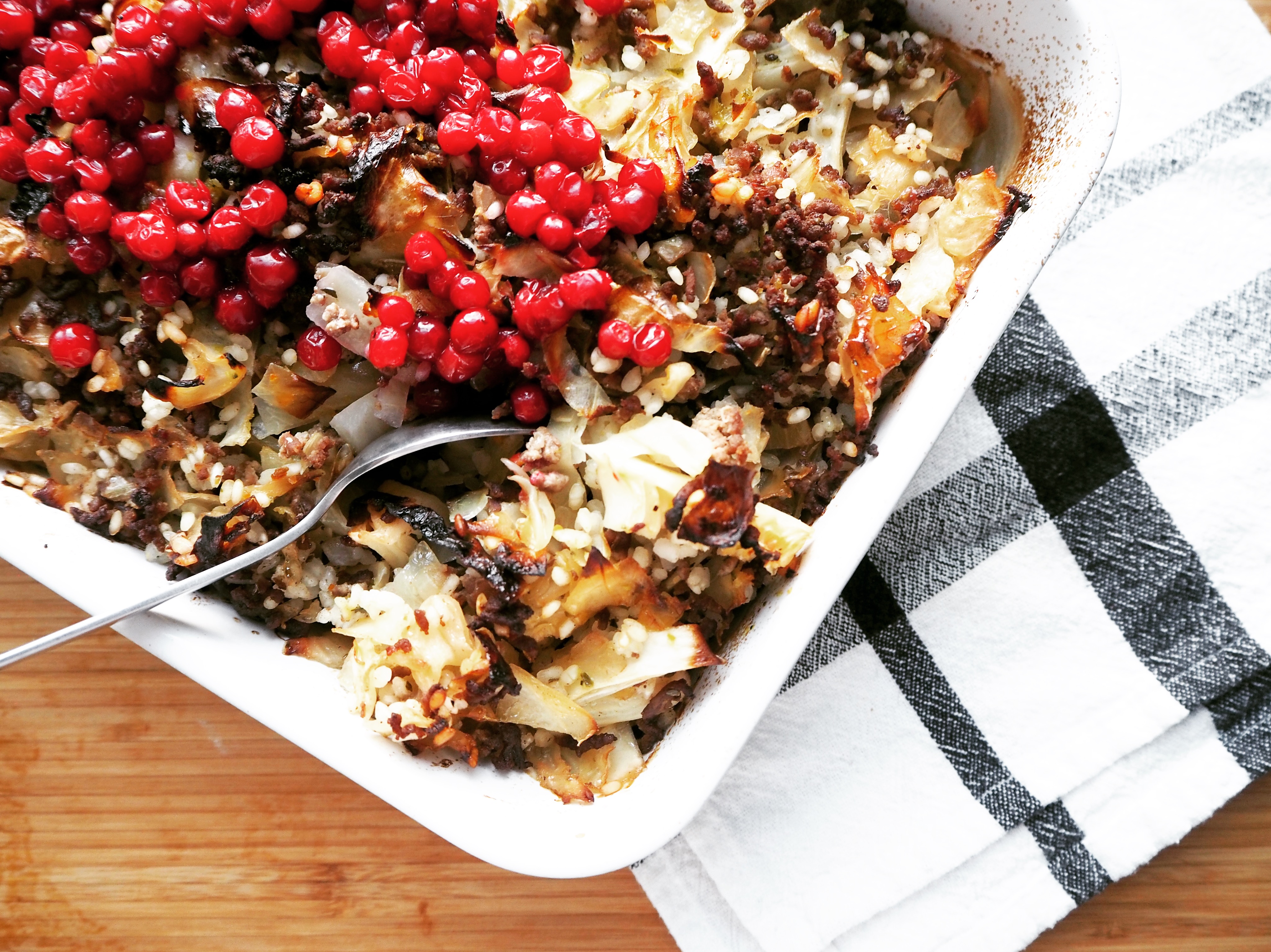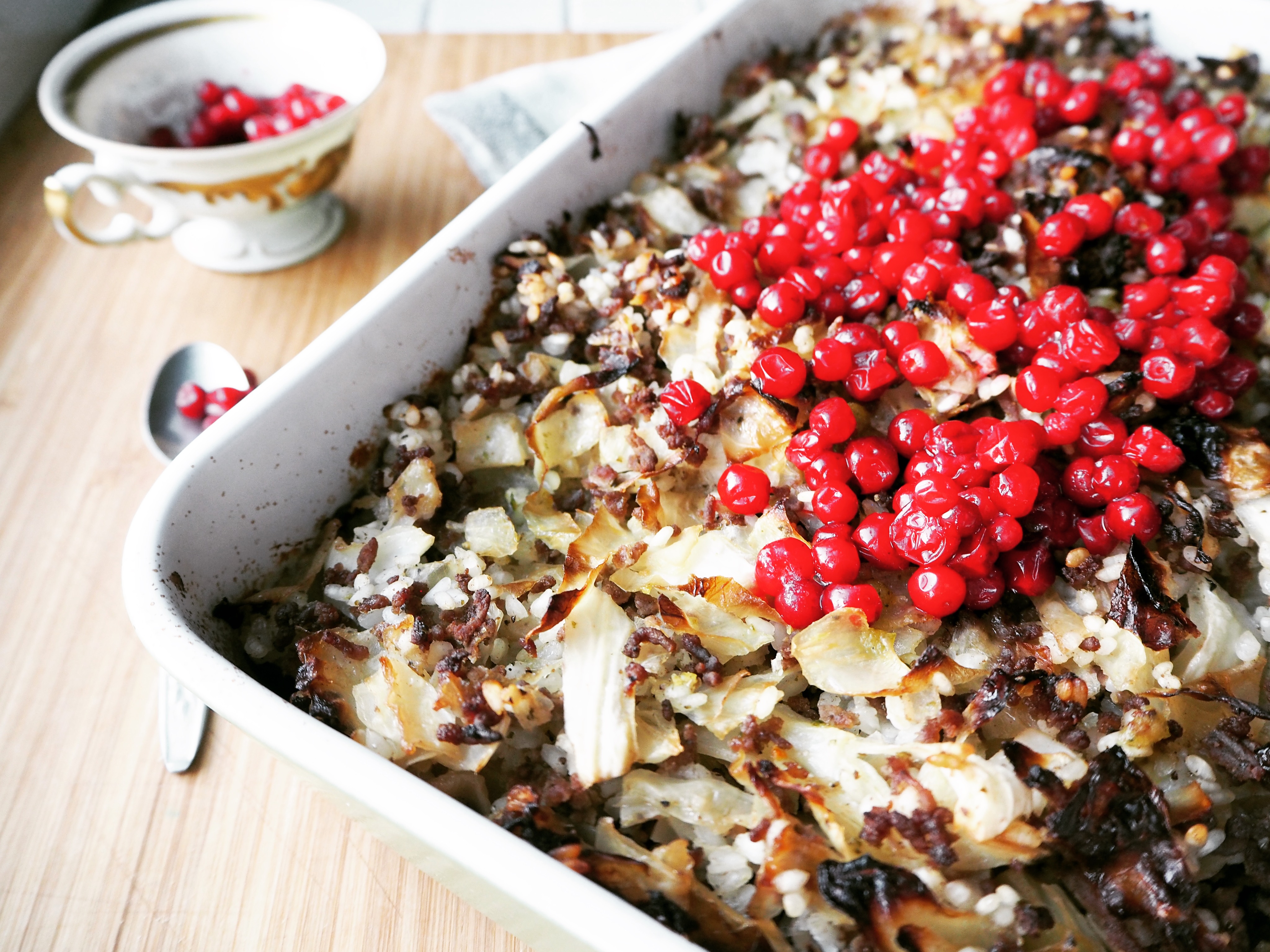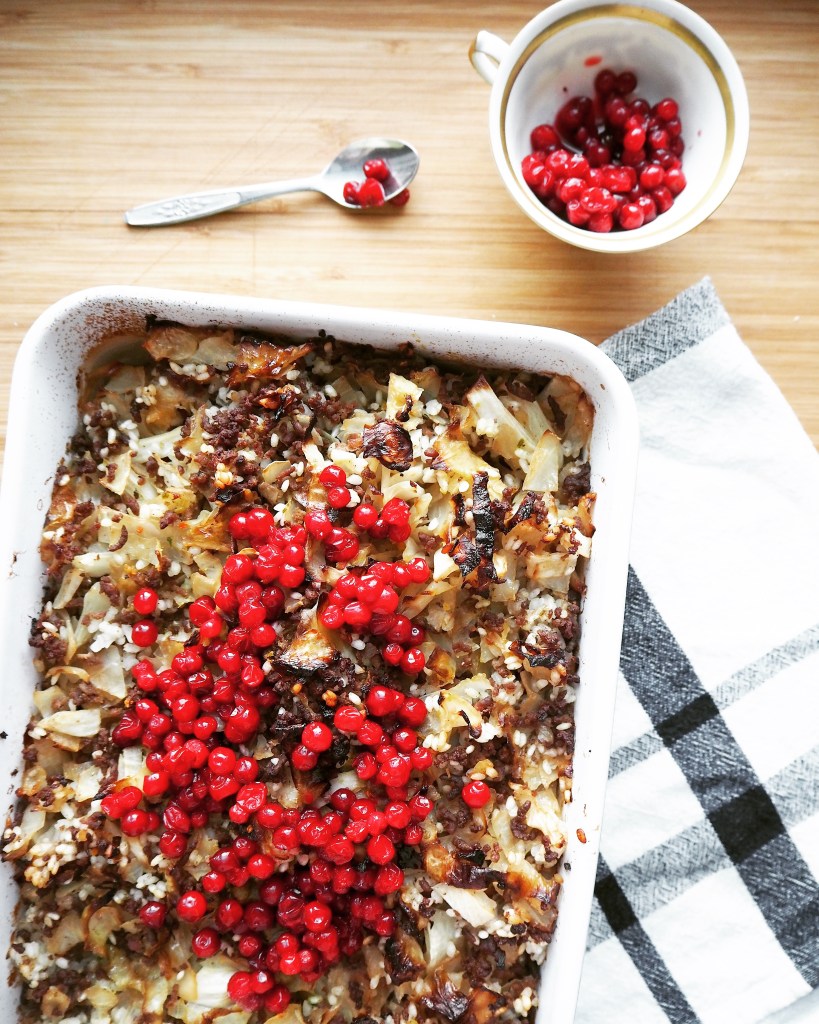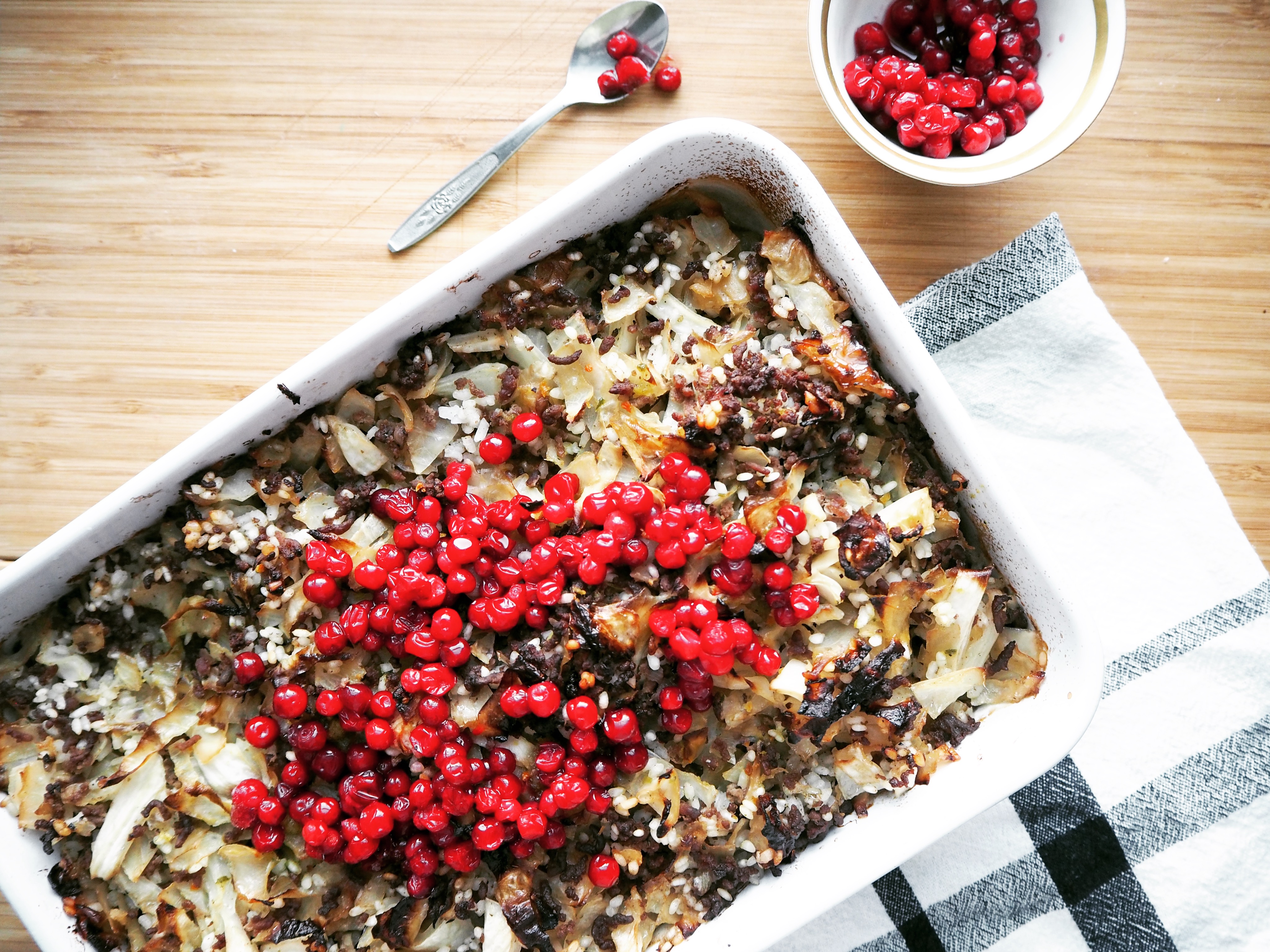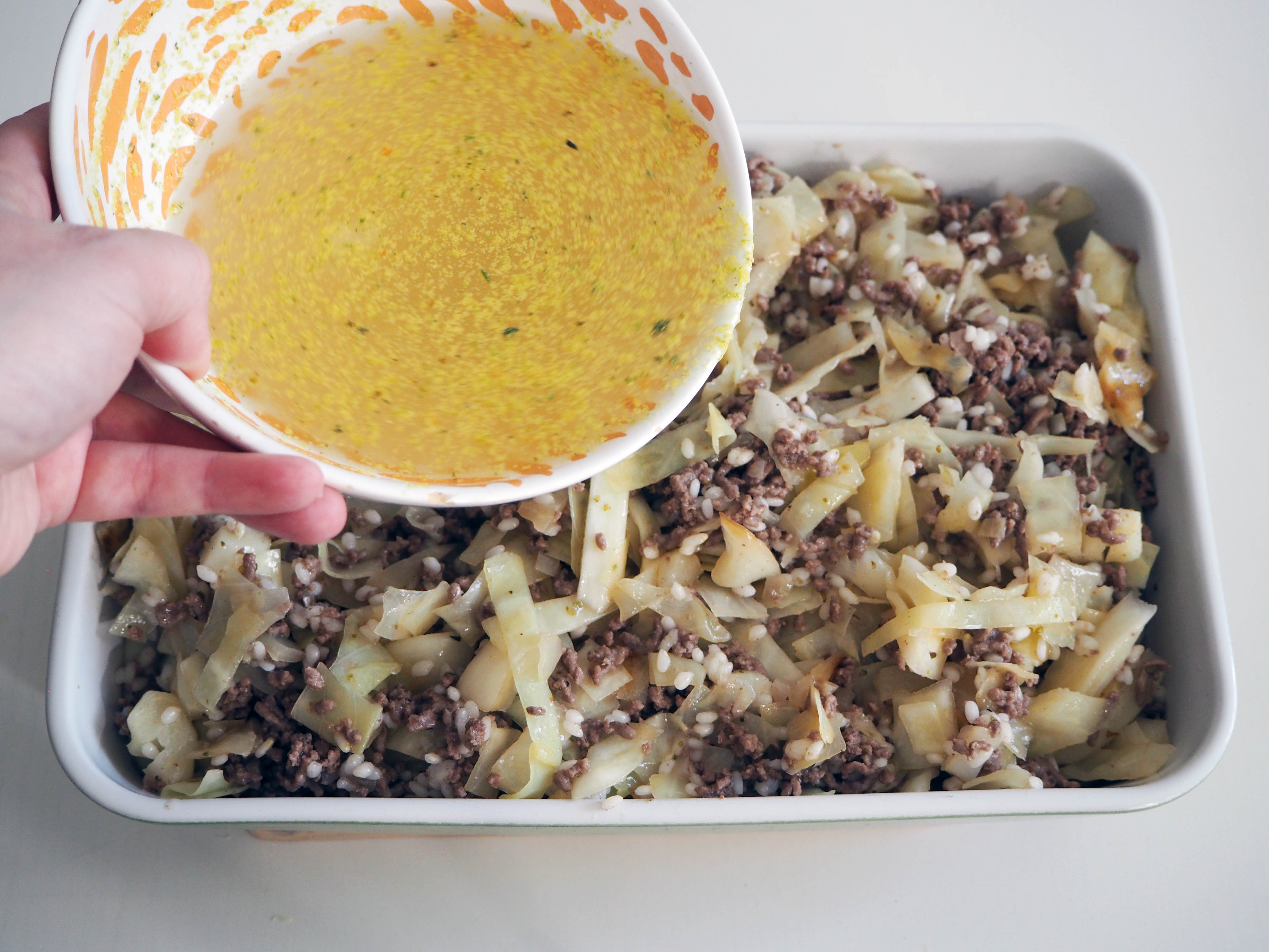 In Finnish cuisine, there is a series of laatikkos, aka casserole dishes: porkkana / carrot, peruna / potato, lanttu / rutabaga… and this one right here, cabbage casserole, with ground meat and rice. I knew about this grand “laatikko family” but I never ate any, until I made the first one today.