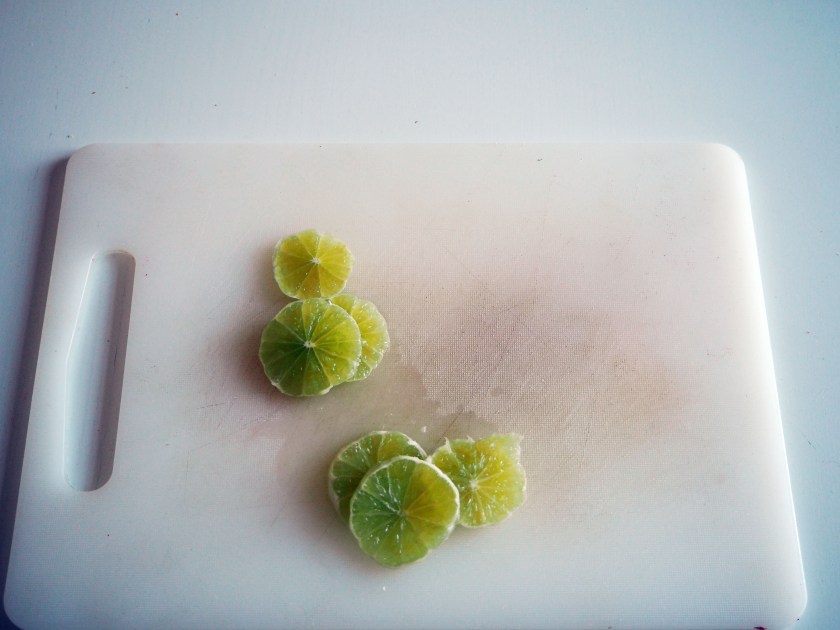 1. Peel and slice lime as seen in the photo (or, if you have other peeling method for lime, just do that).