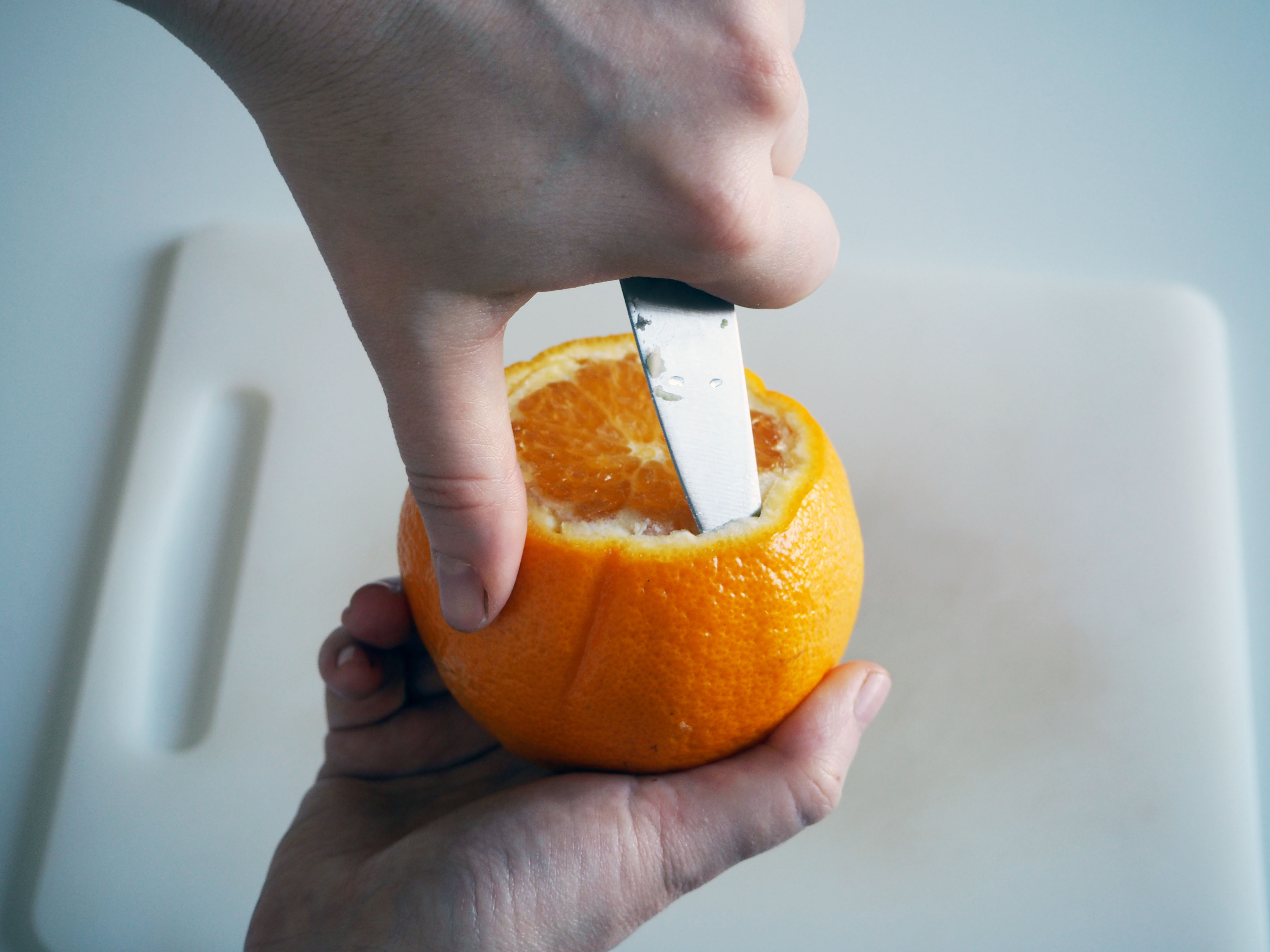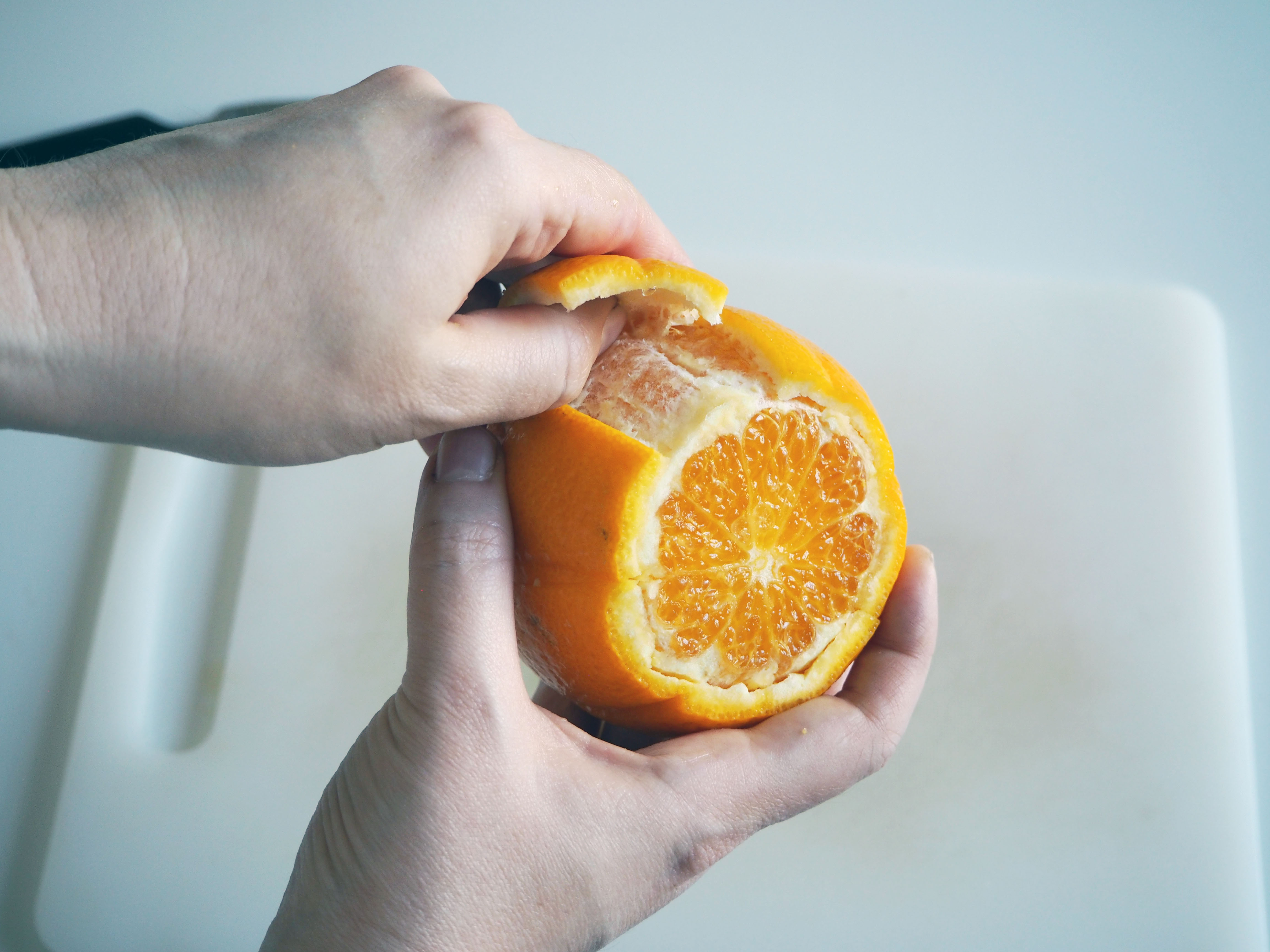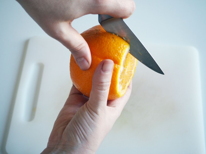 2. Peel and slice orange as seen in the photo (or, again, if you have other peeling method, do that).