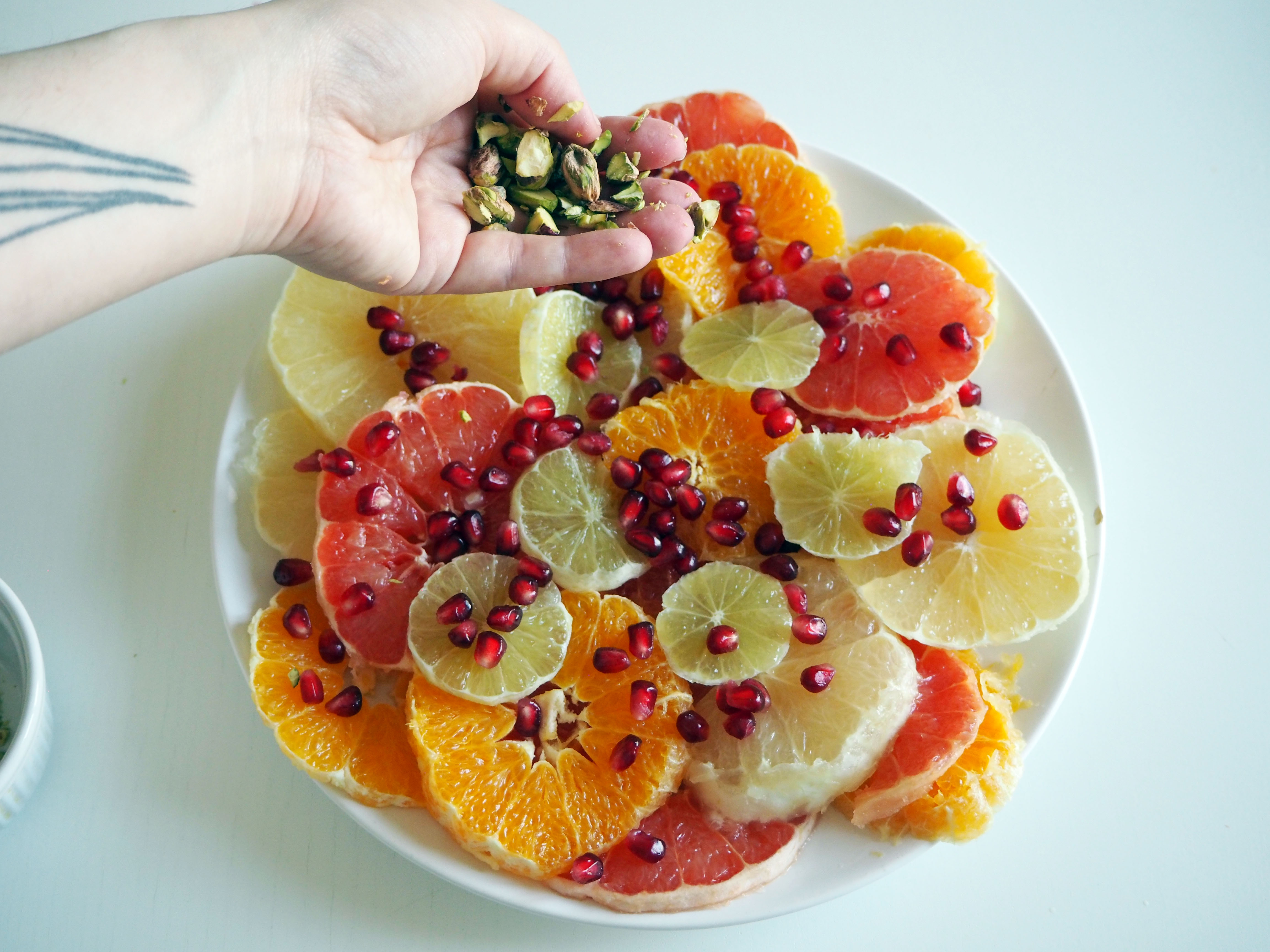 But this is also not necessarily a salad for one season: you can use the citrus family of whichever season you are in, adding tangerines, satsumas or other citrus fruits and apply the same brightness to that season. You can even brighten up dark and cold winter days!