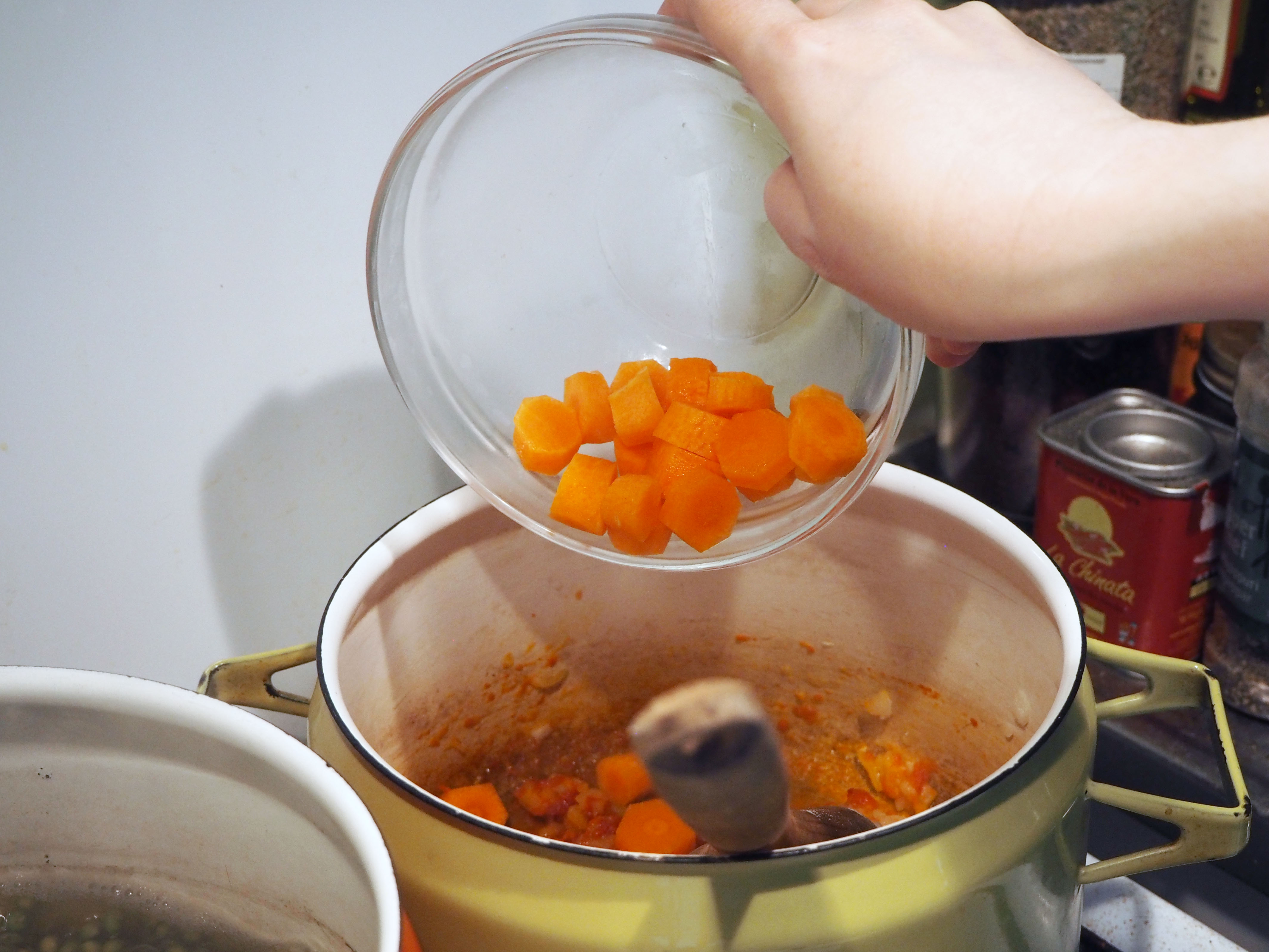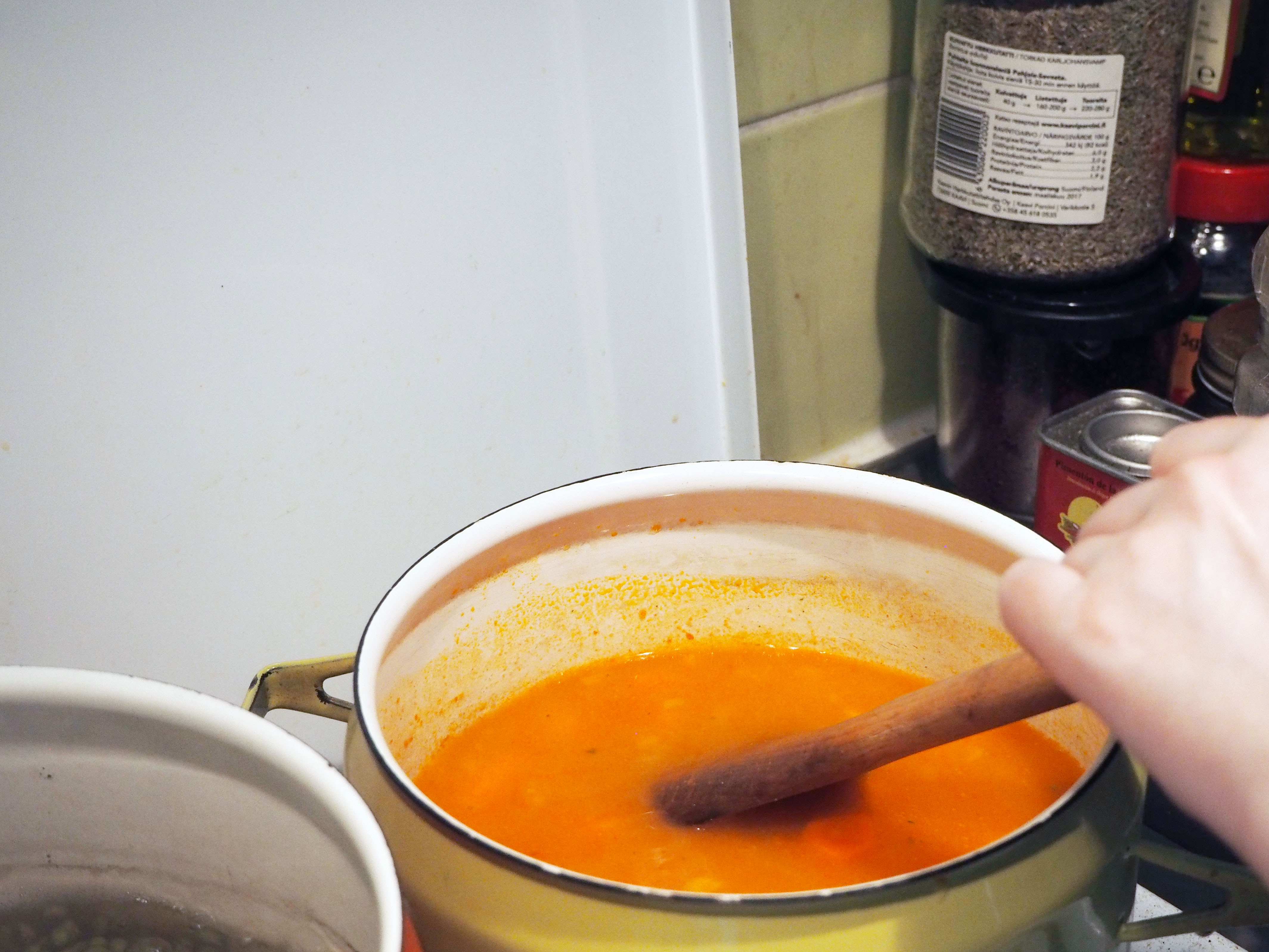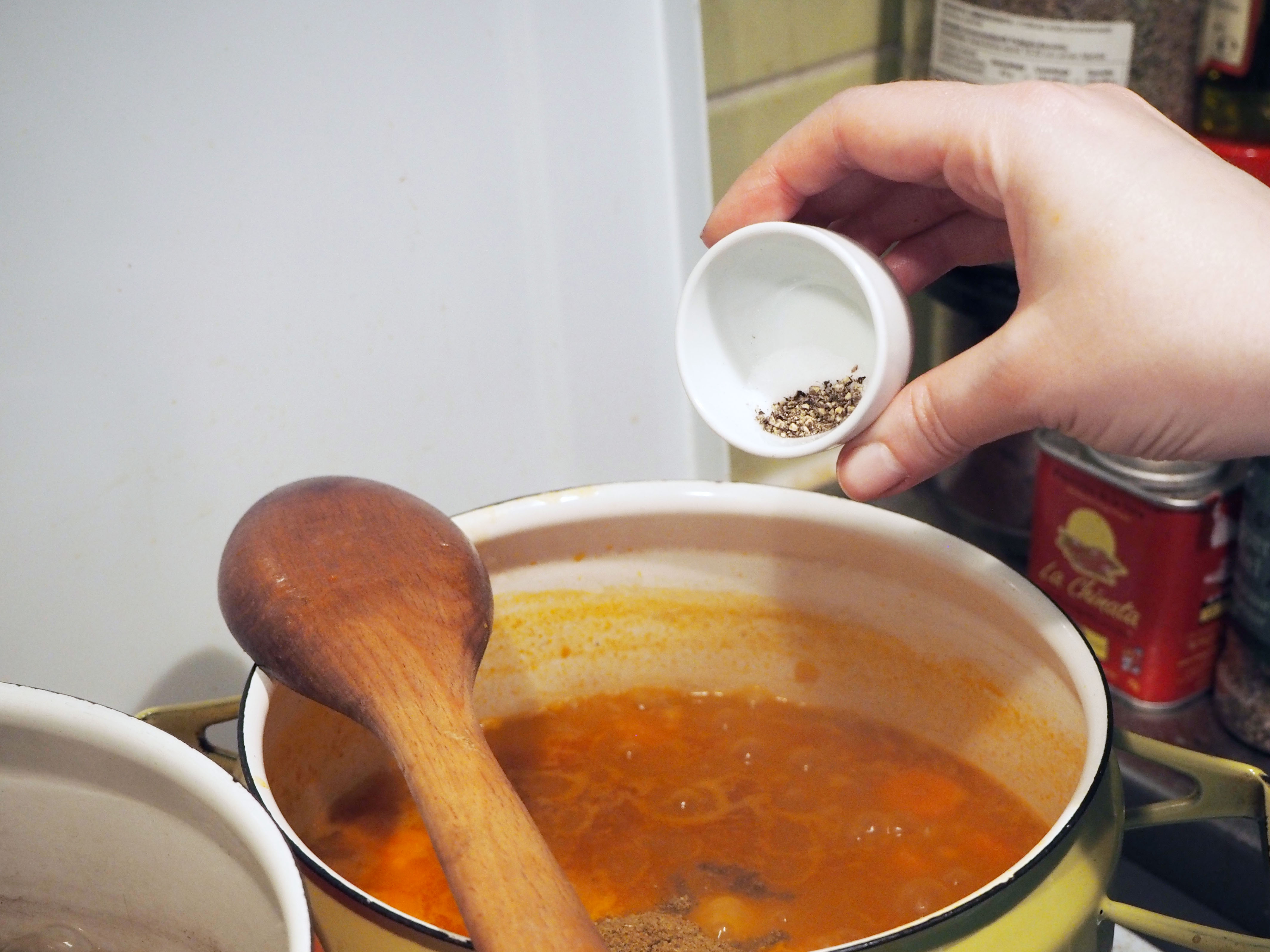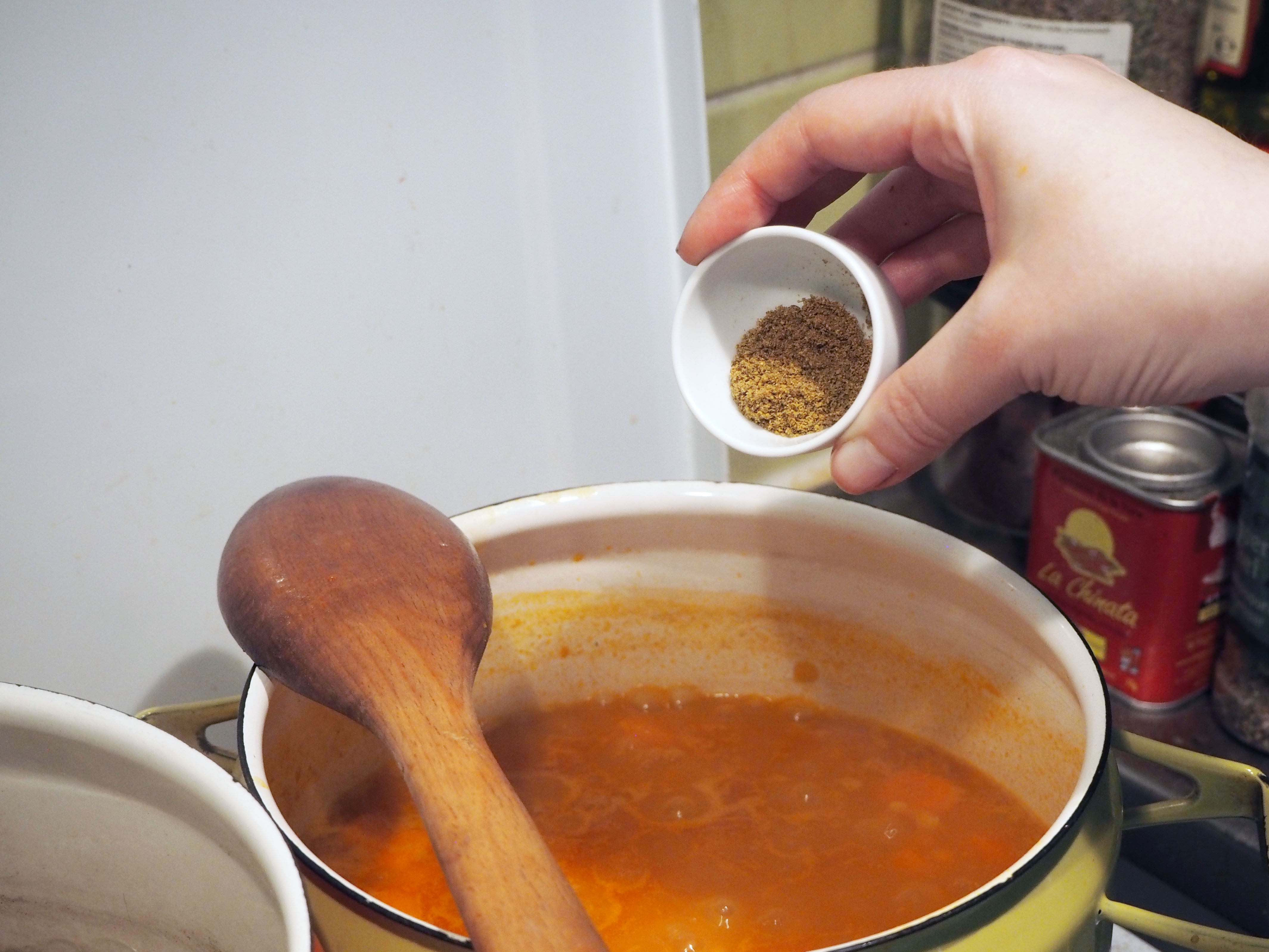 In my version, I keep it rather simple with just the addition of carrots as an extra ingredient. I use a little bit tomato paste too, but my favourite little ingredient is cumin. I absolutely love this spice and it is a great addition to this soup. I do recommend you NOT to skip that one!