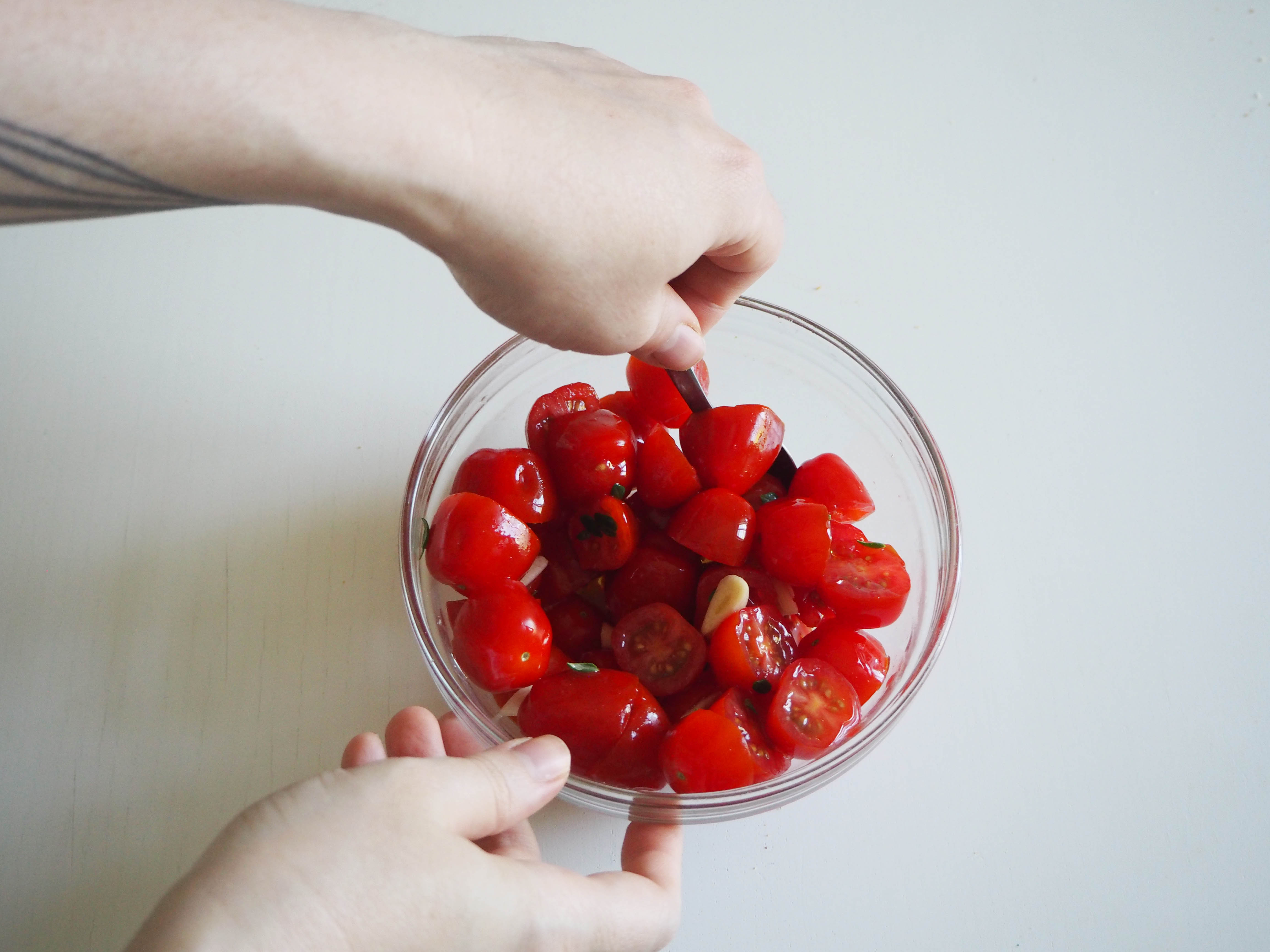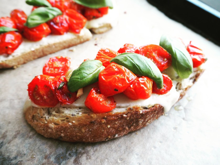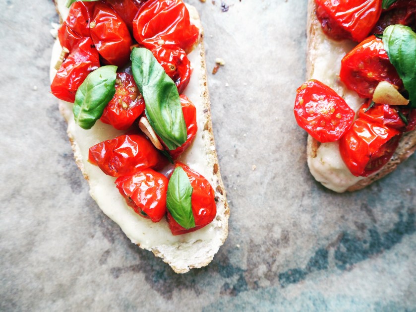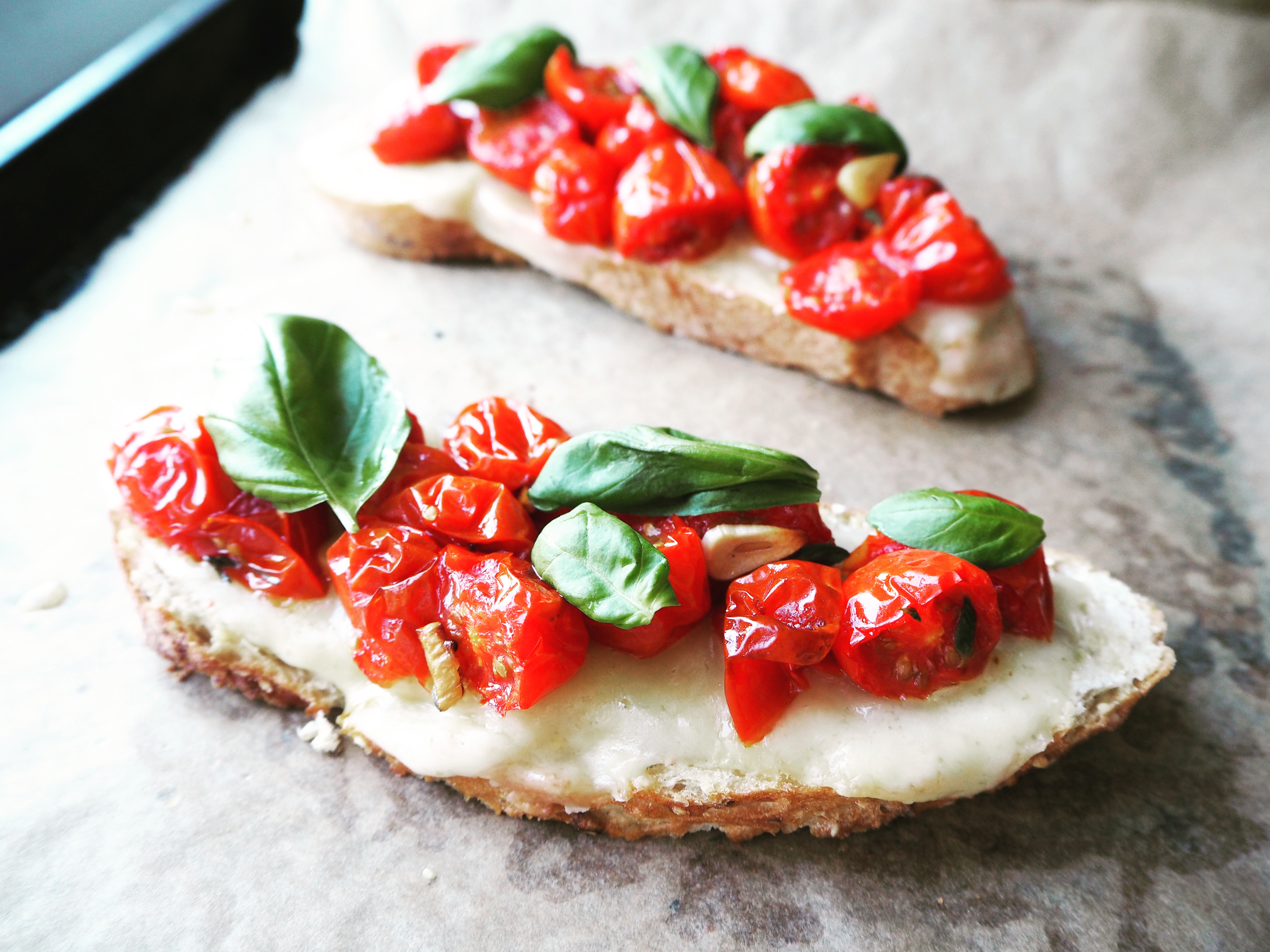 Since I love tomatoes more than anything in the world, the first tartine recipe I wanted to post was this one. I love tomatoes in any form but together with garlic, fresh herbs and of course olive oil, roasting takes tomatoes in a whole different level!