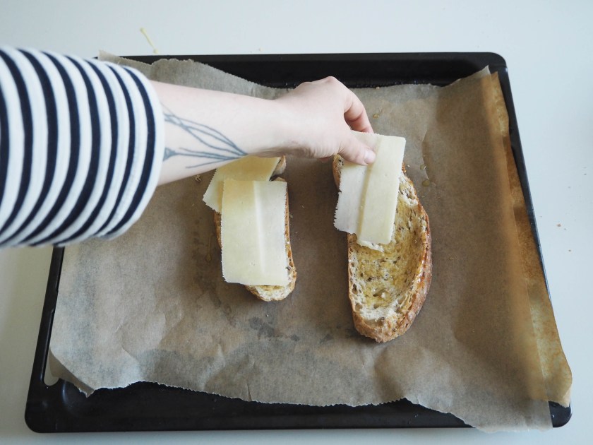 5-6 thin slices of cantal cheese, enough to cover bread slices generously