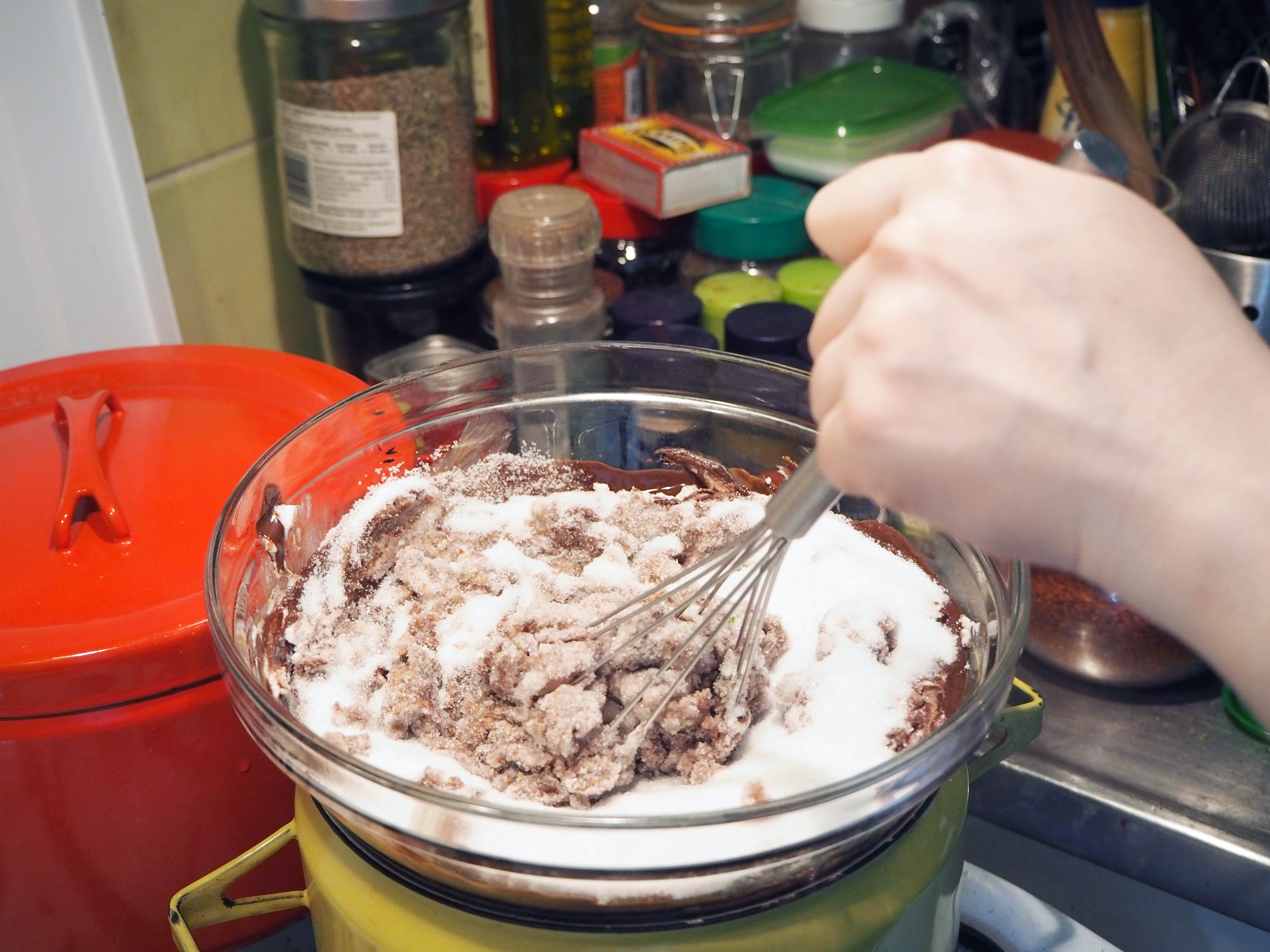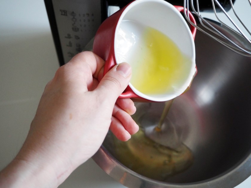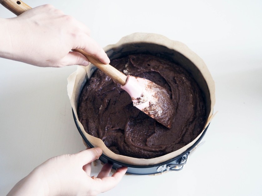 1. Preheat the oven to 180C. Grease a cake pan that is 24cm in diameter and cover the base with baking paper (I also cover the sides).