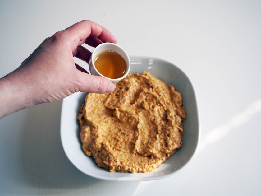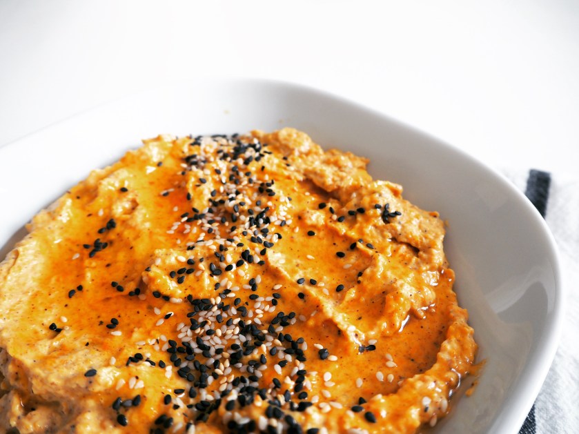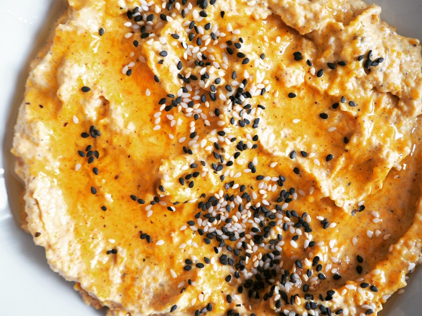 About a month ago I bought a 5 kg bucket of tahini. The amount of hummus or any other Mediterranean / Middle Eastern dip I made for my caterings that contains tahini exceeded all sorts of expectations and in the end when I saw that huge bucket, I just took it. And I already used more than half of it! And so here is one more dip / spread with tahini for you today. For this one, tahini meets butternut squash.