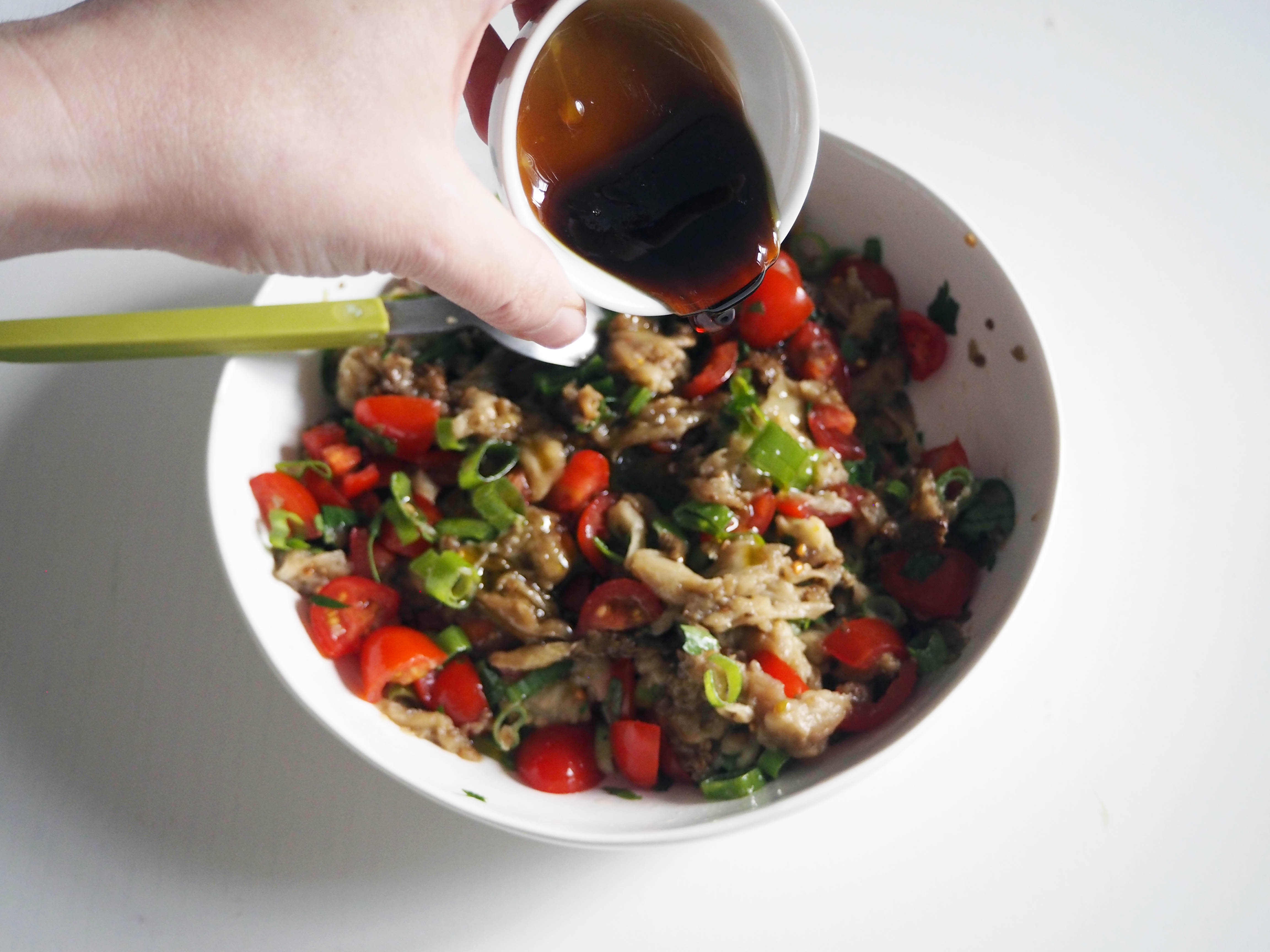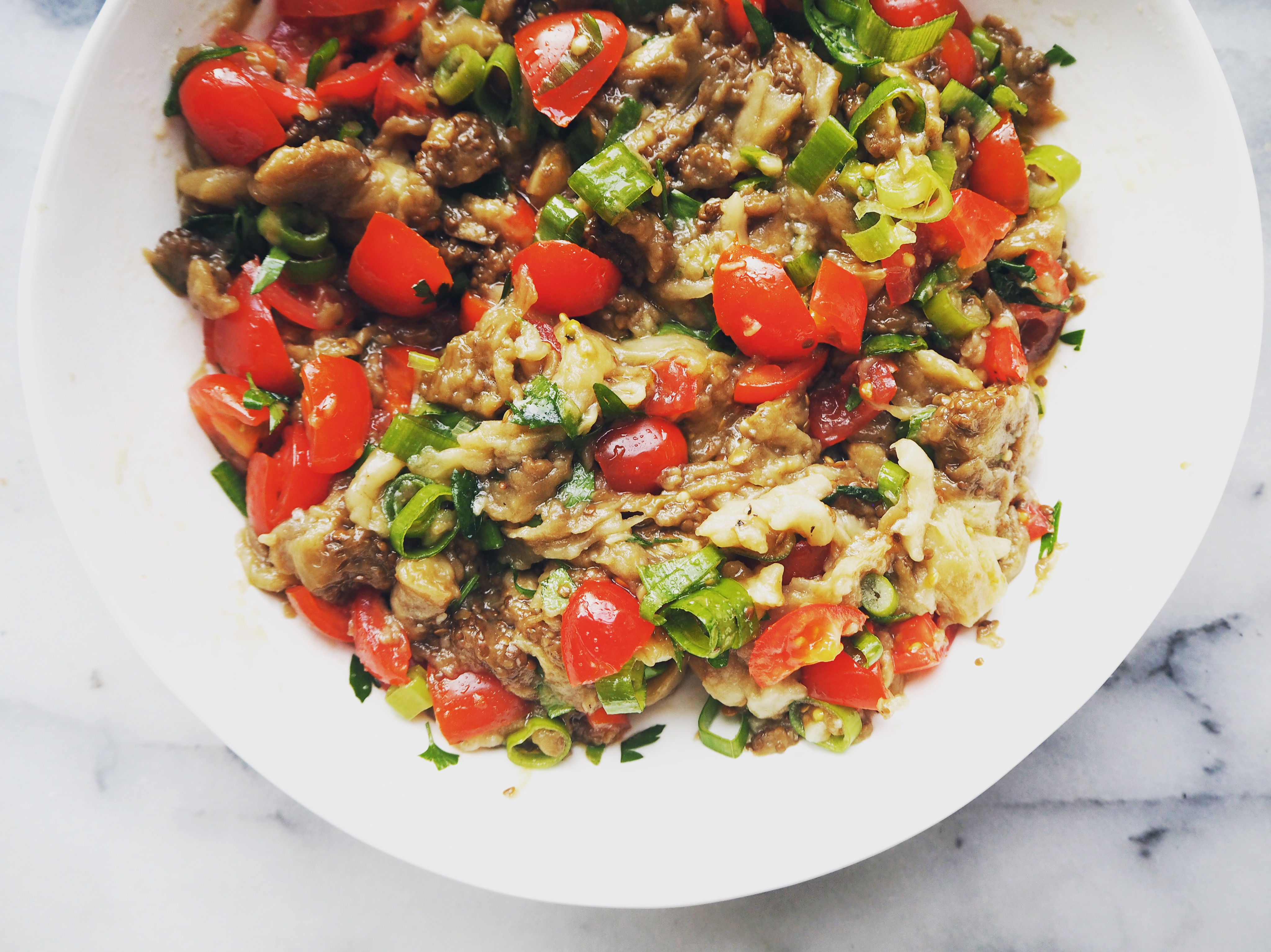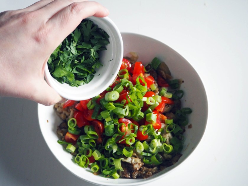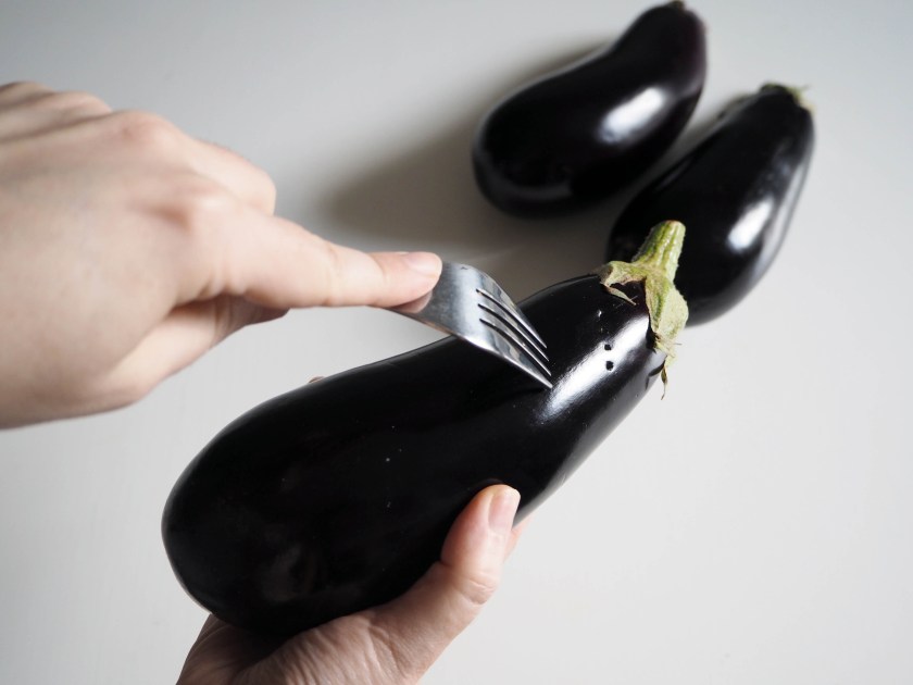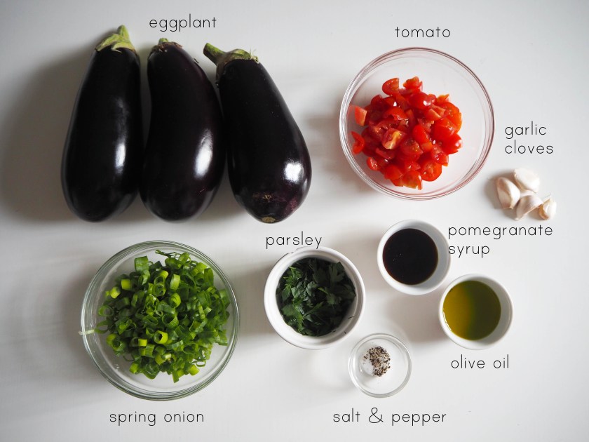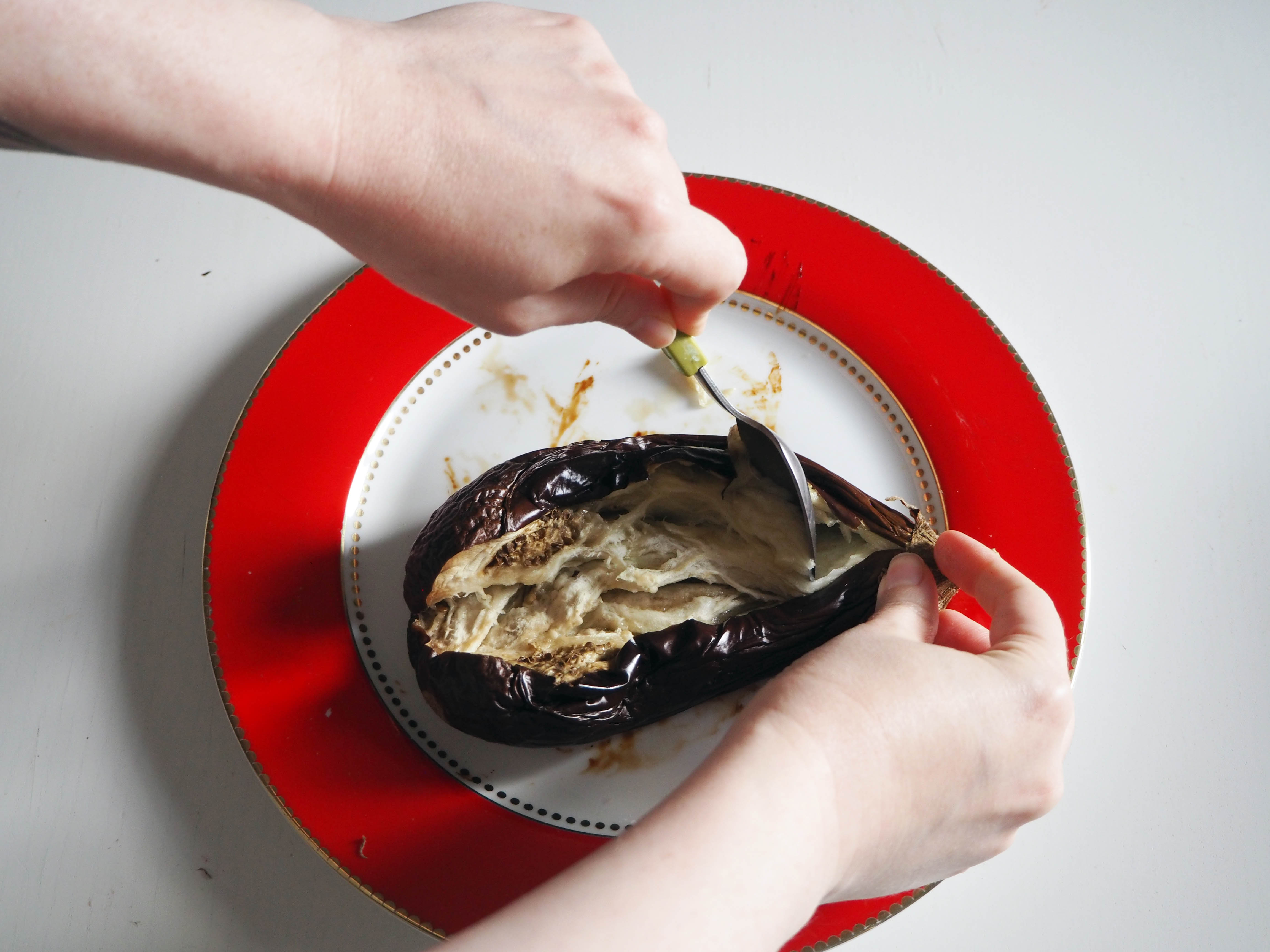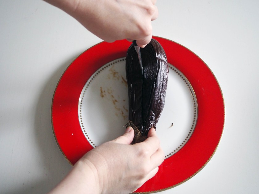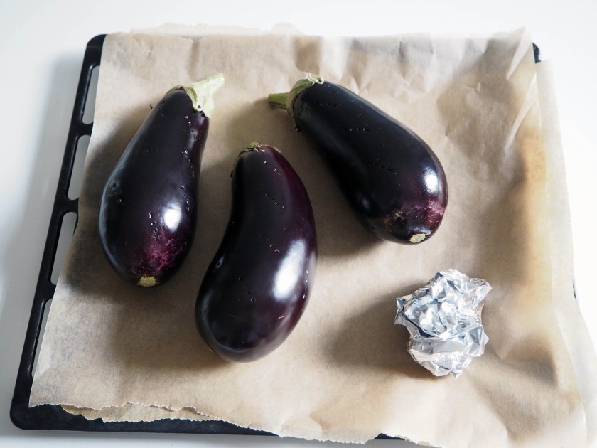Roasting whole eggplant is quite easy, but a long process. It took me 1.5 hours in 200C oven to get the whole thing soft and juicy. So be careful with timing when you want to try this recipe and plan accordingly.